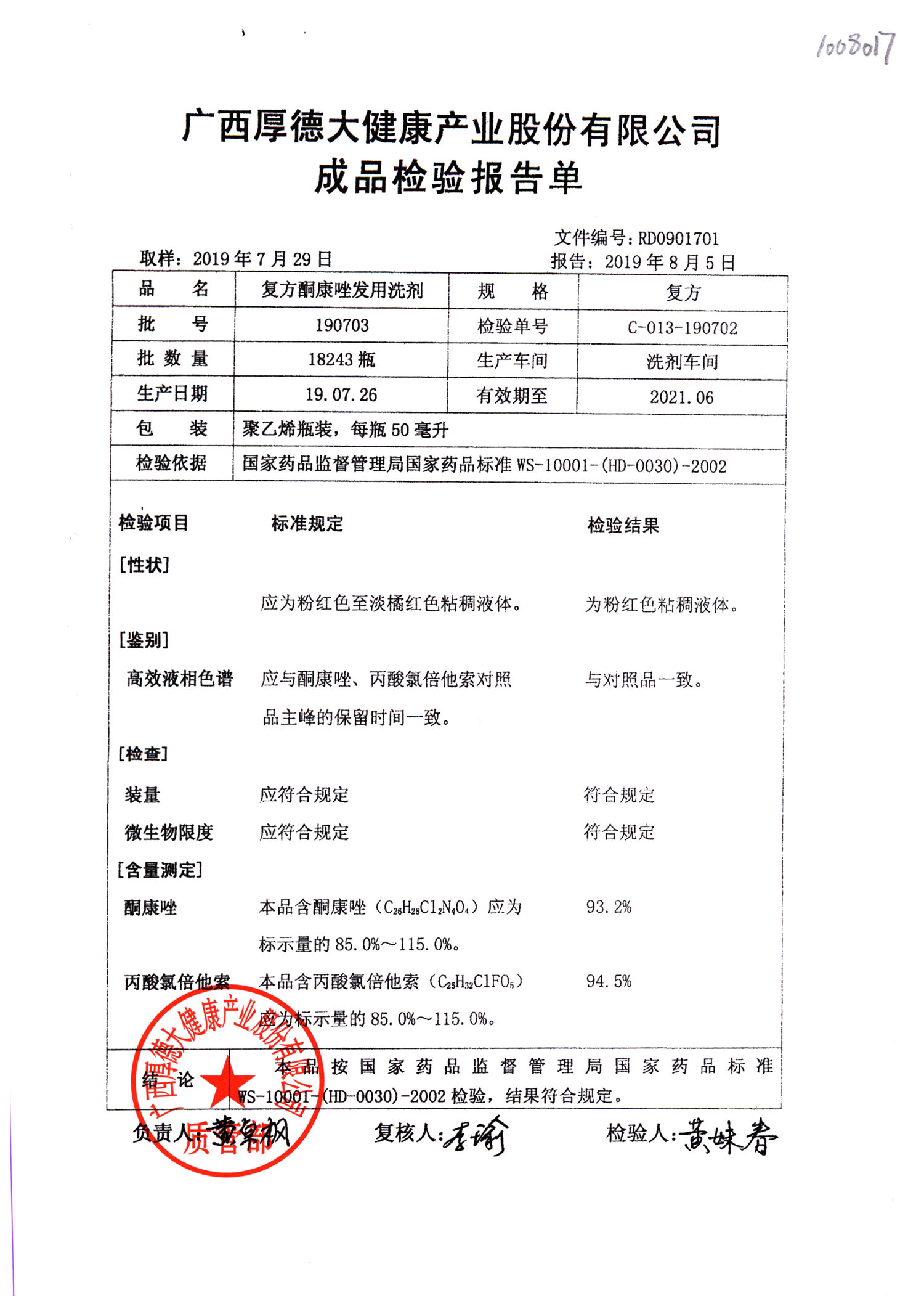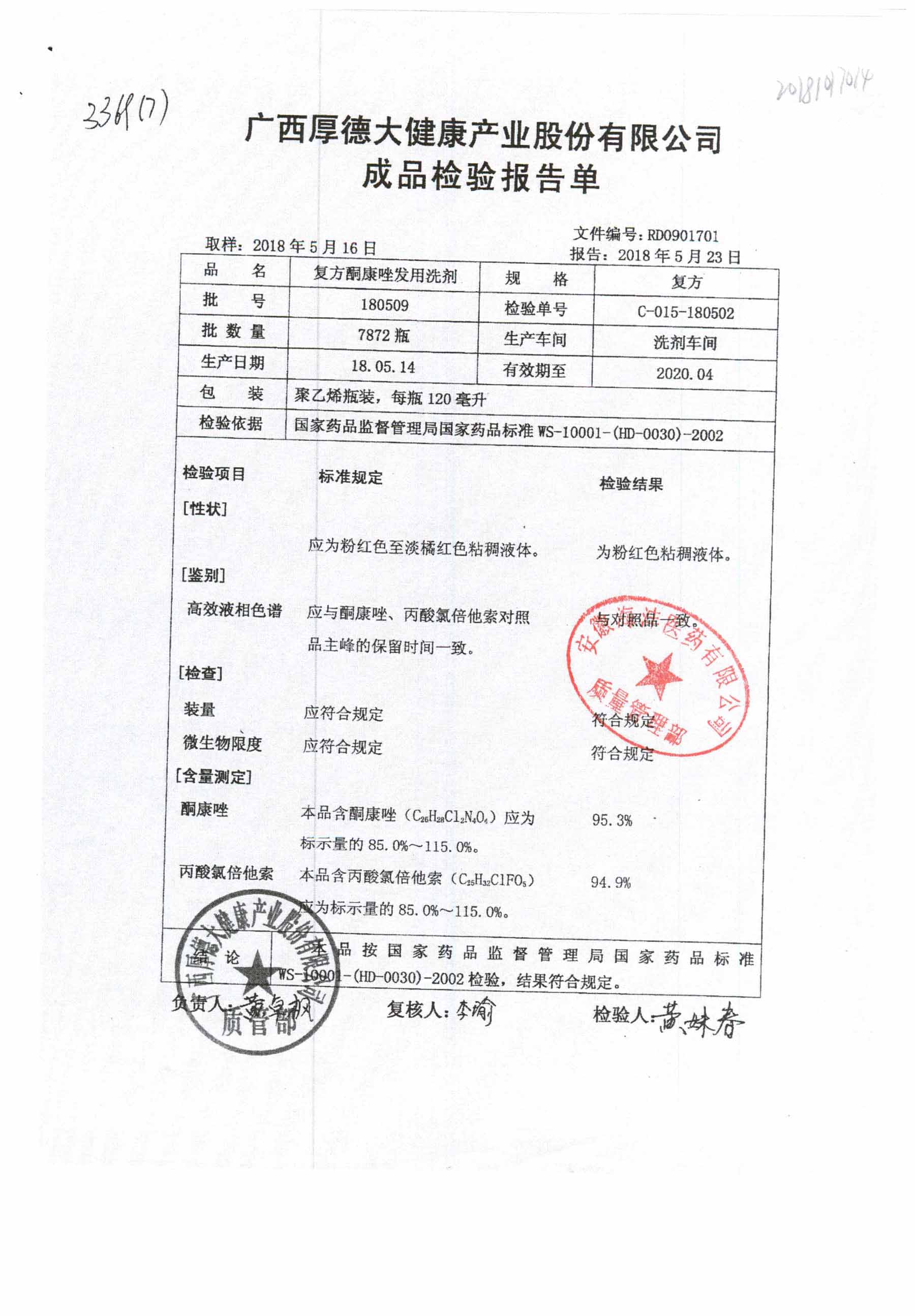 | 復(fù)方酮康唑發(fā)用洗劑 | 復(fù)方 | 180710 | 查看詳情 |