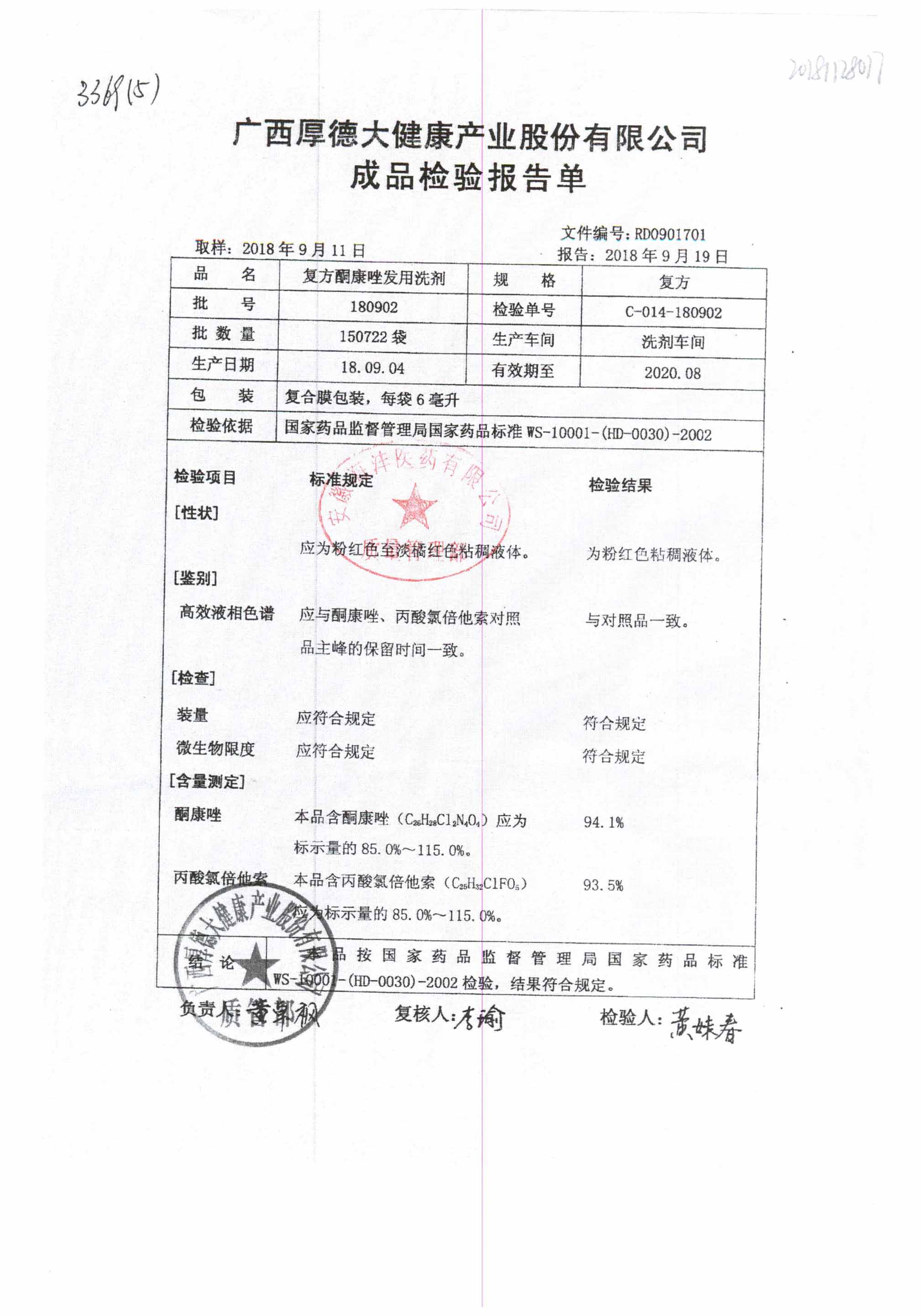 | 復(fù)方酮康唑發(fā)用洗劑 | 復(fù)方 | 180902 | 查看詳情 |