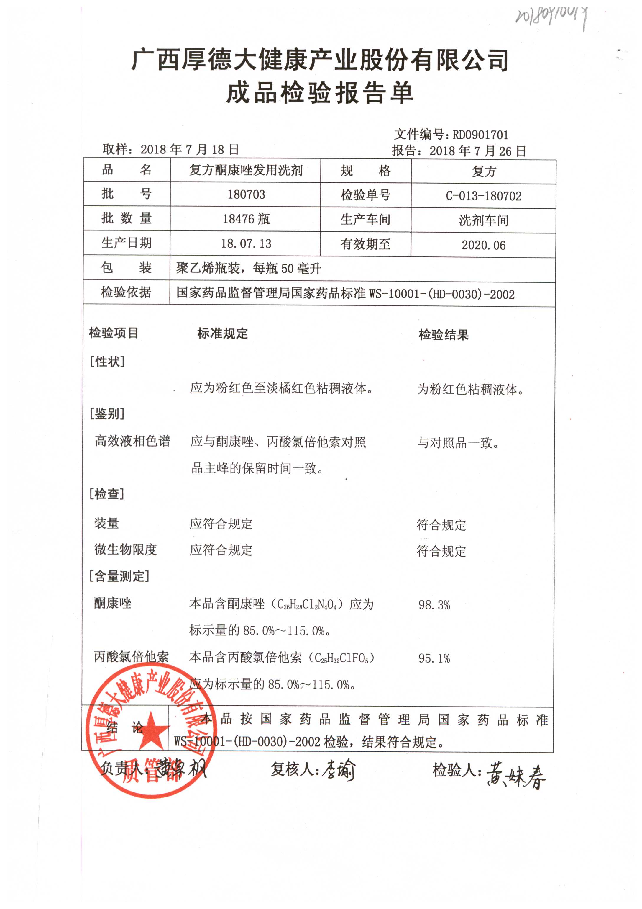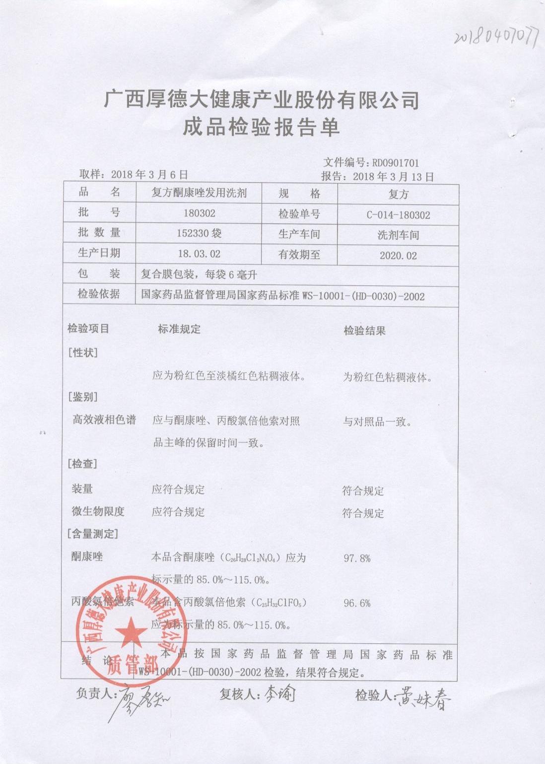 | 復(fù)方酮康唑發(fā)用洗劑 | 復(fù)方 | 200907 | 查看詳情 |