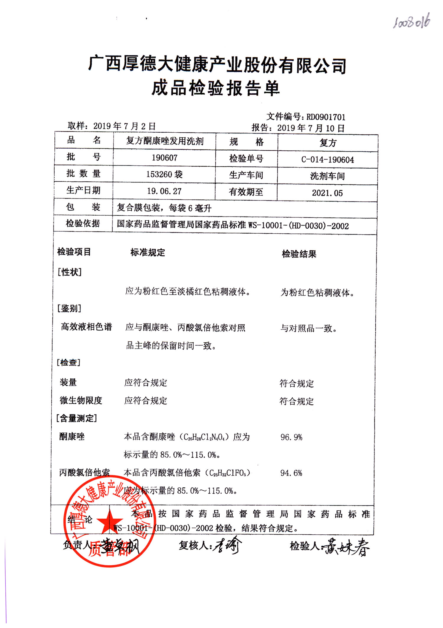| 復(fù)方酮康唑發(fā)用洗劑 | 復(fù)方 | 190607 | 查看詳情 |