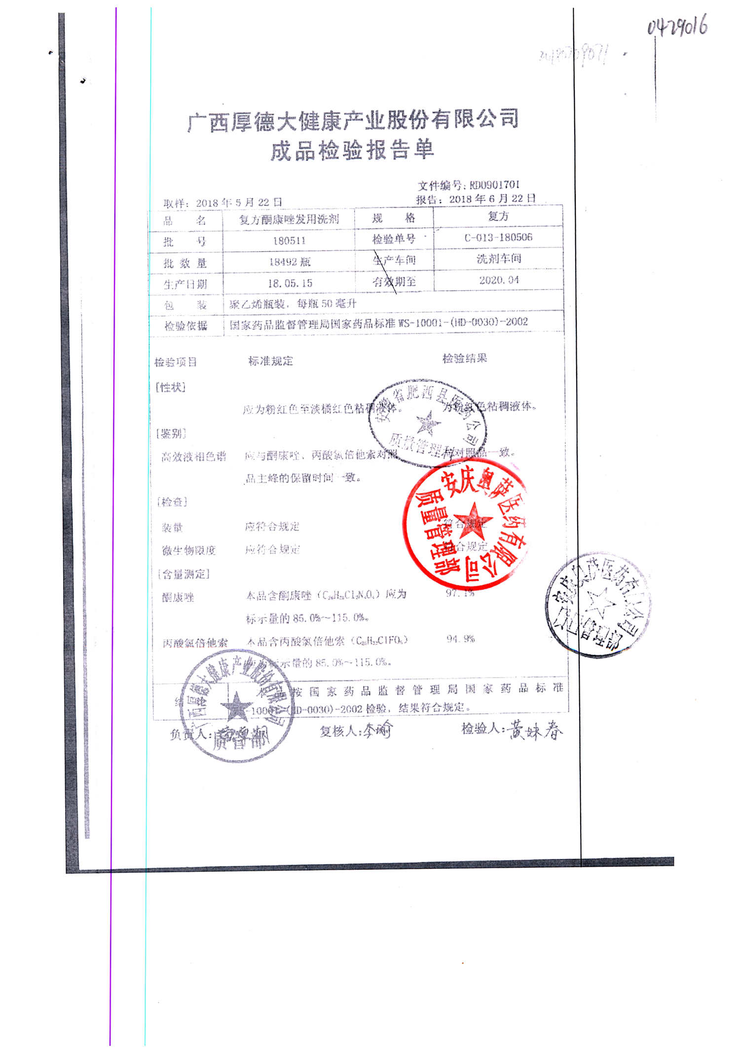 | 復(fù)方酮康唑發(fā)用洗劑 | 復(fù)方 | 180416 | 查看詳情 |