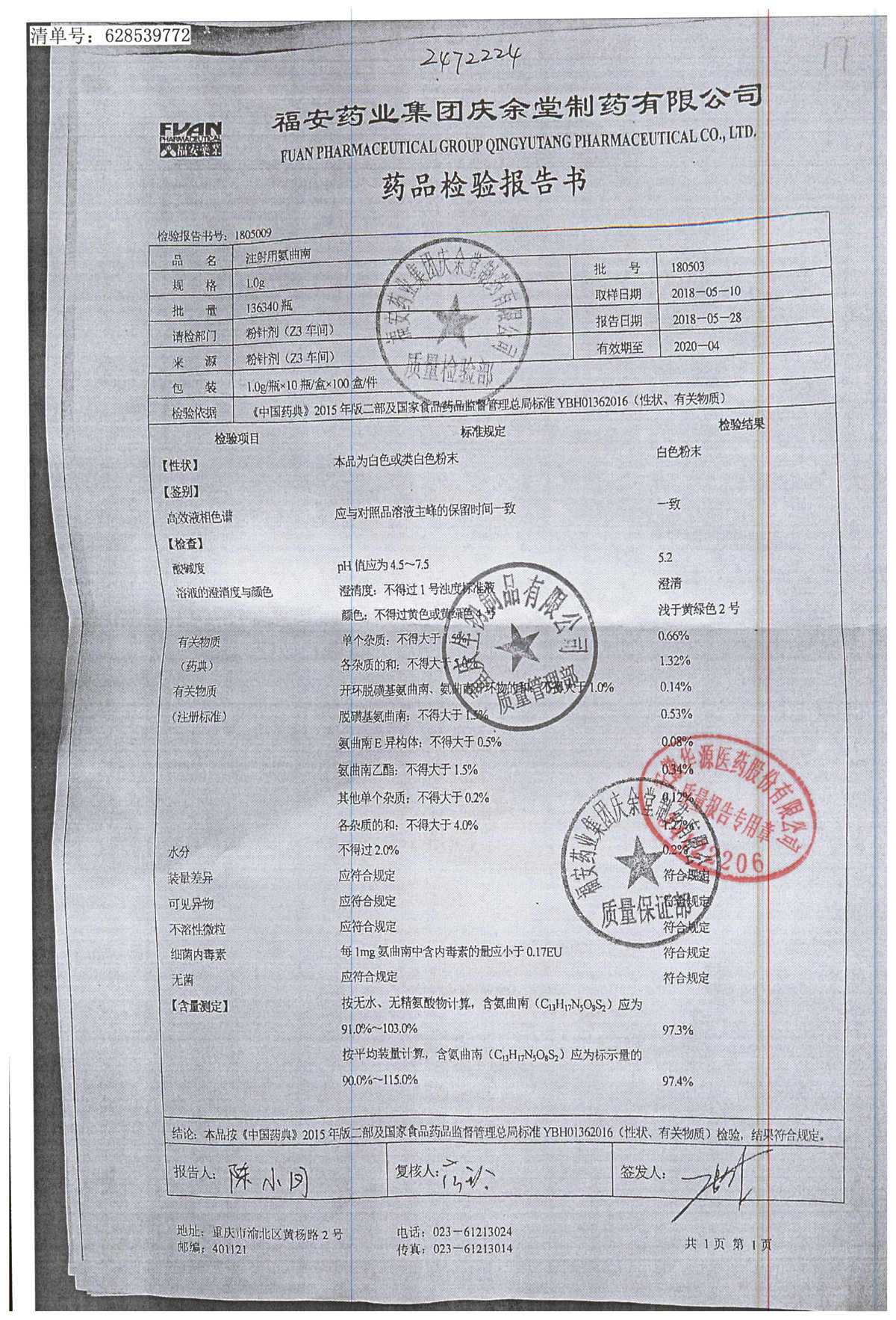 | 注射用氨曲南 | 1.0g | 180503 | 查看詳情 |