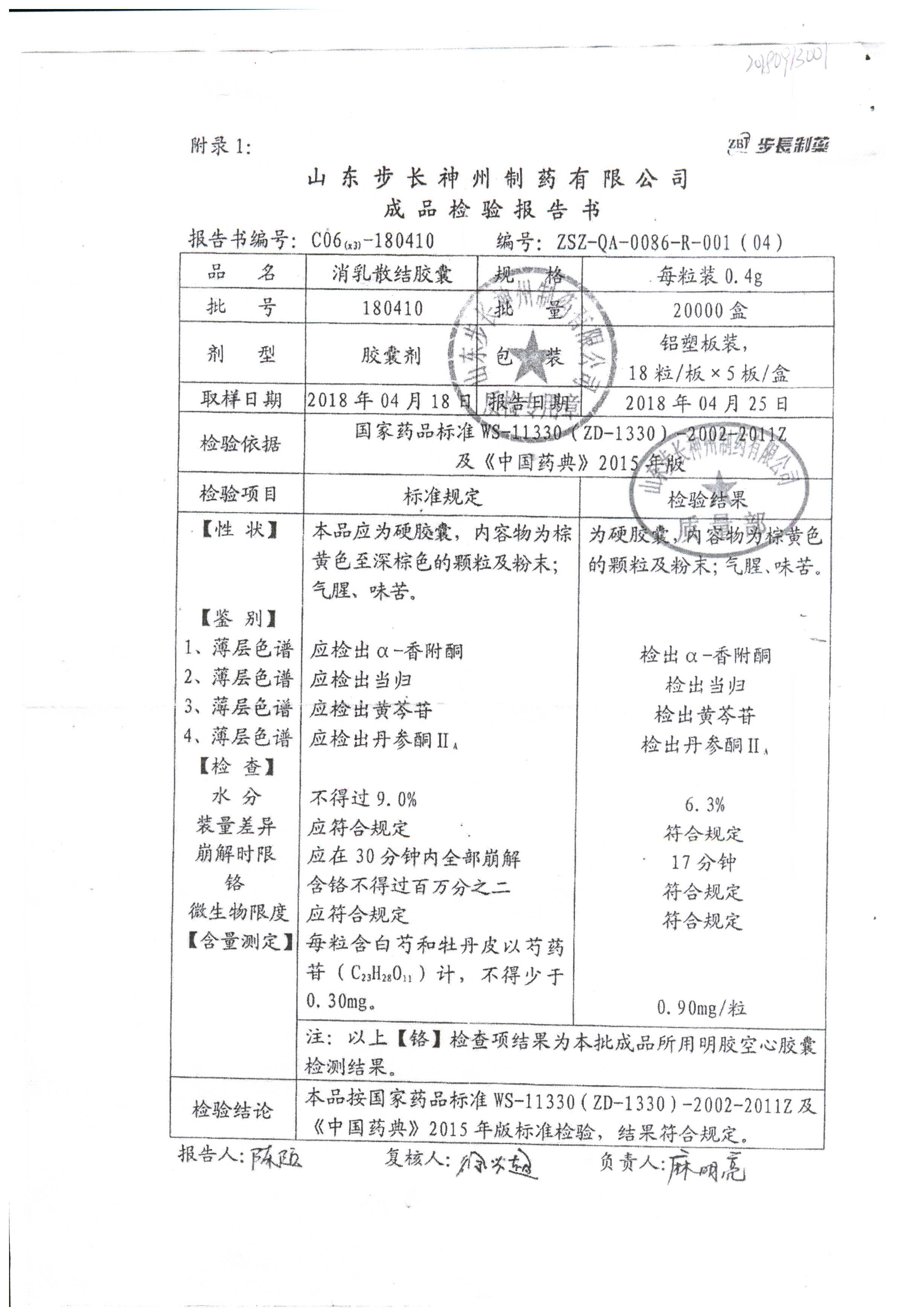 | 消乳散結(jié)膠囊 | 0.4g*90粒 | 180410 | 查看詳情 |