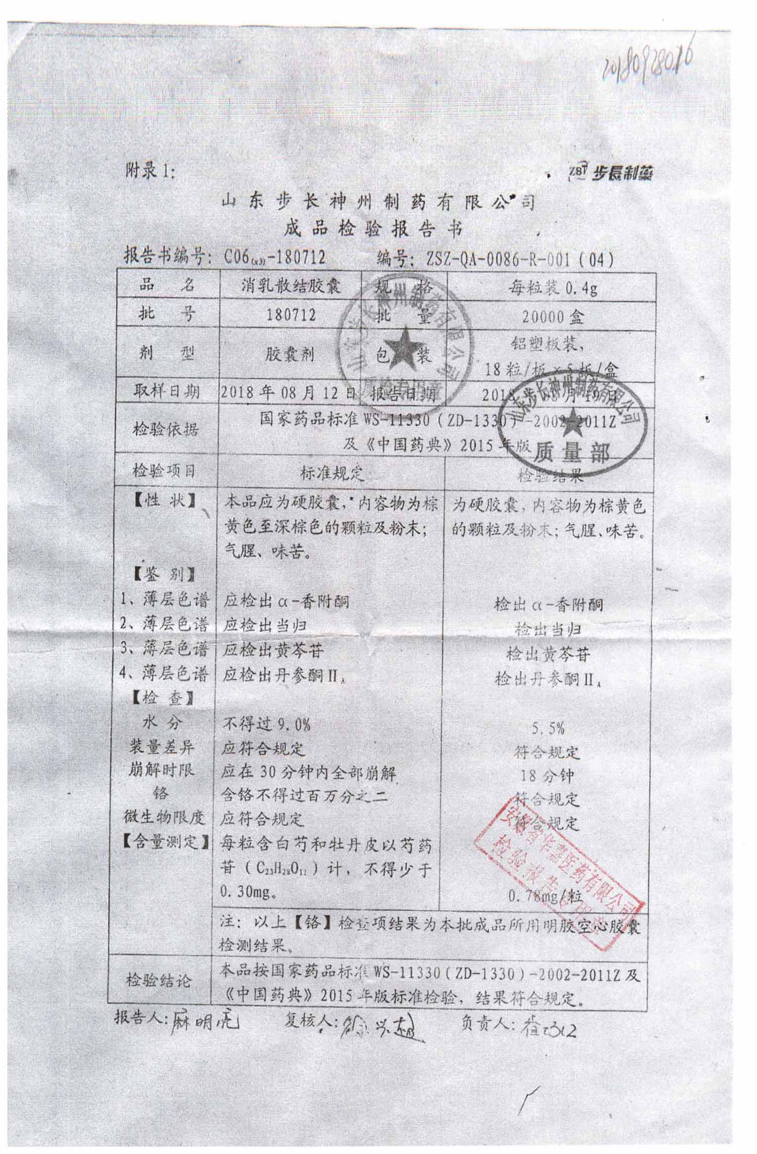 | 名稱 | 規(guī)格 | 批號 | 藥檢報告 |