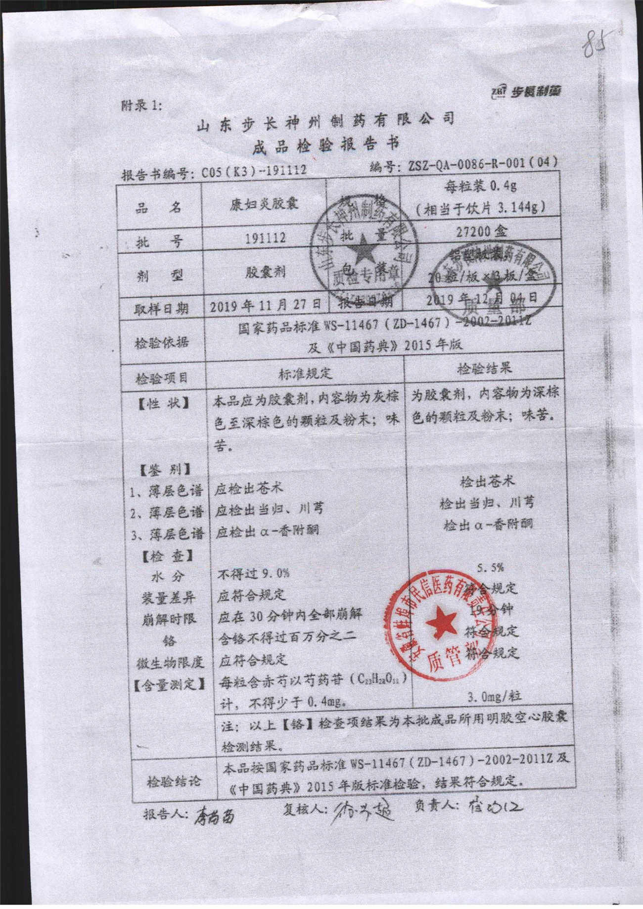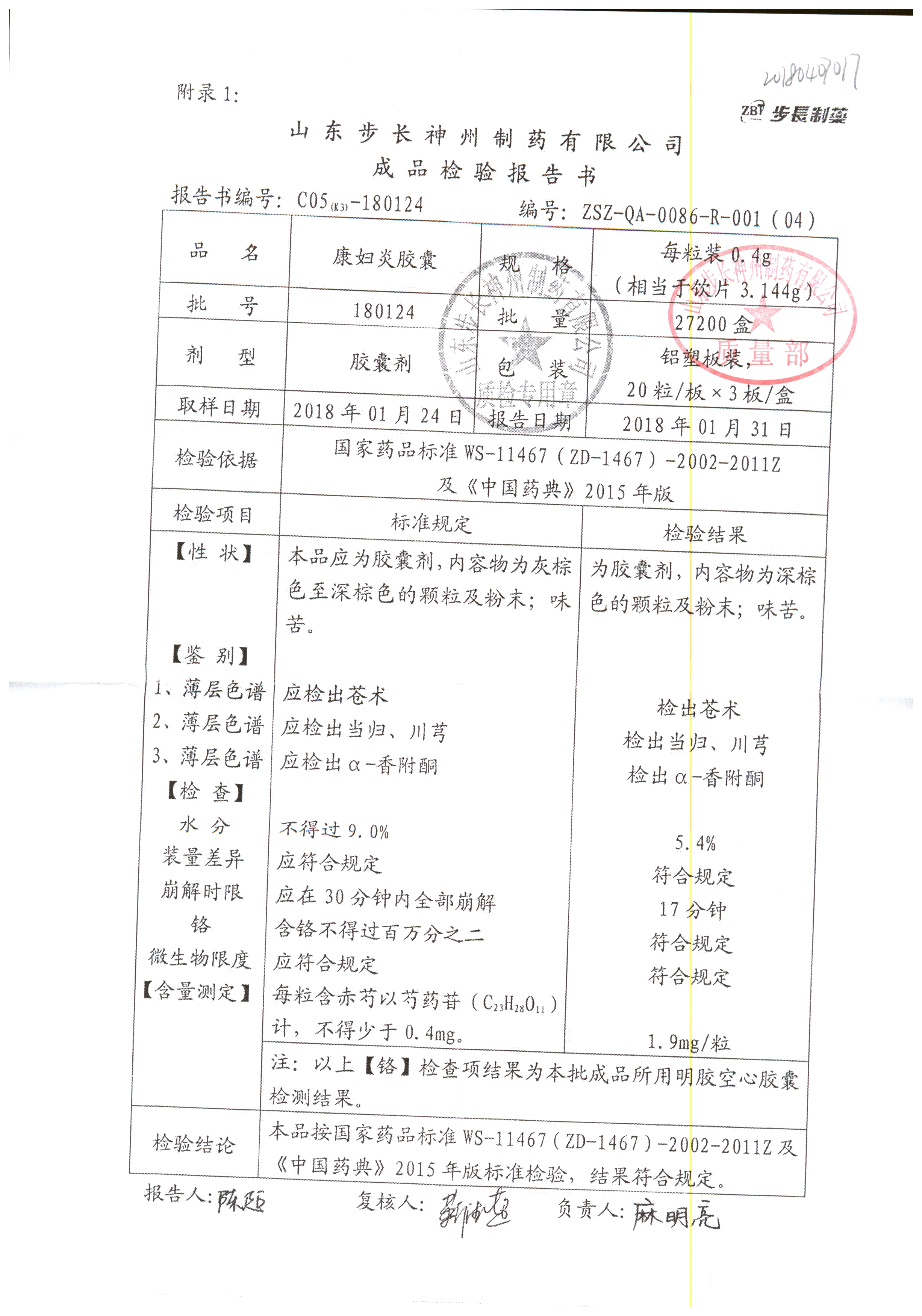 | 名稱 | 規(guī)格 | 批號(hào) | 藥檢報(bào)告 |