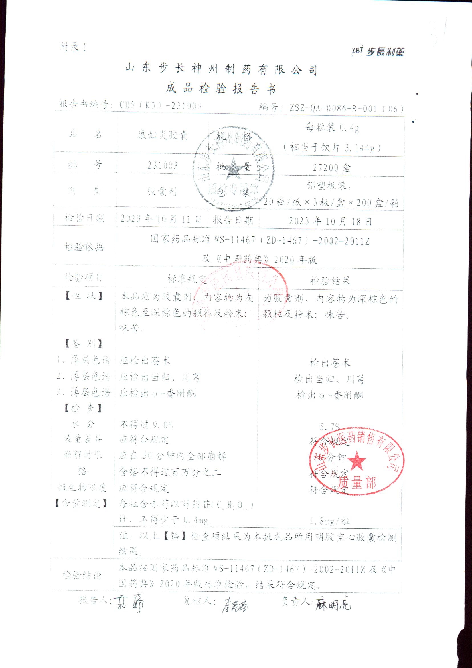 | 康婦炎膠囊 | 0.4g*60粒 | 240209 | 查看詳情 |
