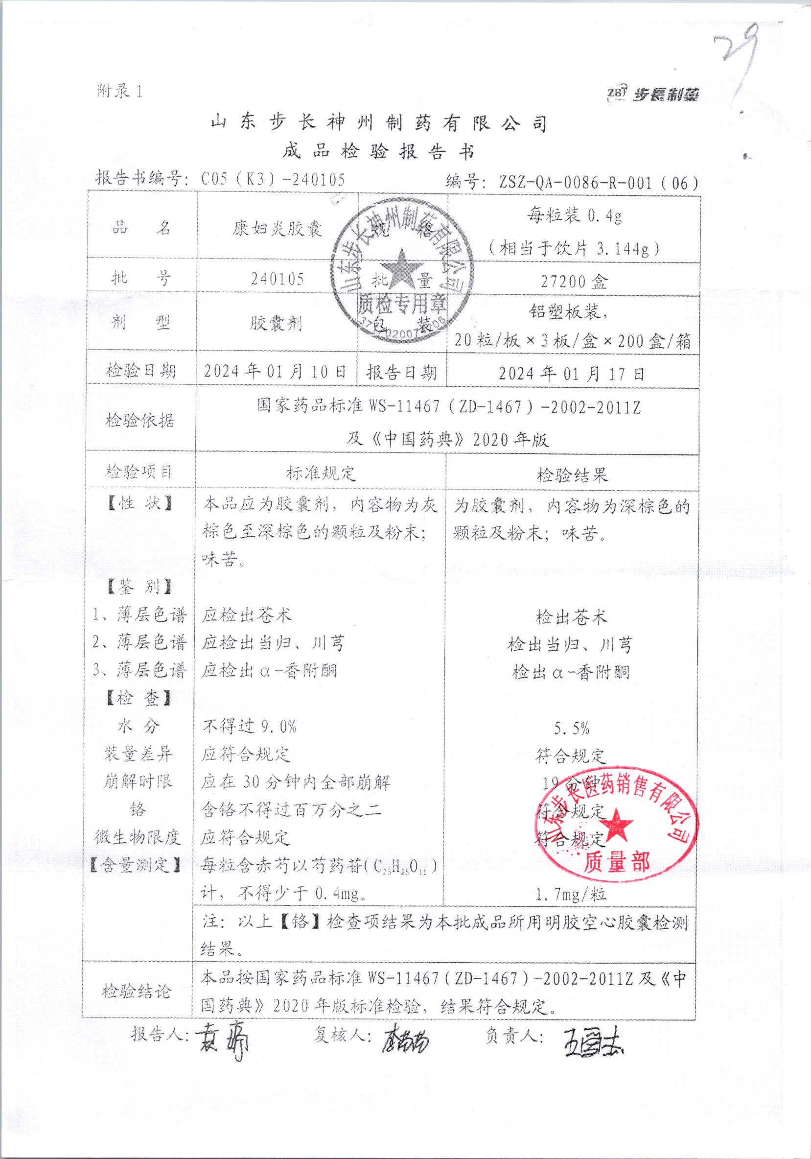 | 康婦炎膠囊 | 0.4g*60粒 | 240105 | 查看詳情 |