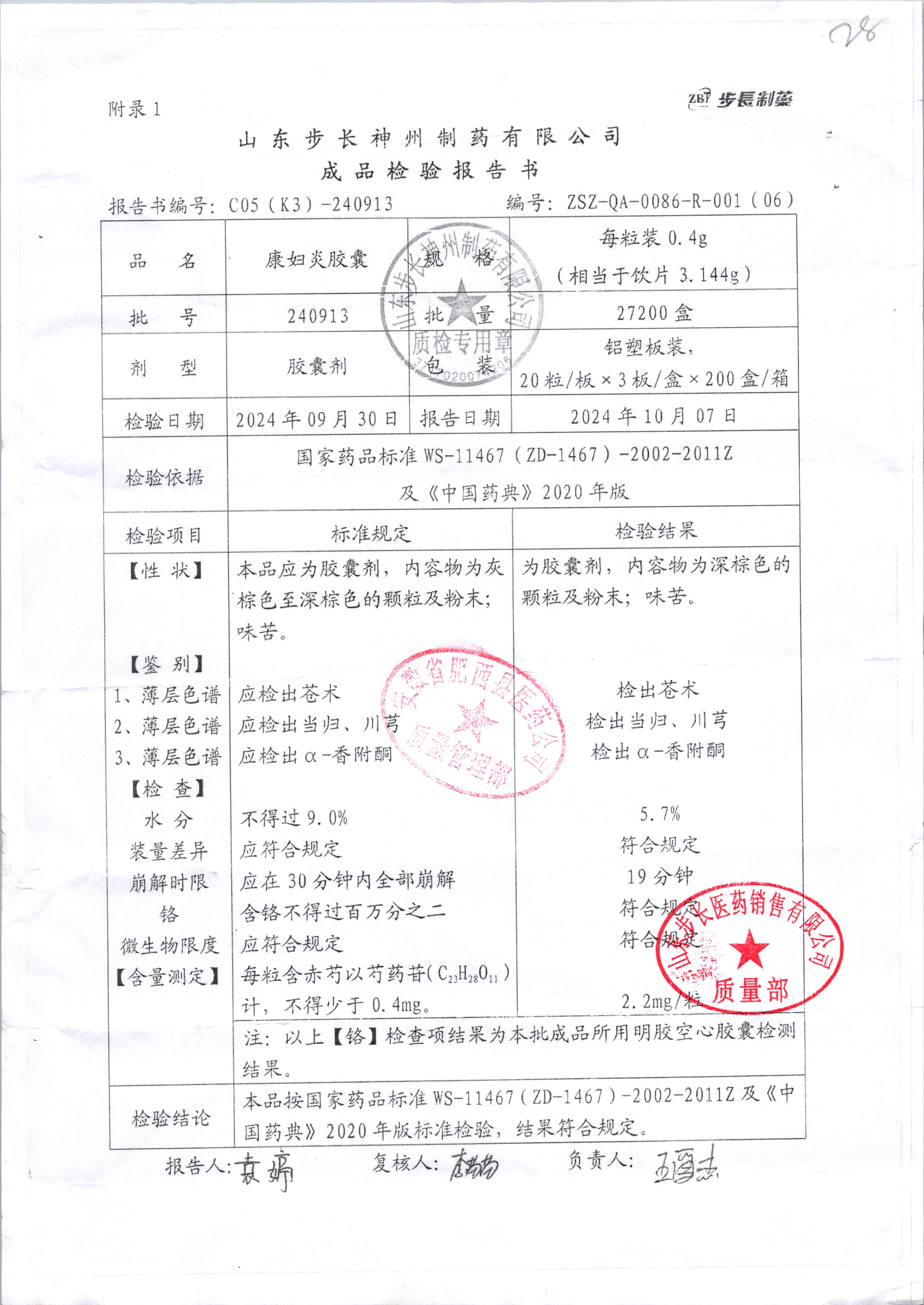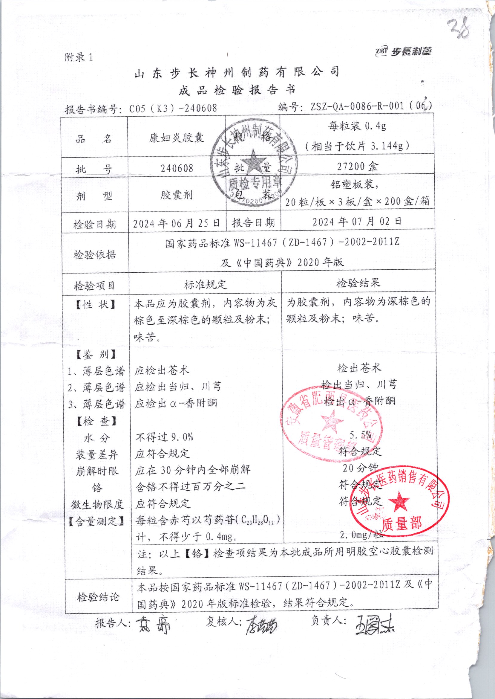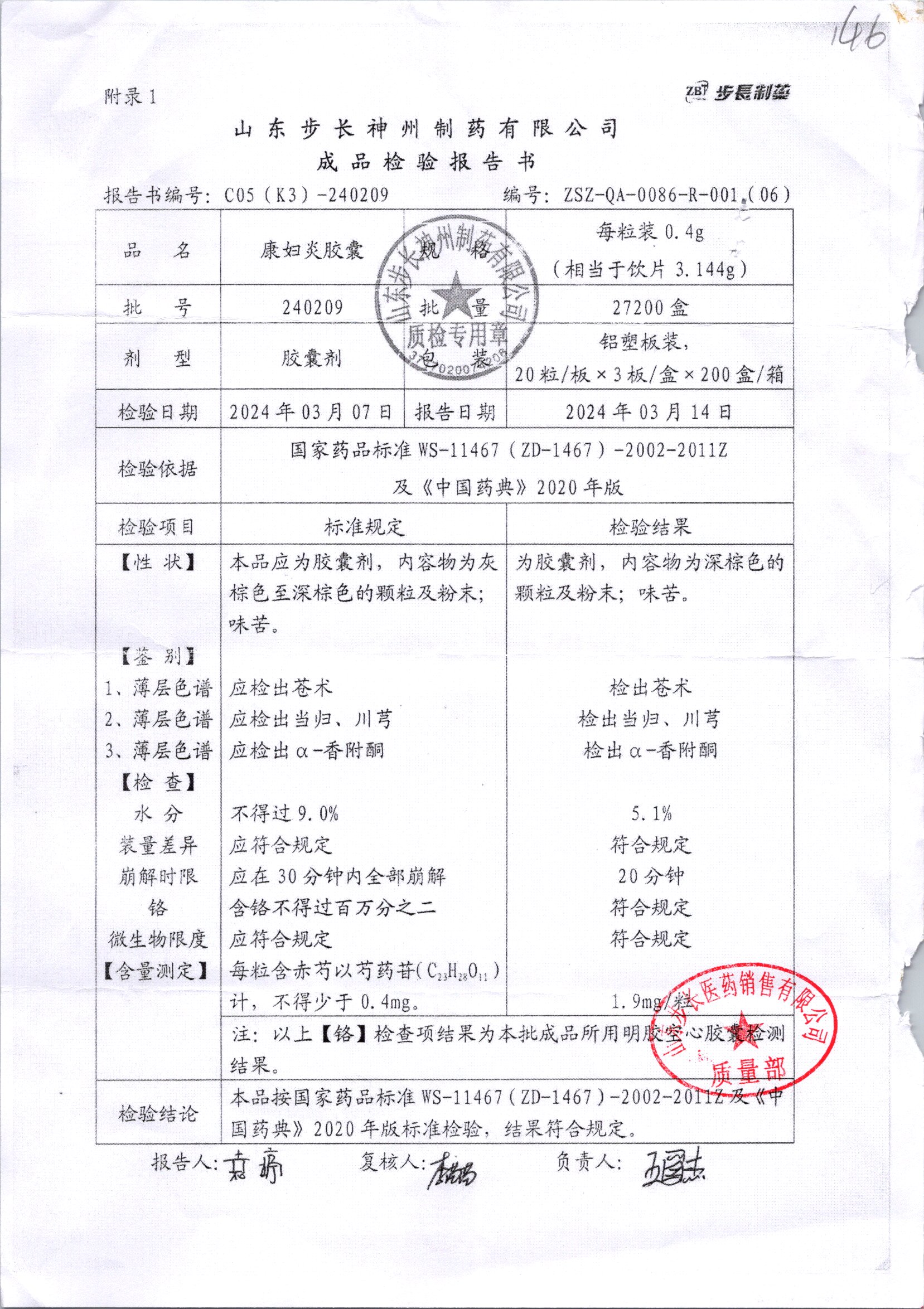 | 康婦炎膠囊 | 0.4g*60粒 | 240913 | 查看詳情 |
