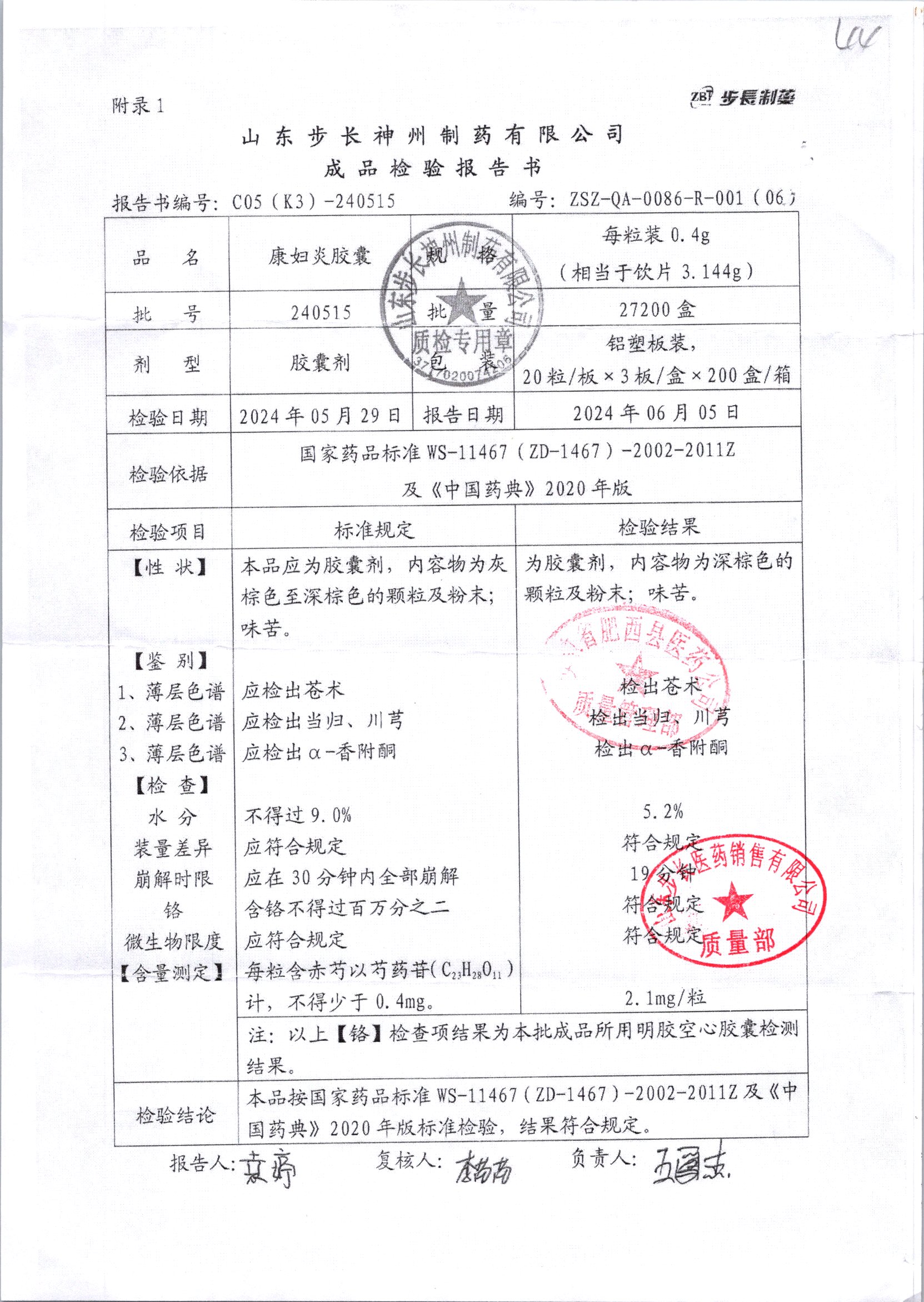 | 康婦炎膠囊 | 0.4g*60粒 | 240515 | 查看詳情 |