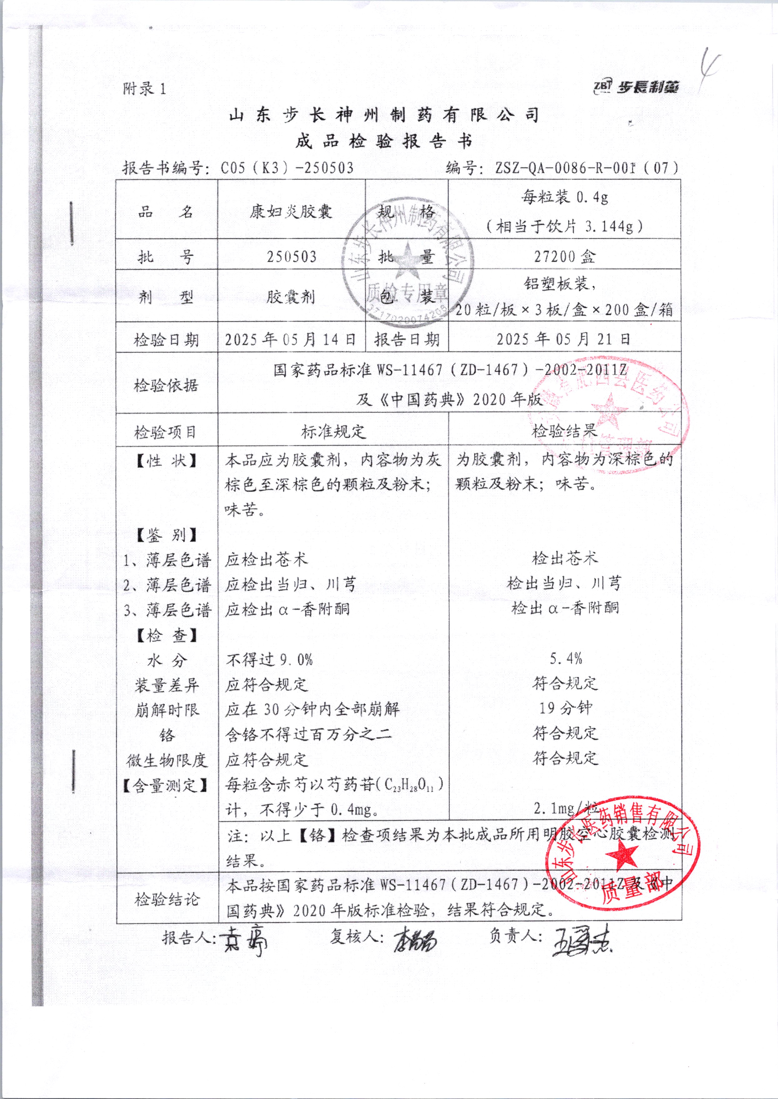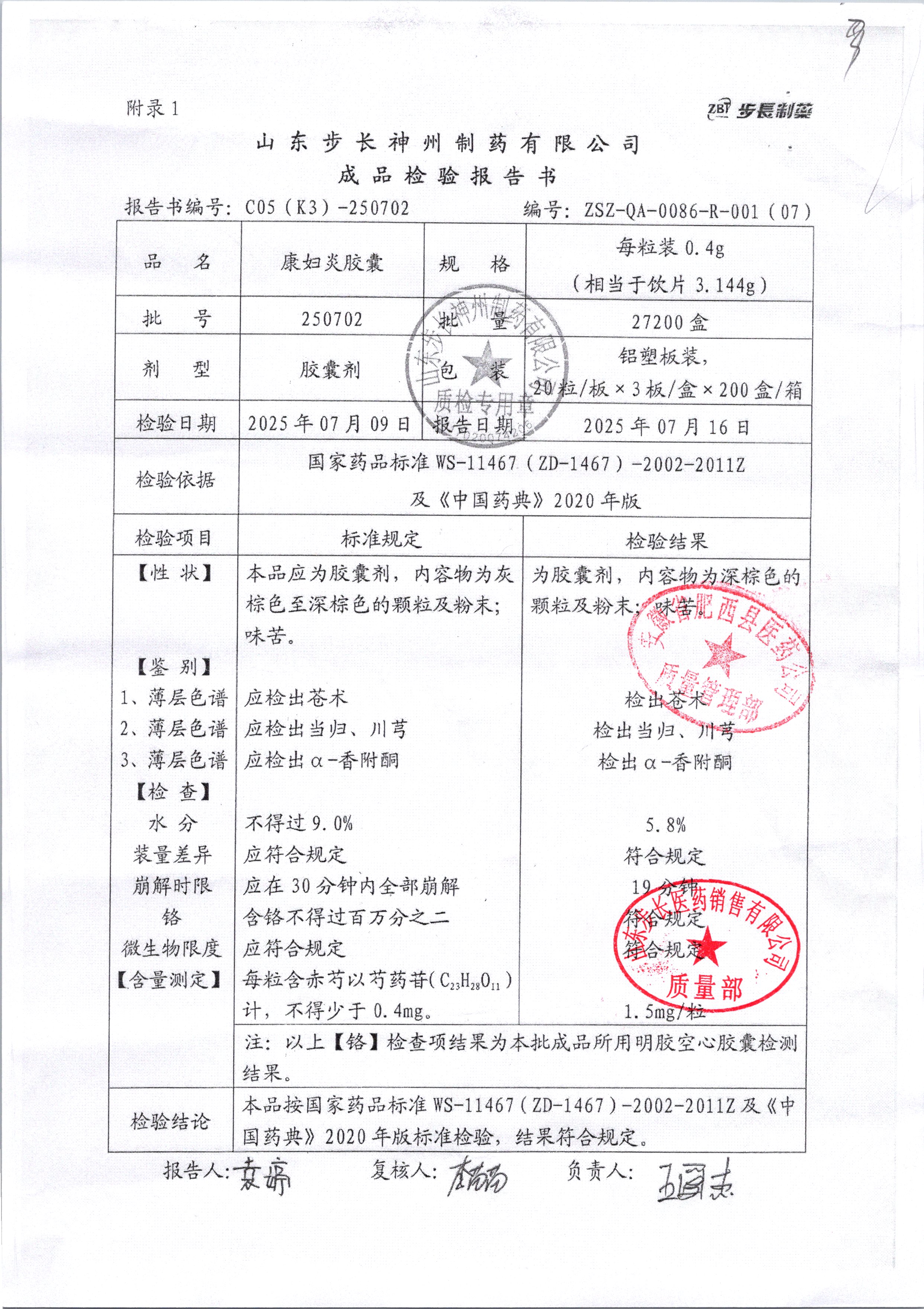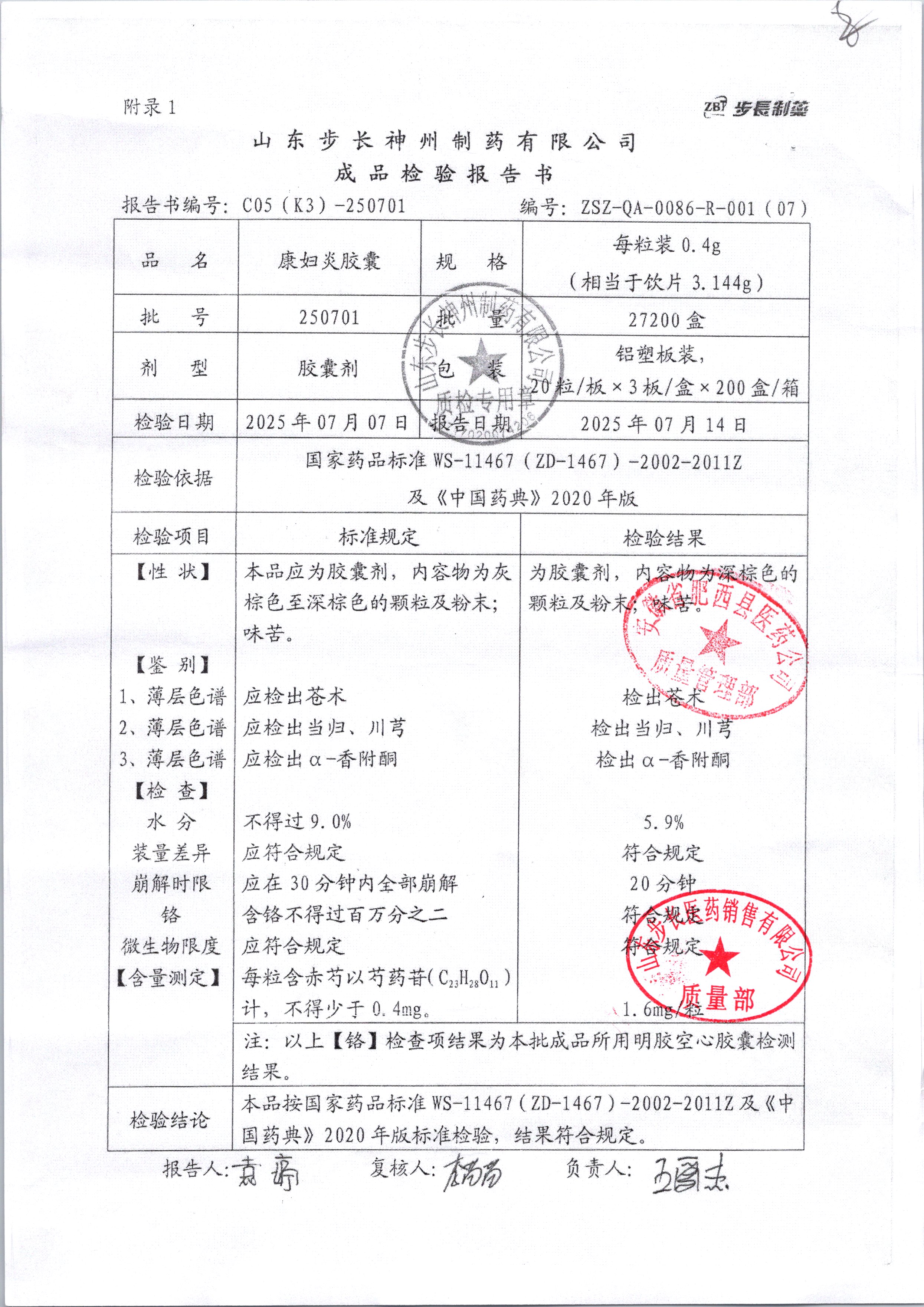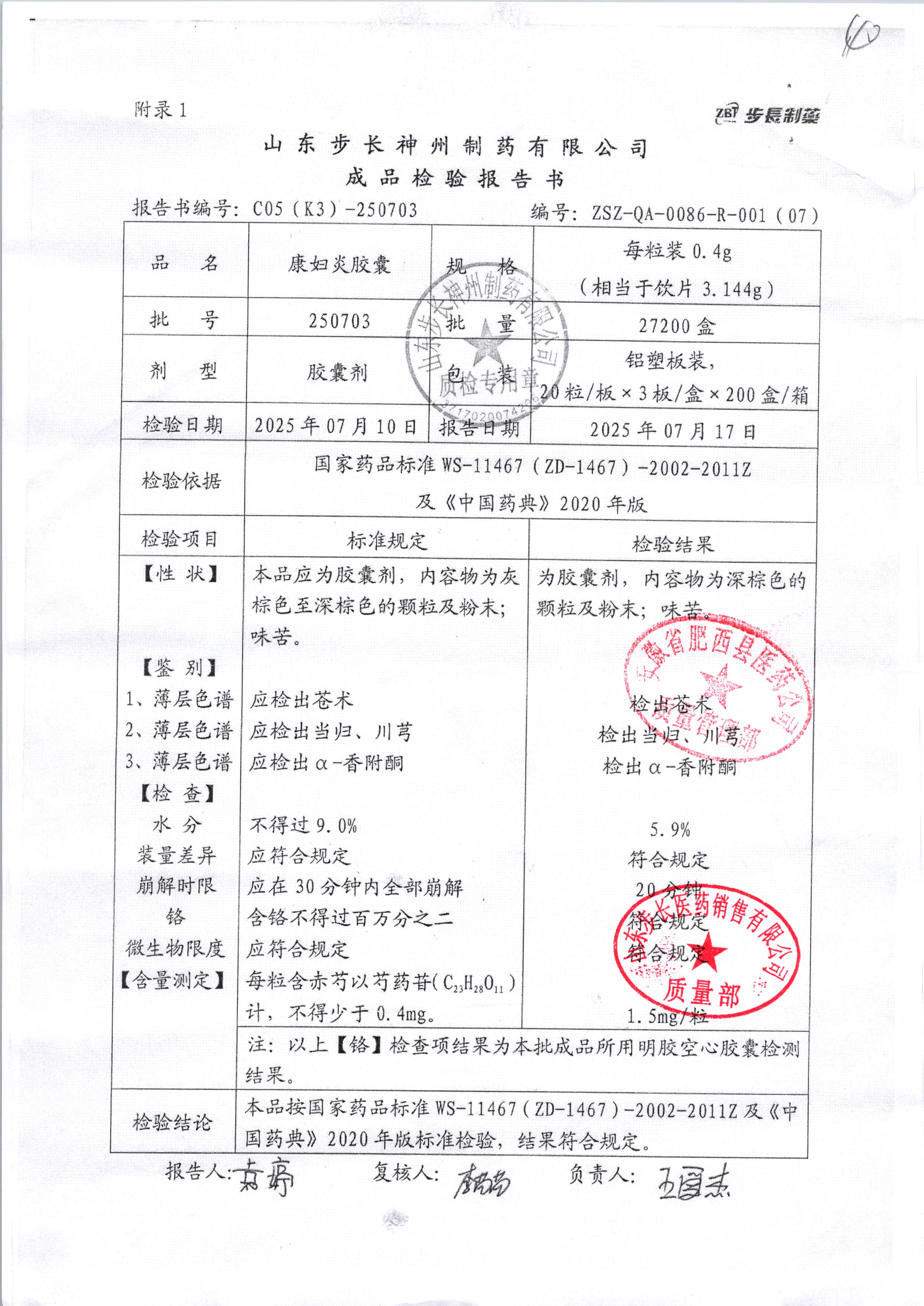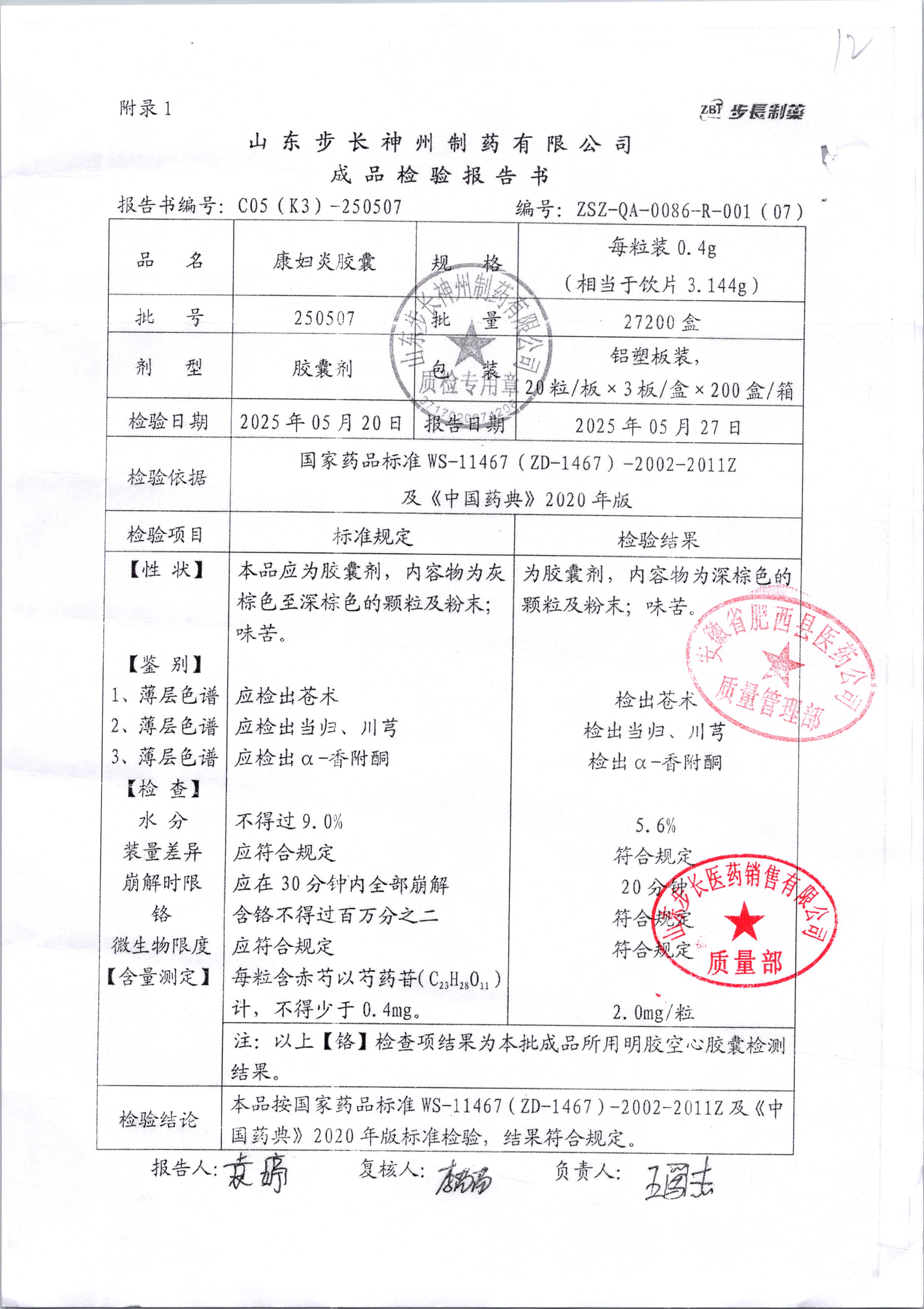 | 康婦炎膠囊 | 0.4g*60粒 | 250703 | 查看詳情 |