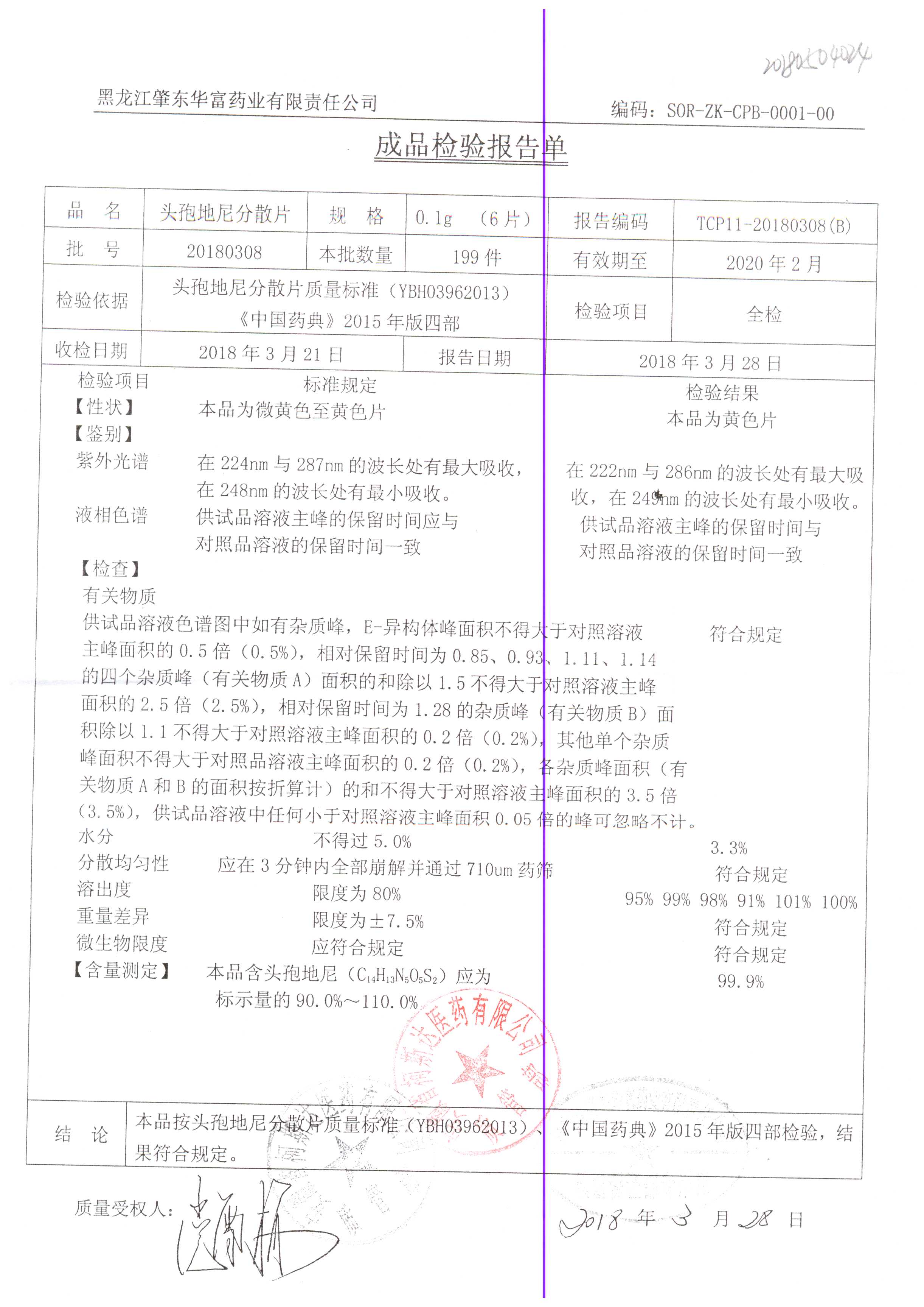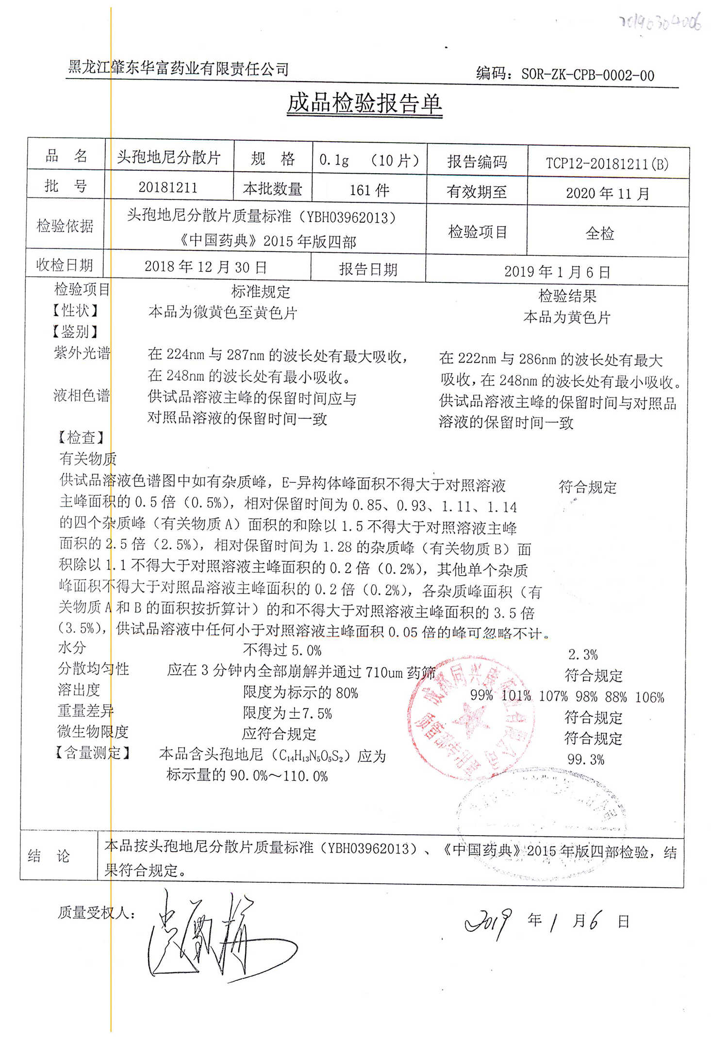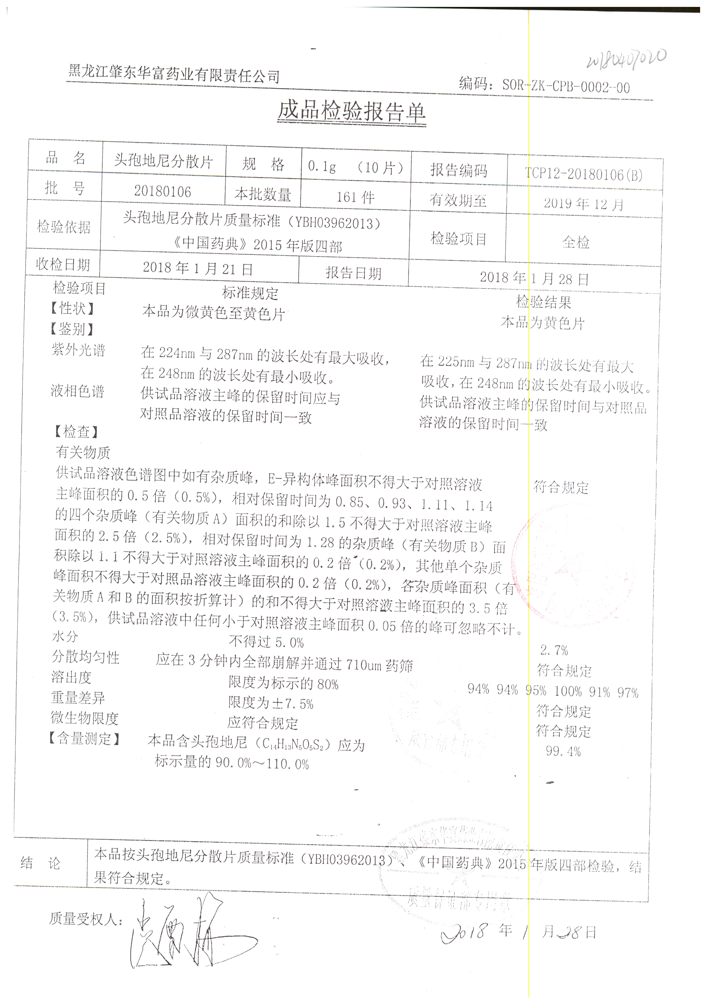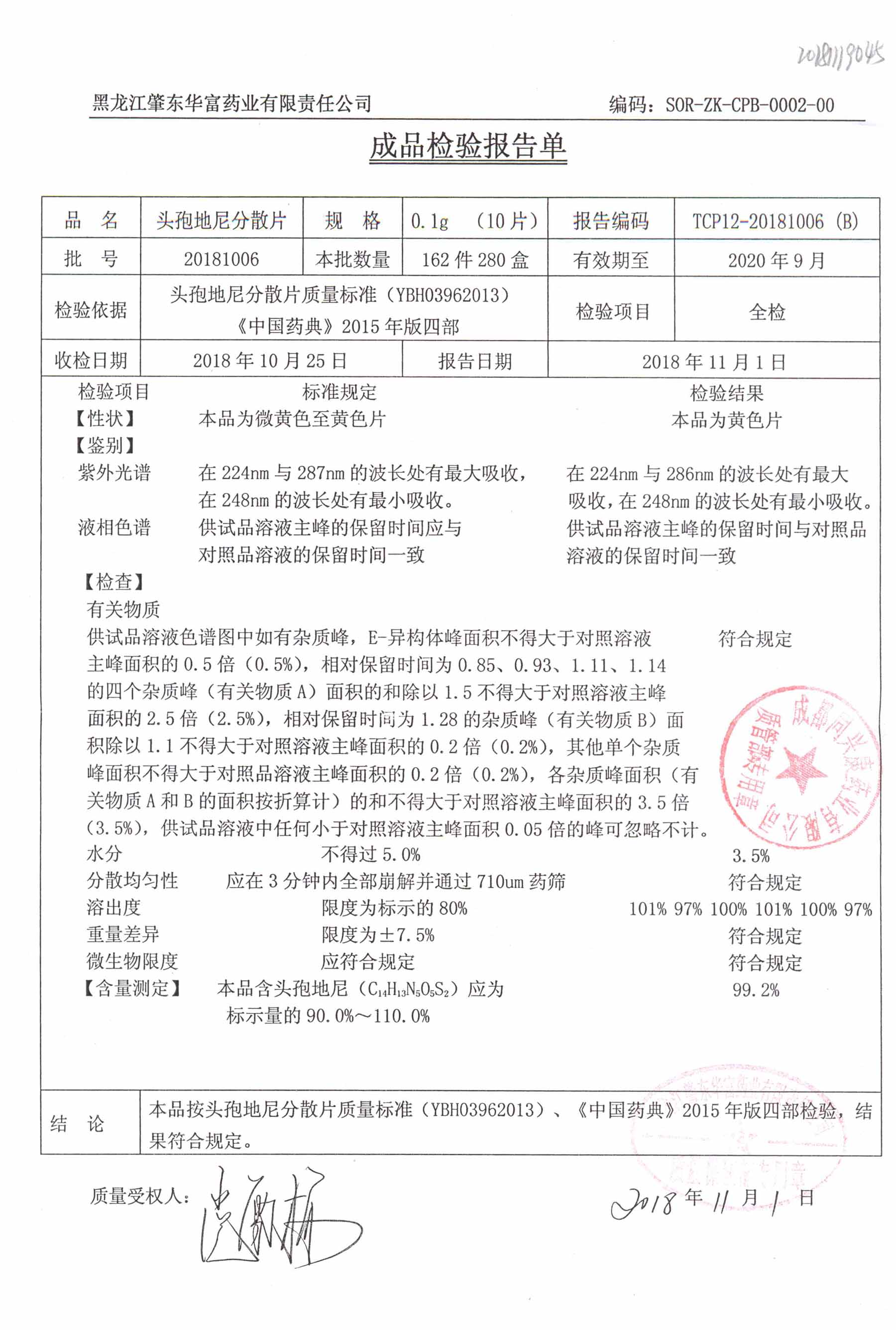 | 頭孢地尼分散片 | 0.1g*10s | 20181006 | 查看詳情 |