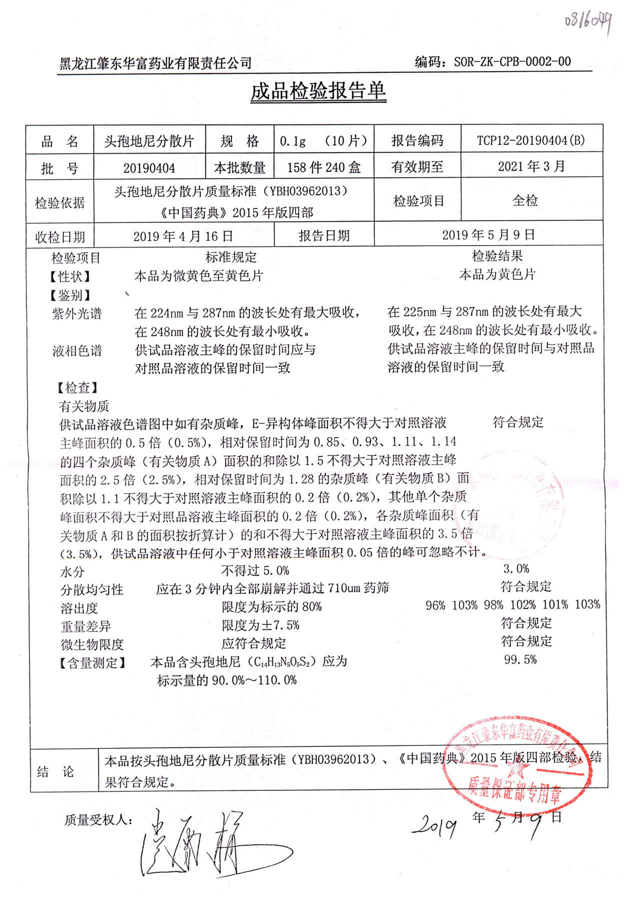 | 頭孢地尼分散片 | 0.1g*10s | 20190404 | 查看詳情 |