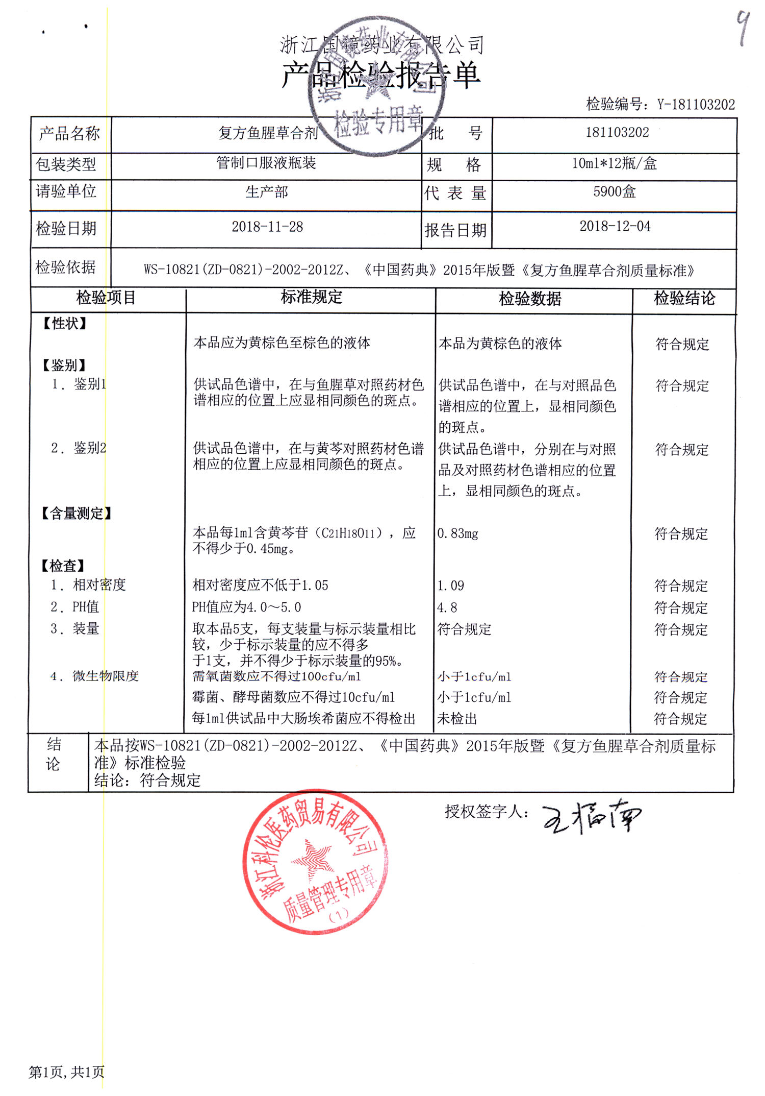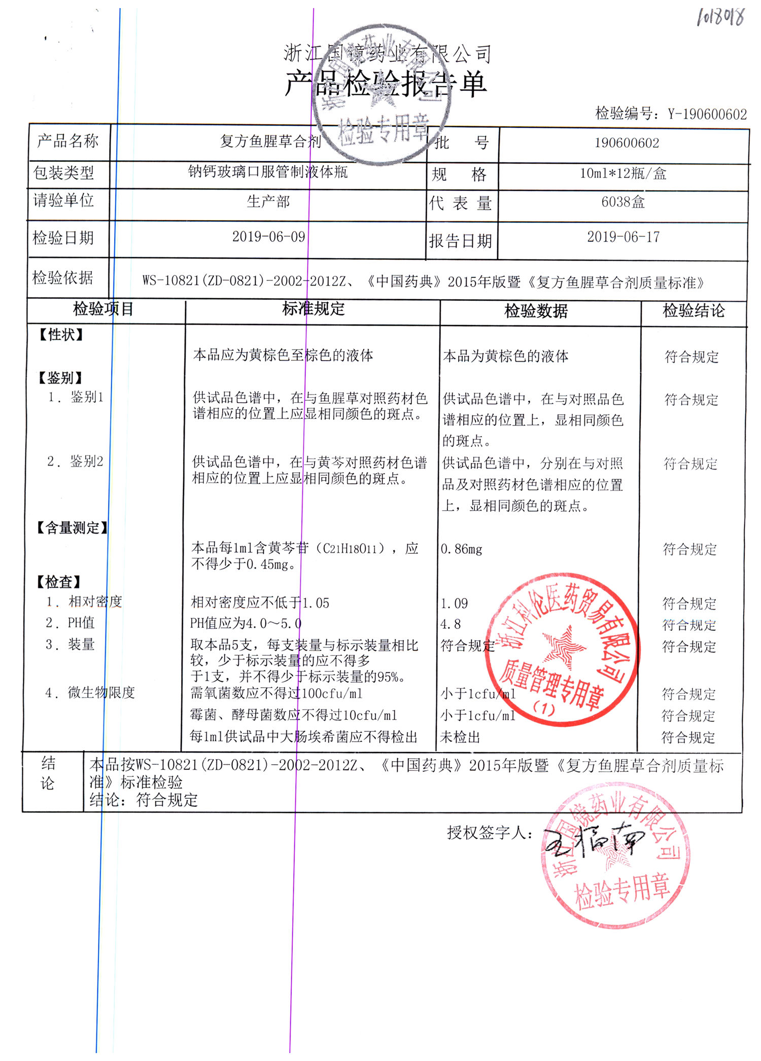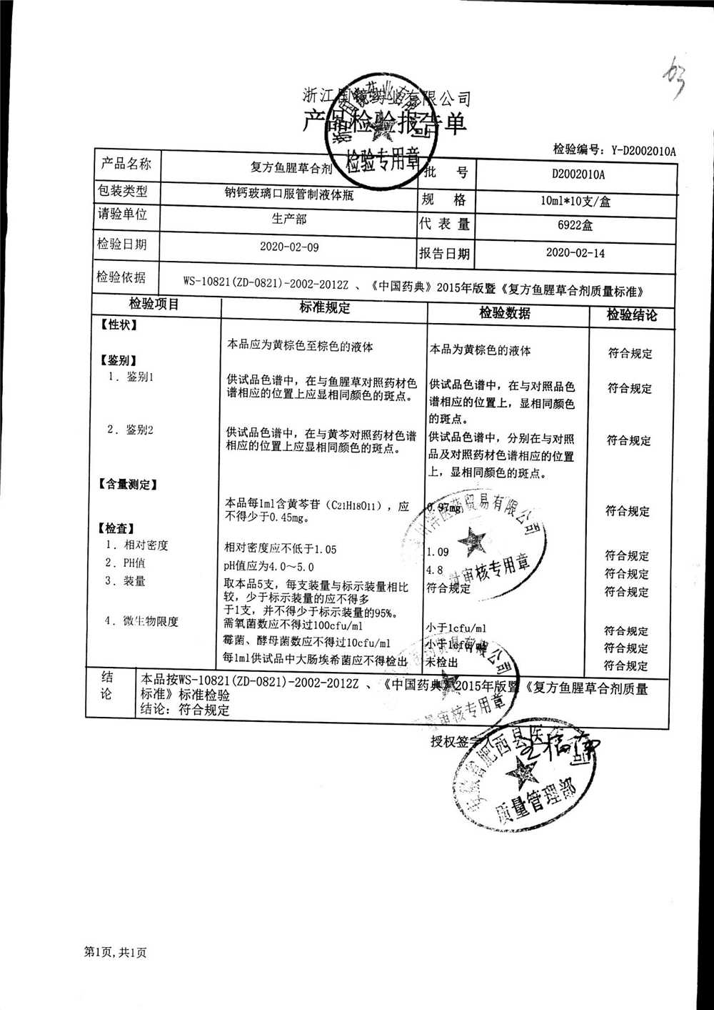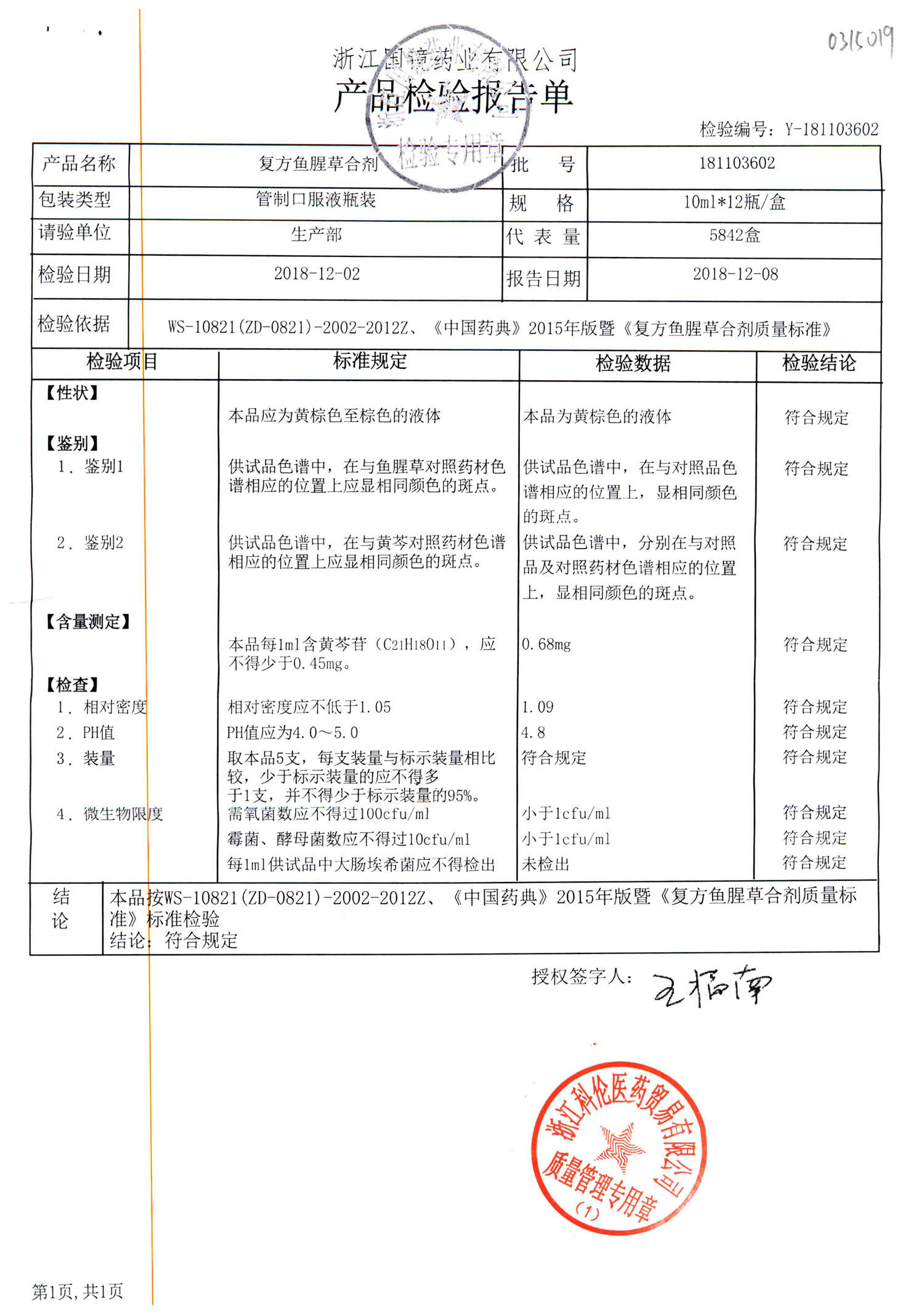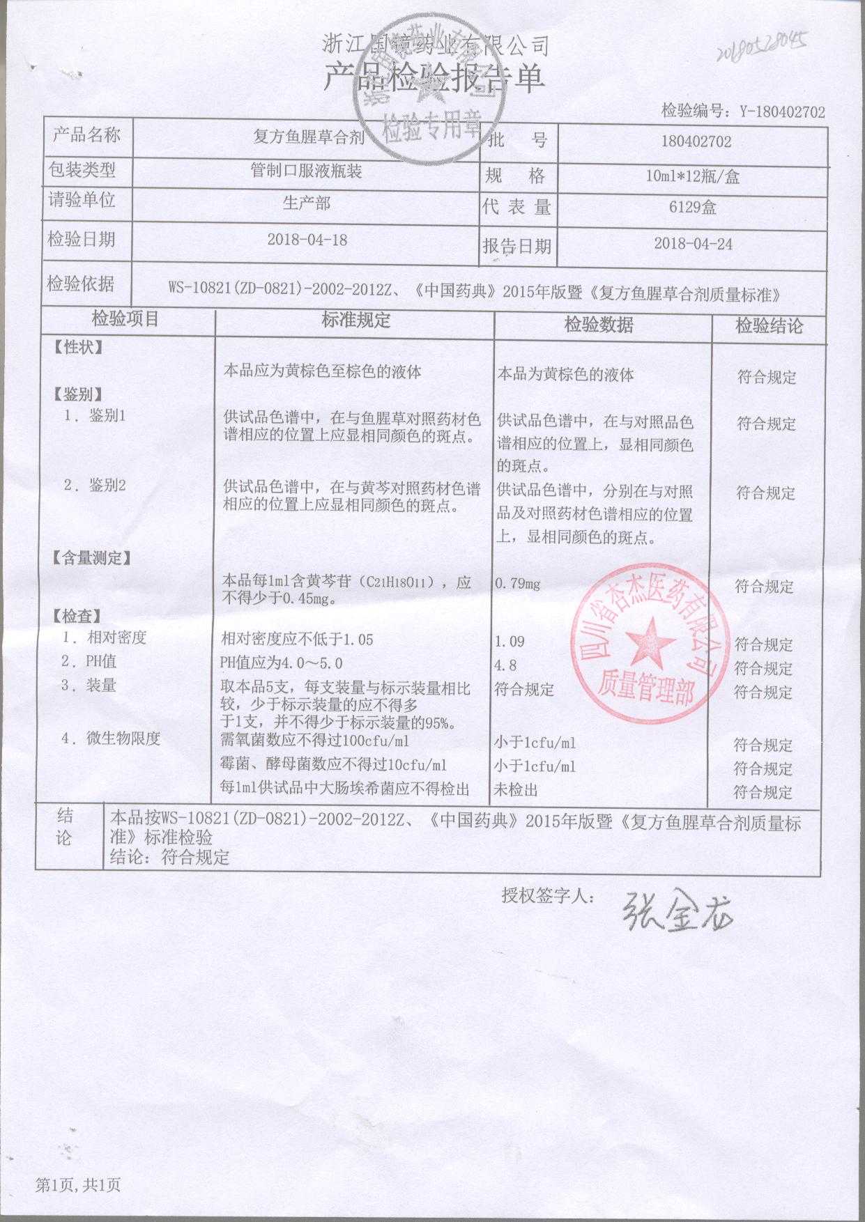 | 復(fù)方魚腥草合劑 | 10ml | 180200902 | 查看詳情 |