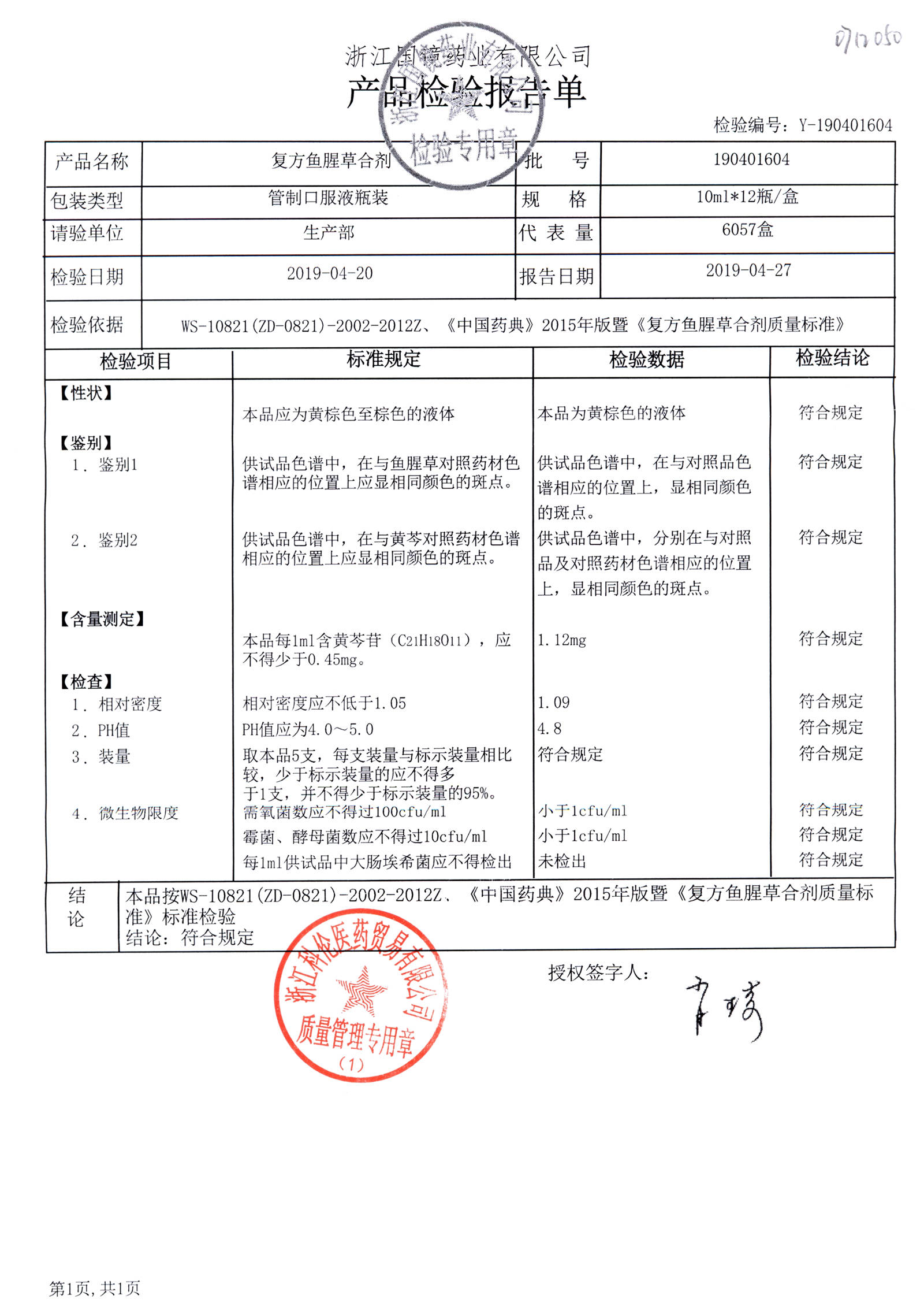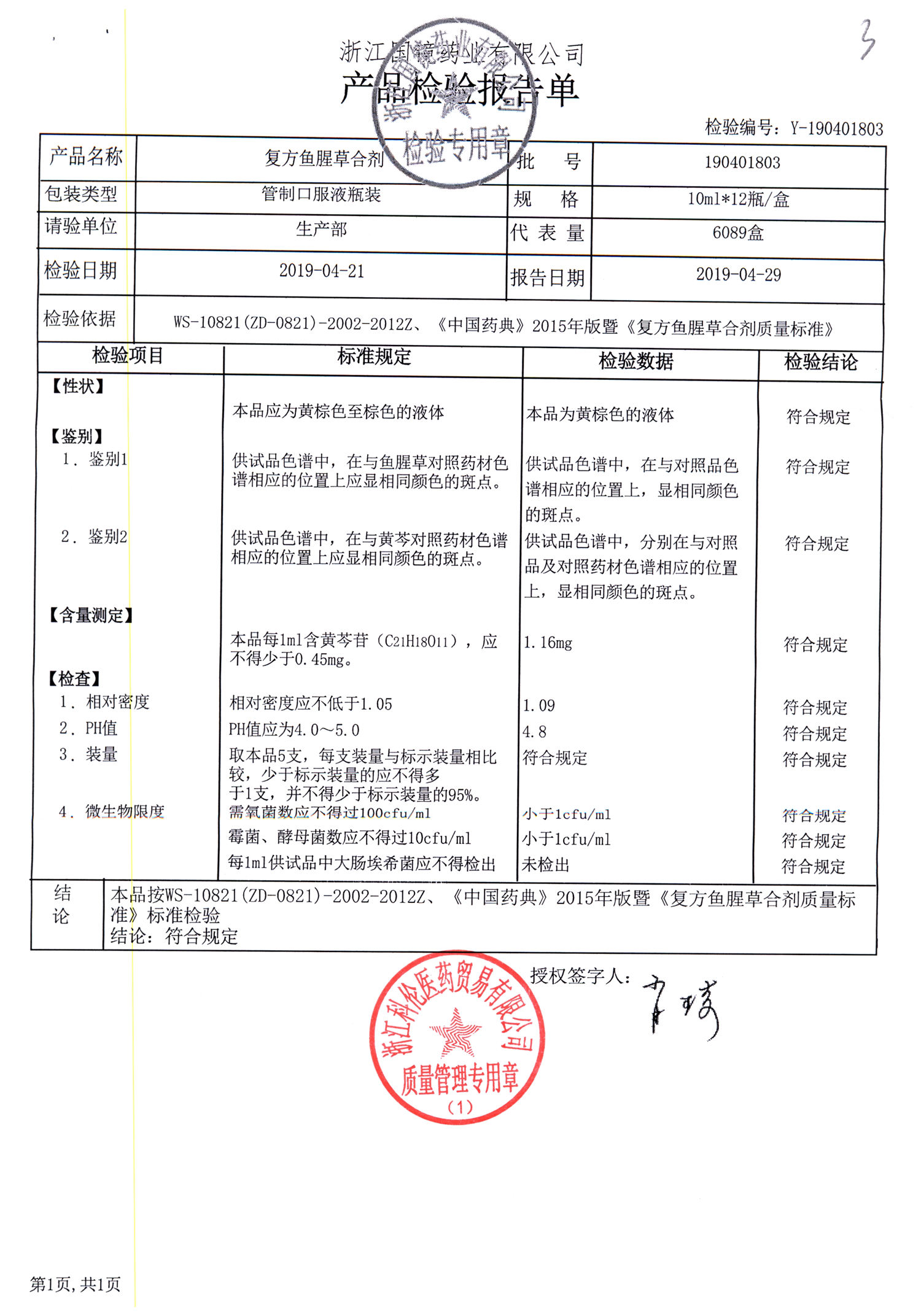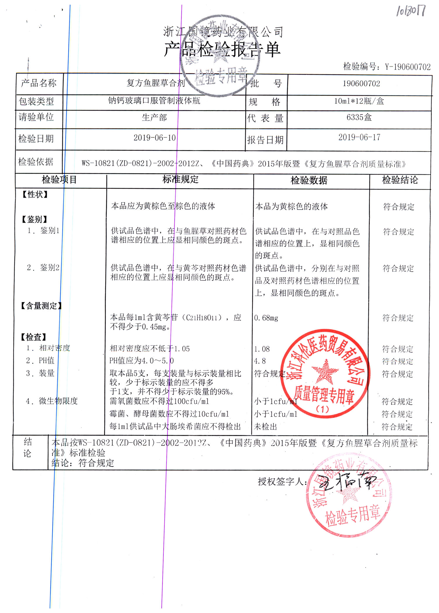 | 復(fù)方魚腥草合劑 | 10ml | 190200301 | 查看詳情 |