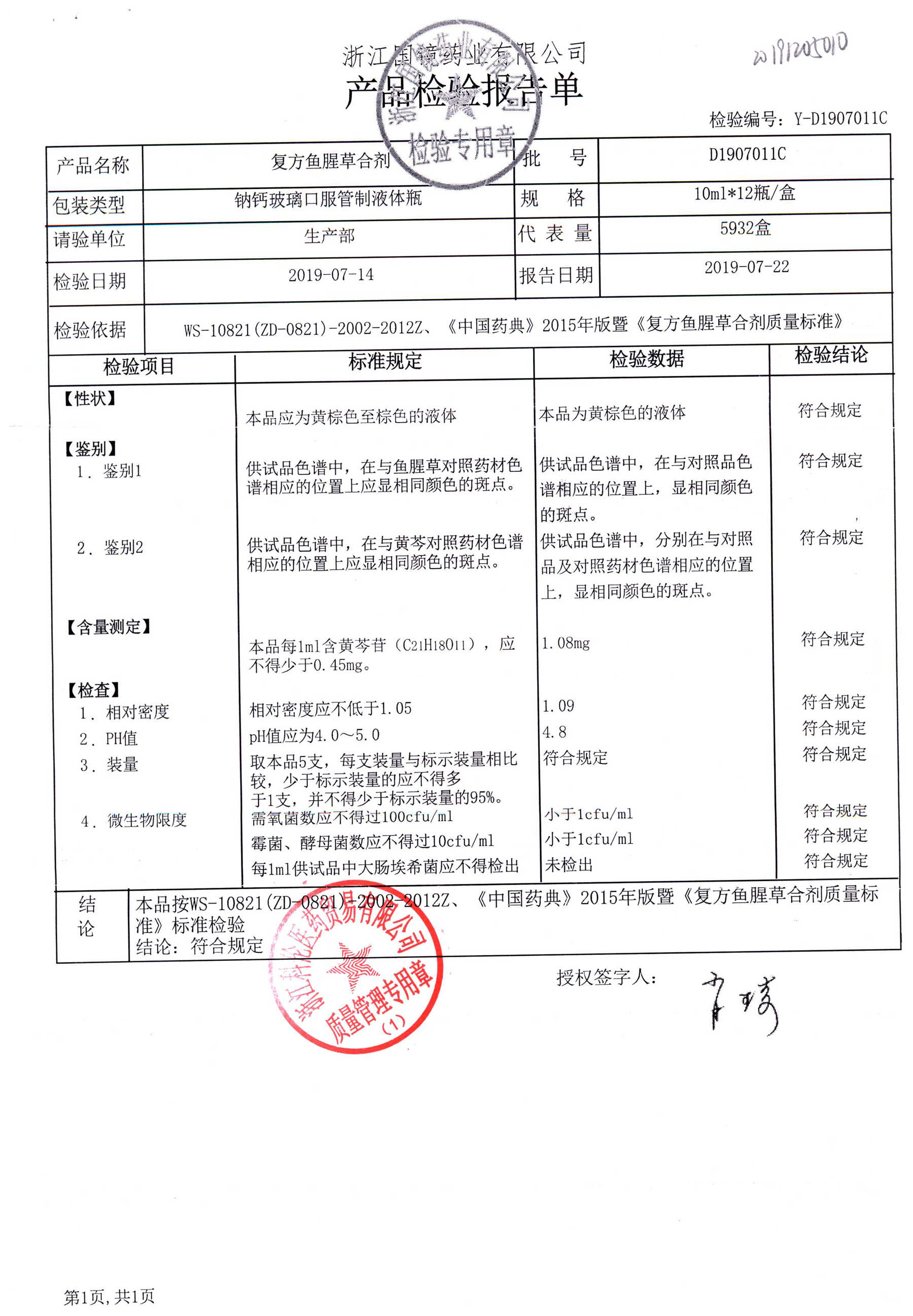 | 復(fù)方魚腥草合劑 | 10ml | D1907011A | 查看詳情 |