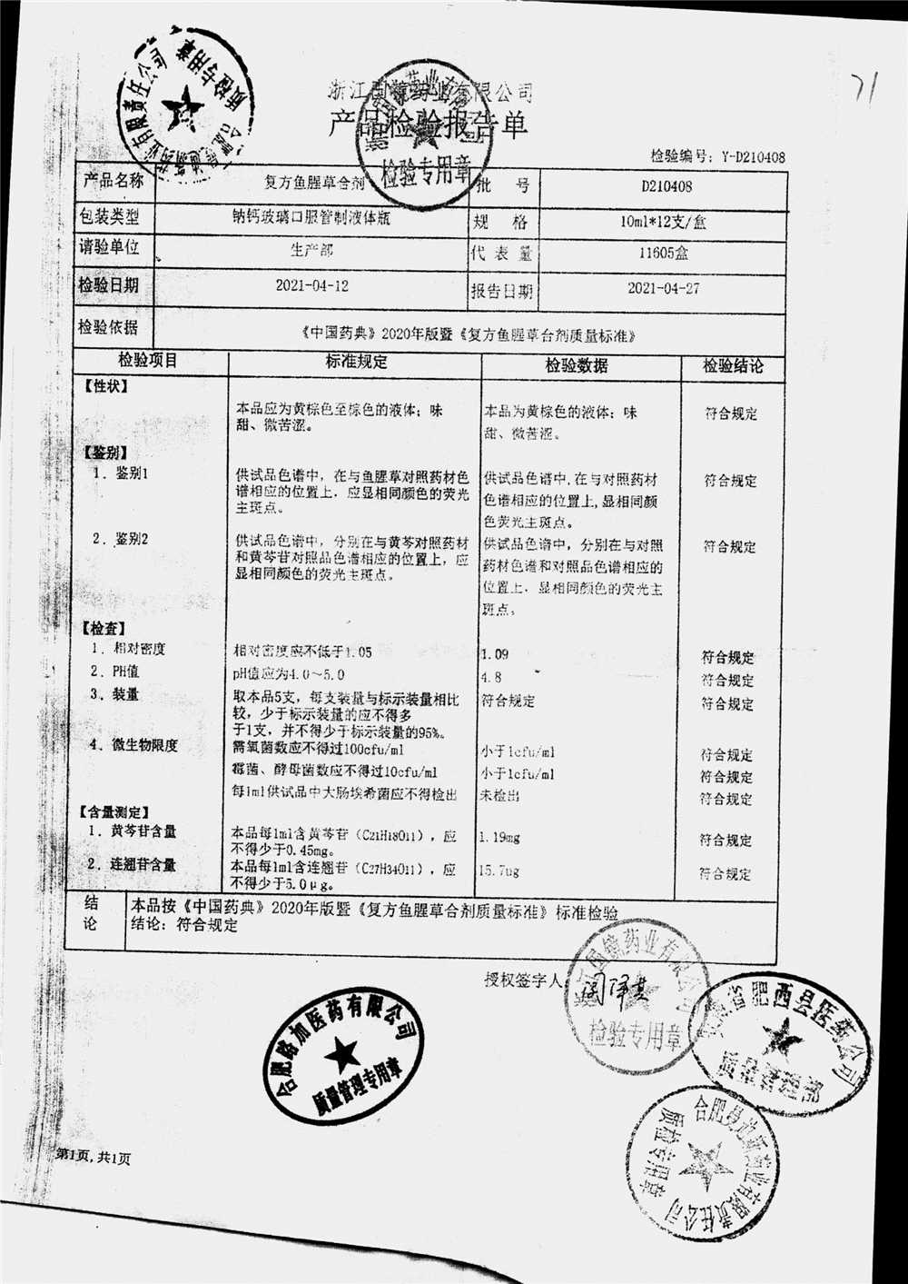 | 復(fù)方魚腥草合劑 | 10ml | D210408 | 查看詳情 |