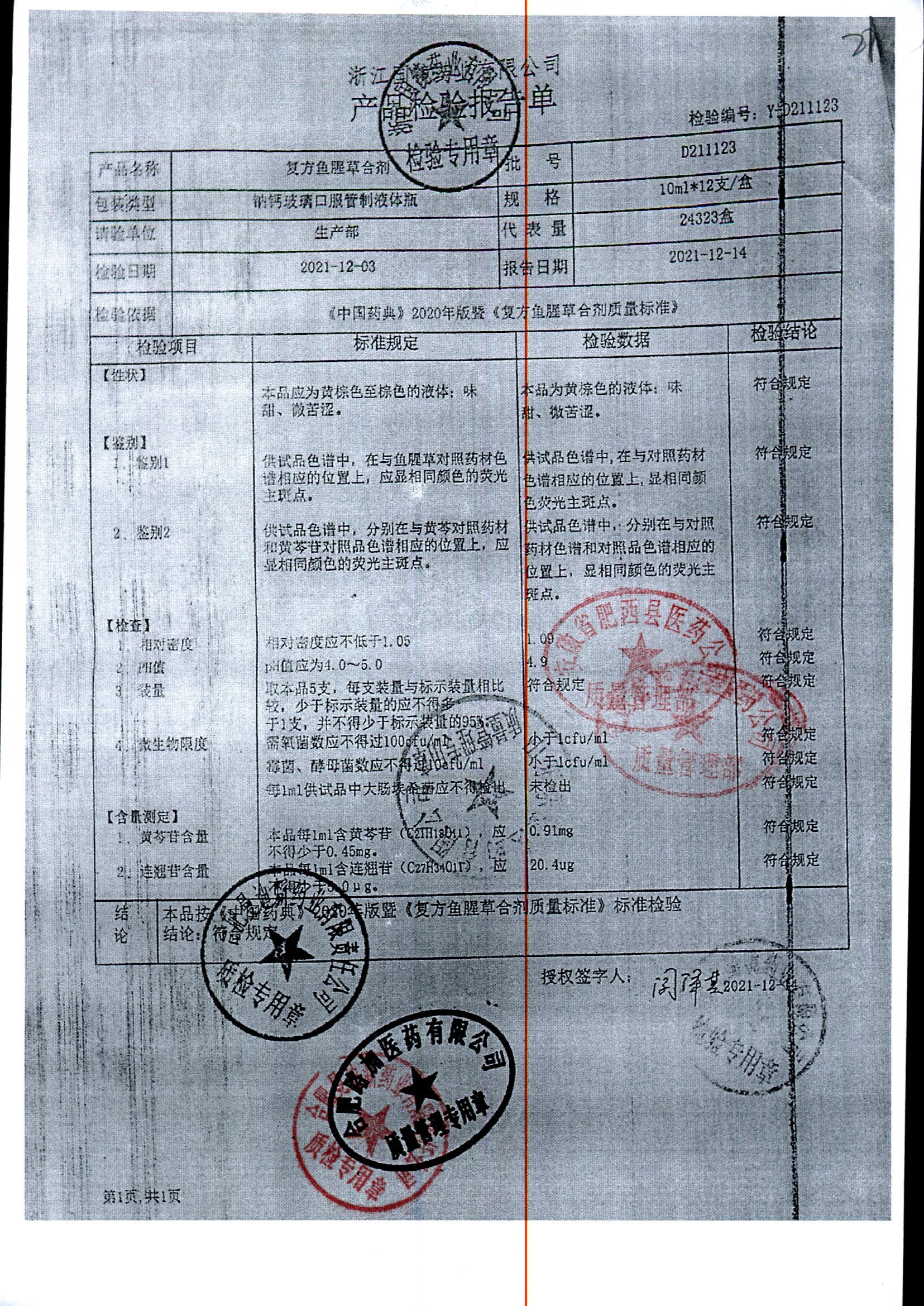 | 復(fù)方魚腥草合劑 | 10ml | D220603 | 查看詳情 |
