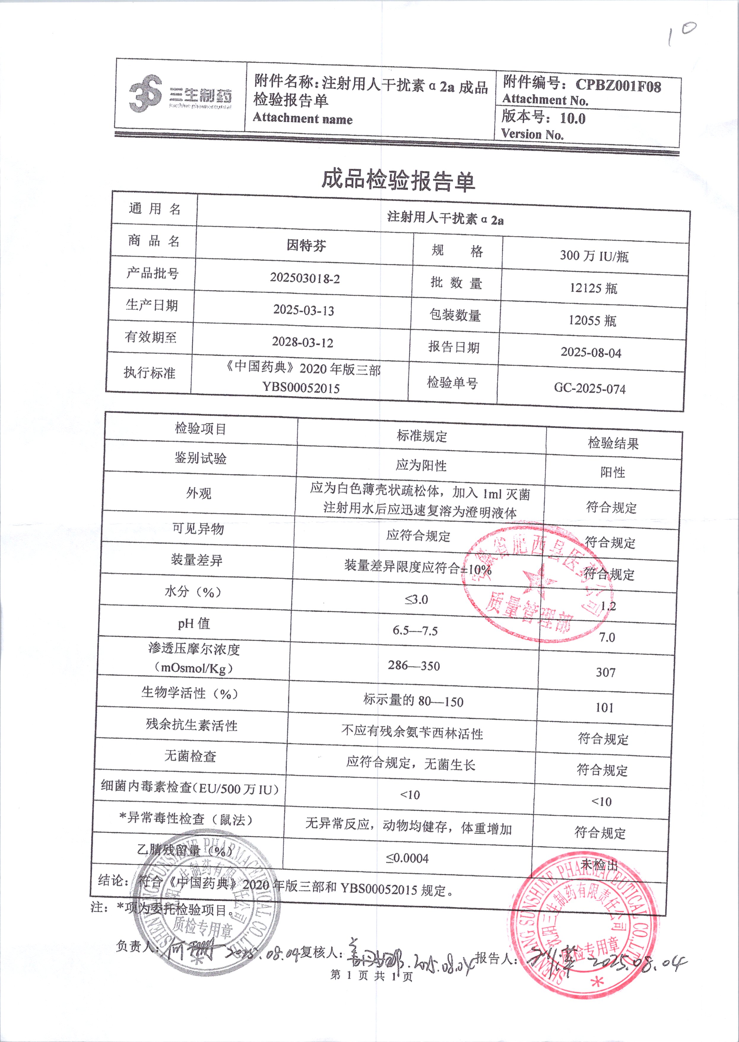 人工干擾素a2a 300萬(wàn) 202503018-2 查看詳情