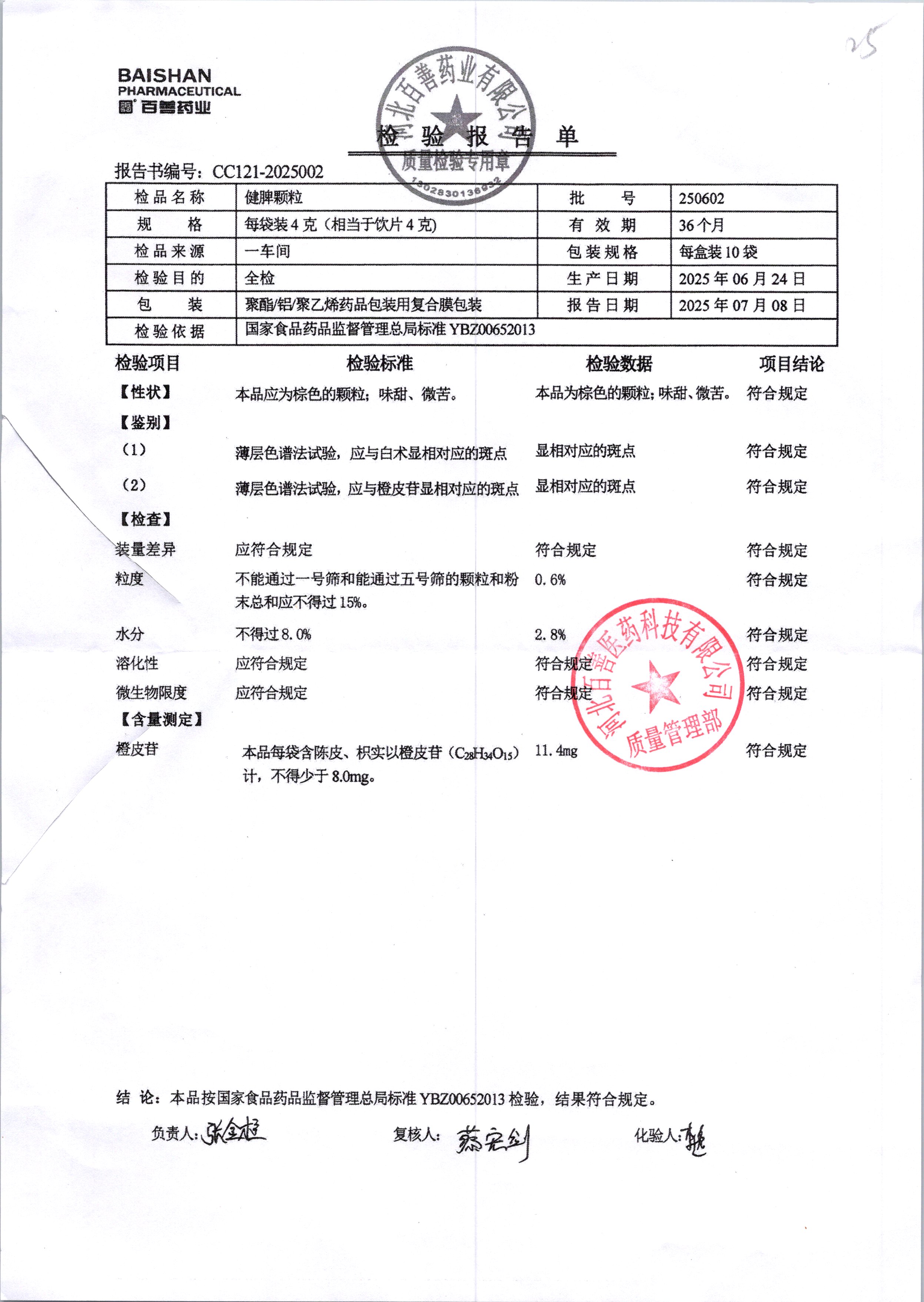 名稱 規(guī)格 批號 藥檢報告