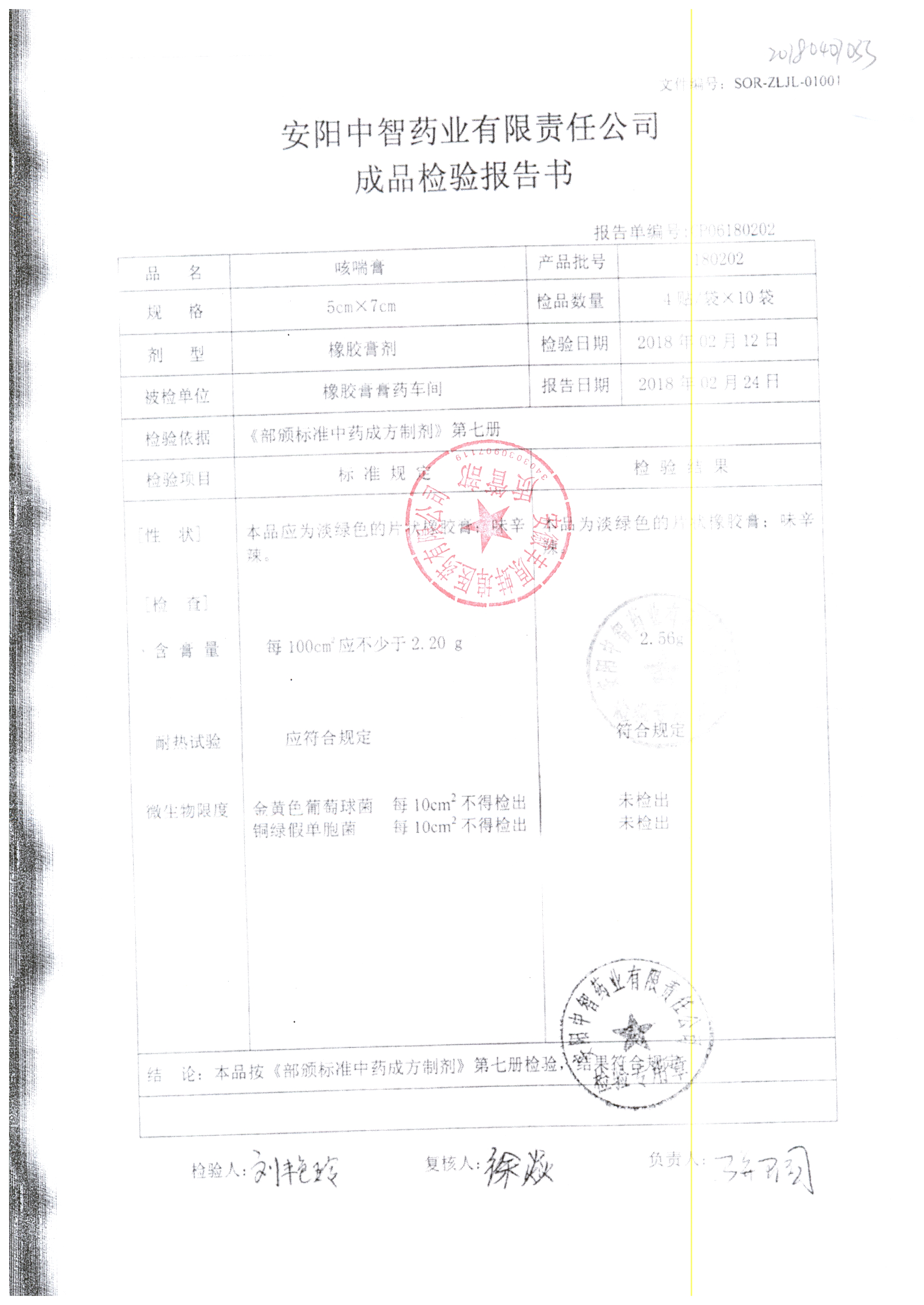 名稱(chēng) 規(guī)格 批號(hào) 藥檢報(bào)告