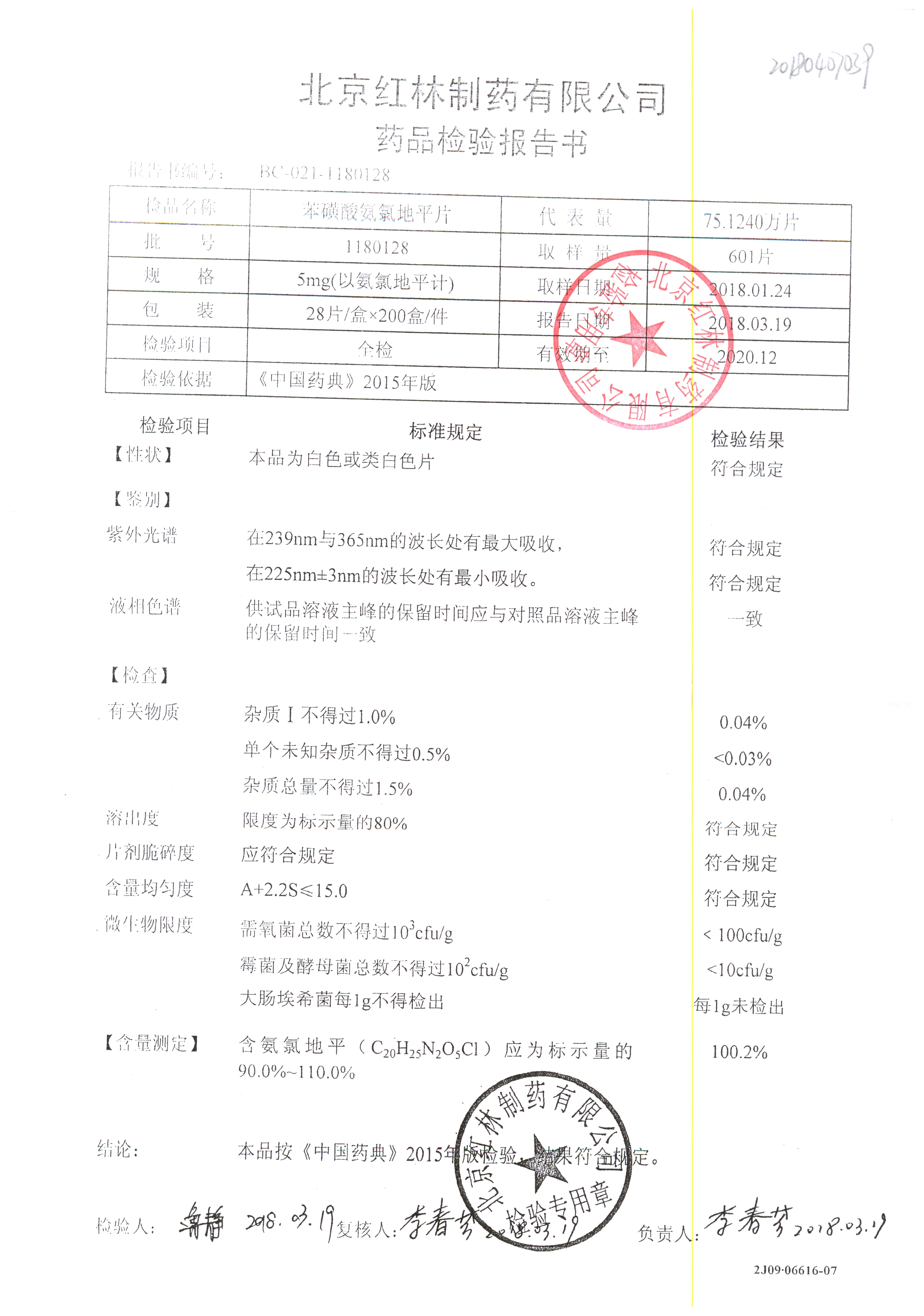 苯磺酸左旋氨氯地平片 5mg*28片 1180128 查看詳情