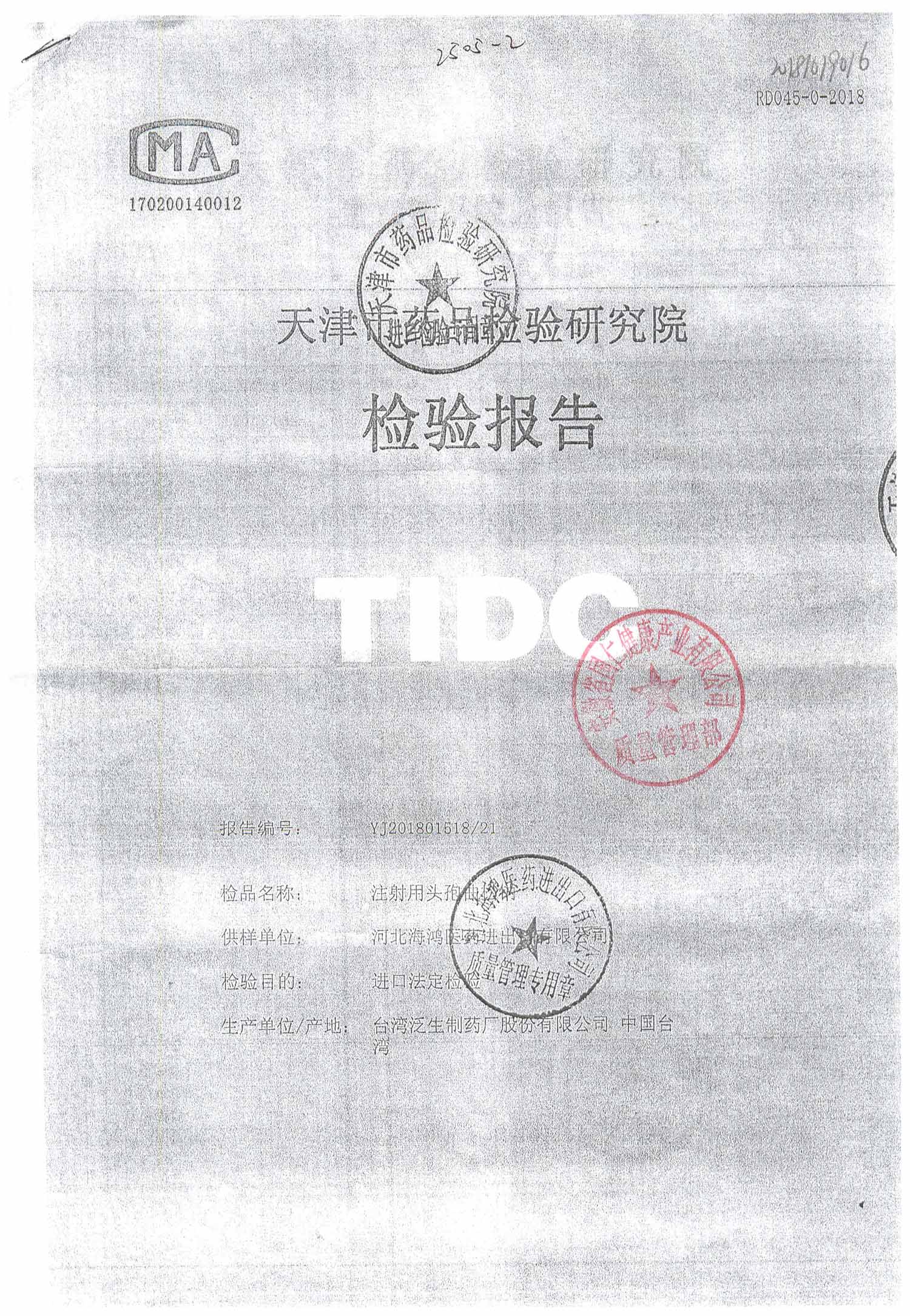 | 注射用頭孢曲松鈉 | 2.0g | 1801013(3/3) | 查看詳情 |