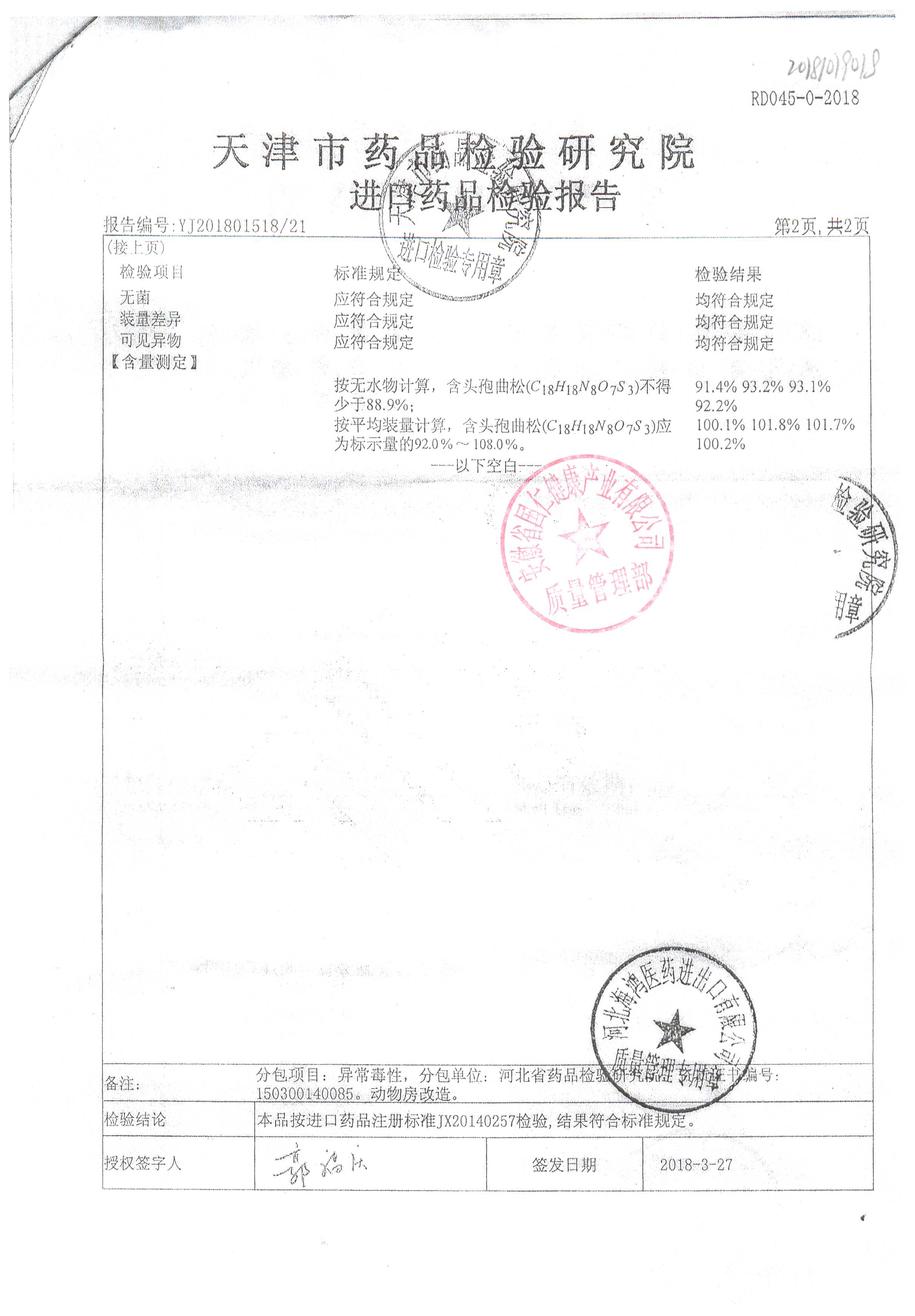 | 注射用頭孢曲松鈉 | 2.0g | 1801013(2/3) | 查看詳情 |