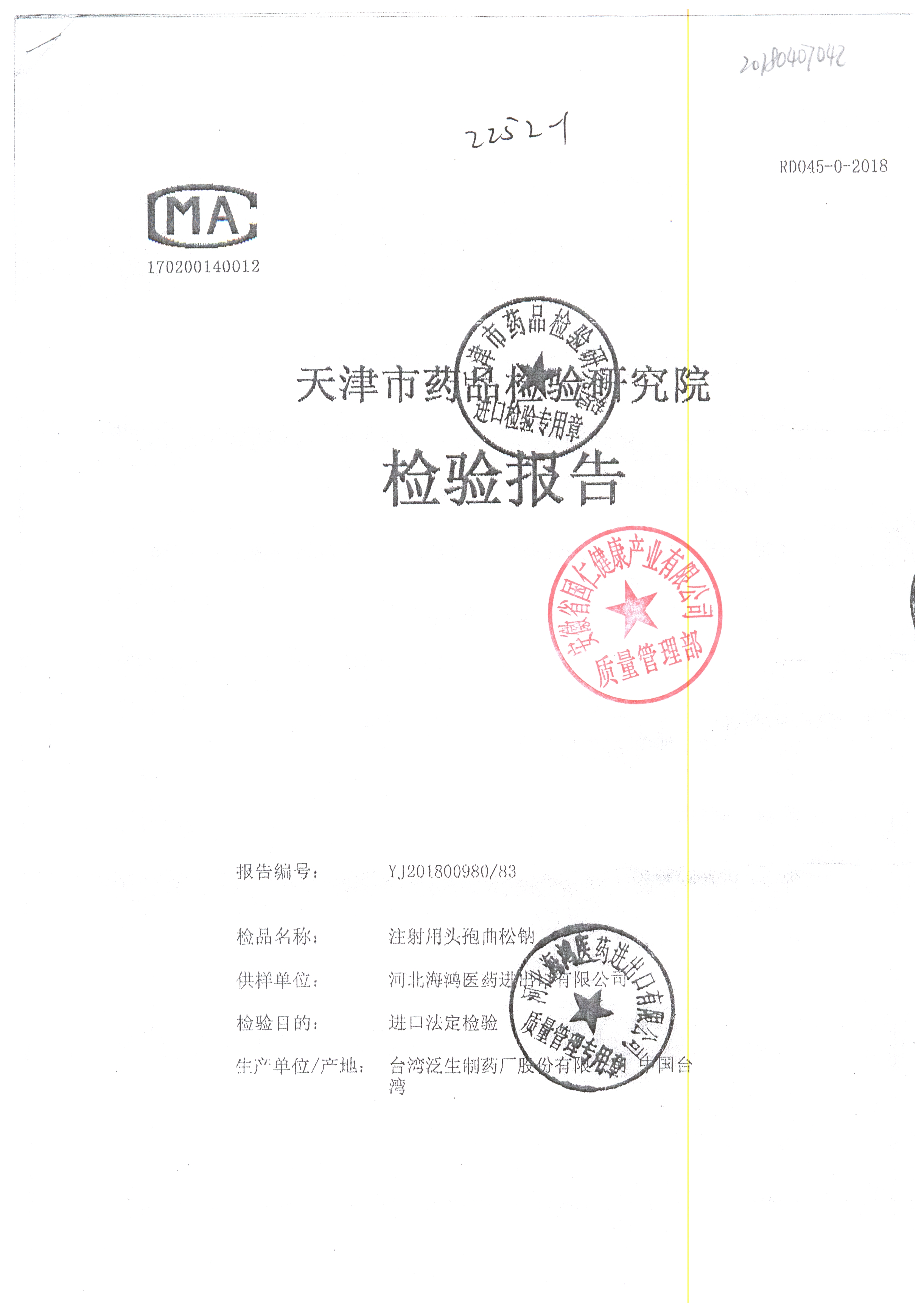 | 名稱(chēng) | 規(guī)格 | 批號(hào) | 藥檢報(bào)告 |