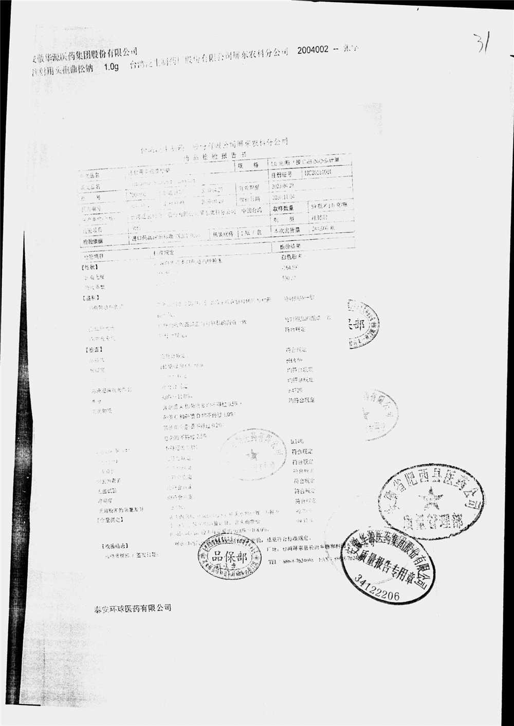 | 注射用頭孢曲松鈉 | 2.0g | 2004003(3/4) | 查看詳情 |