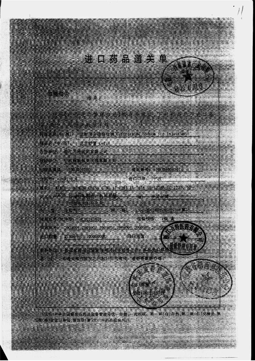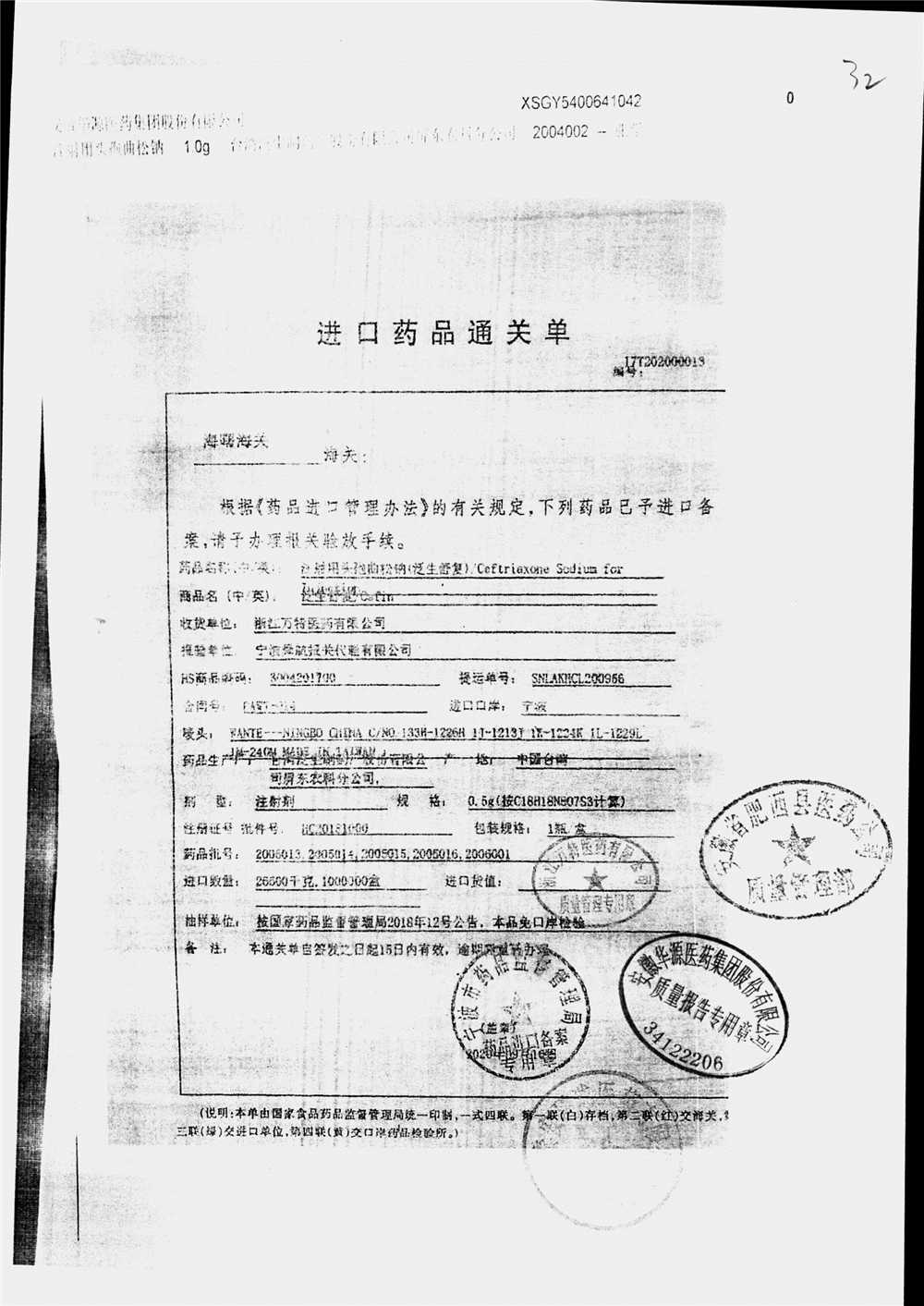 | 注射用頭孢曲松鈉 | 2.0g | 2004003(2/4) | 查看詳情 |