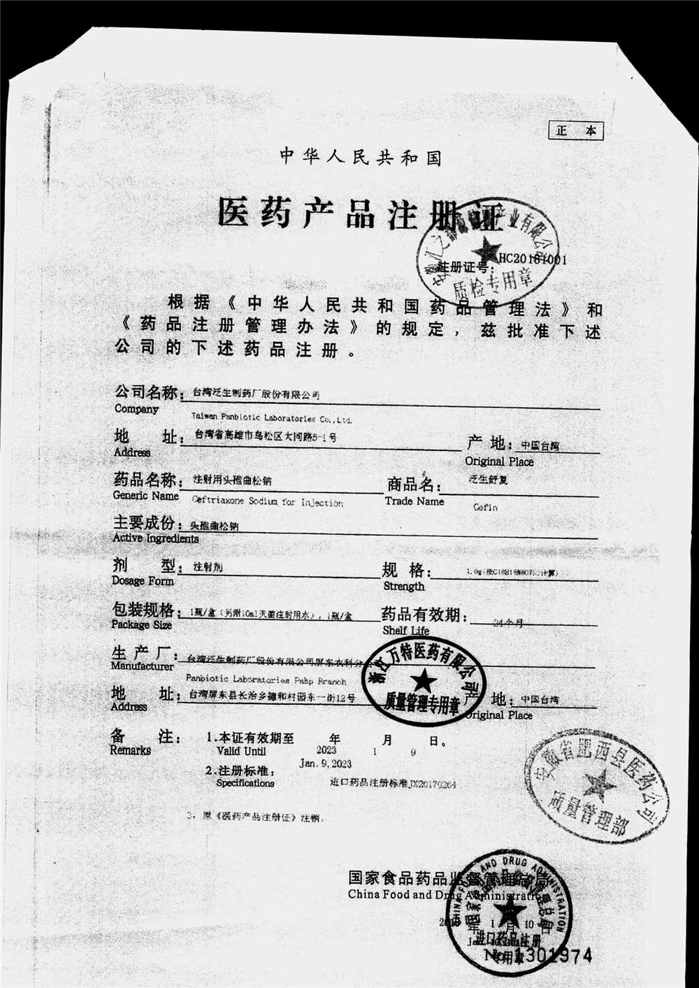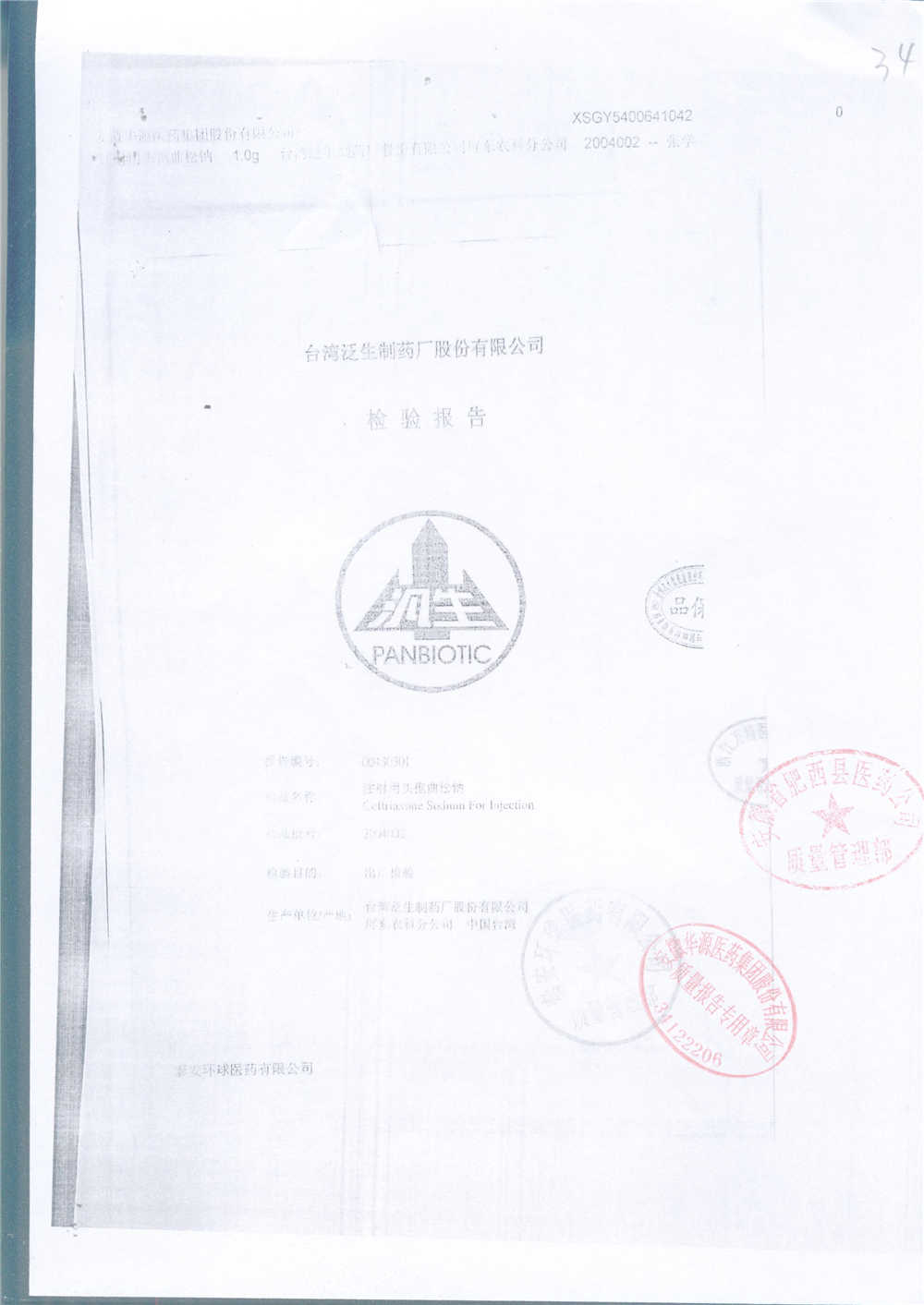 | 注射用頭孢曲松鈉 | 2.0g | 2005005(3/4) | 查看詳情 |