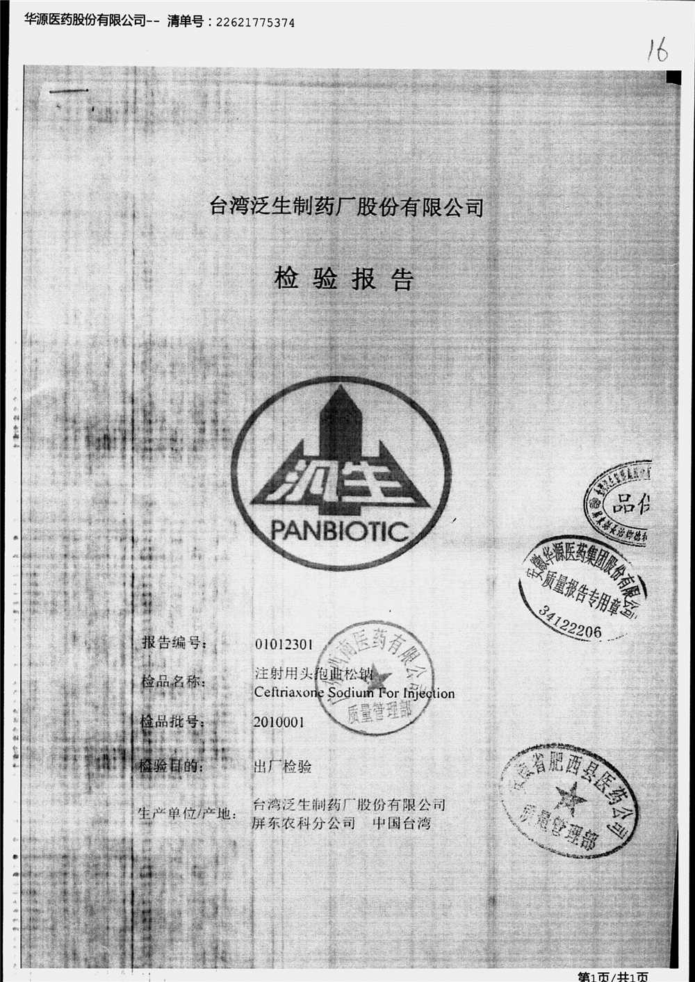 | 注射用頭孢曲松鈉 | 2.0g | 2010001(4/4) | 查看詳情 |