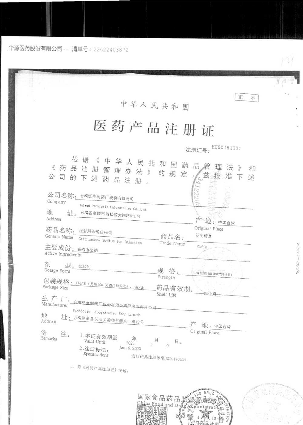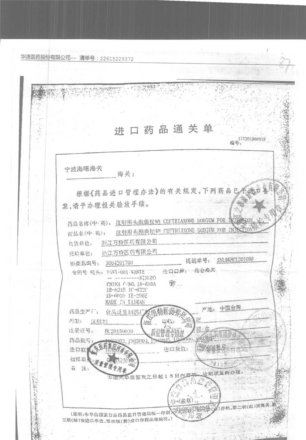 | 注射用頭孢曲松鈉 | 2.0g | 2005005(4/4) | 查看詳情 |