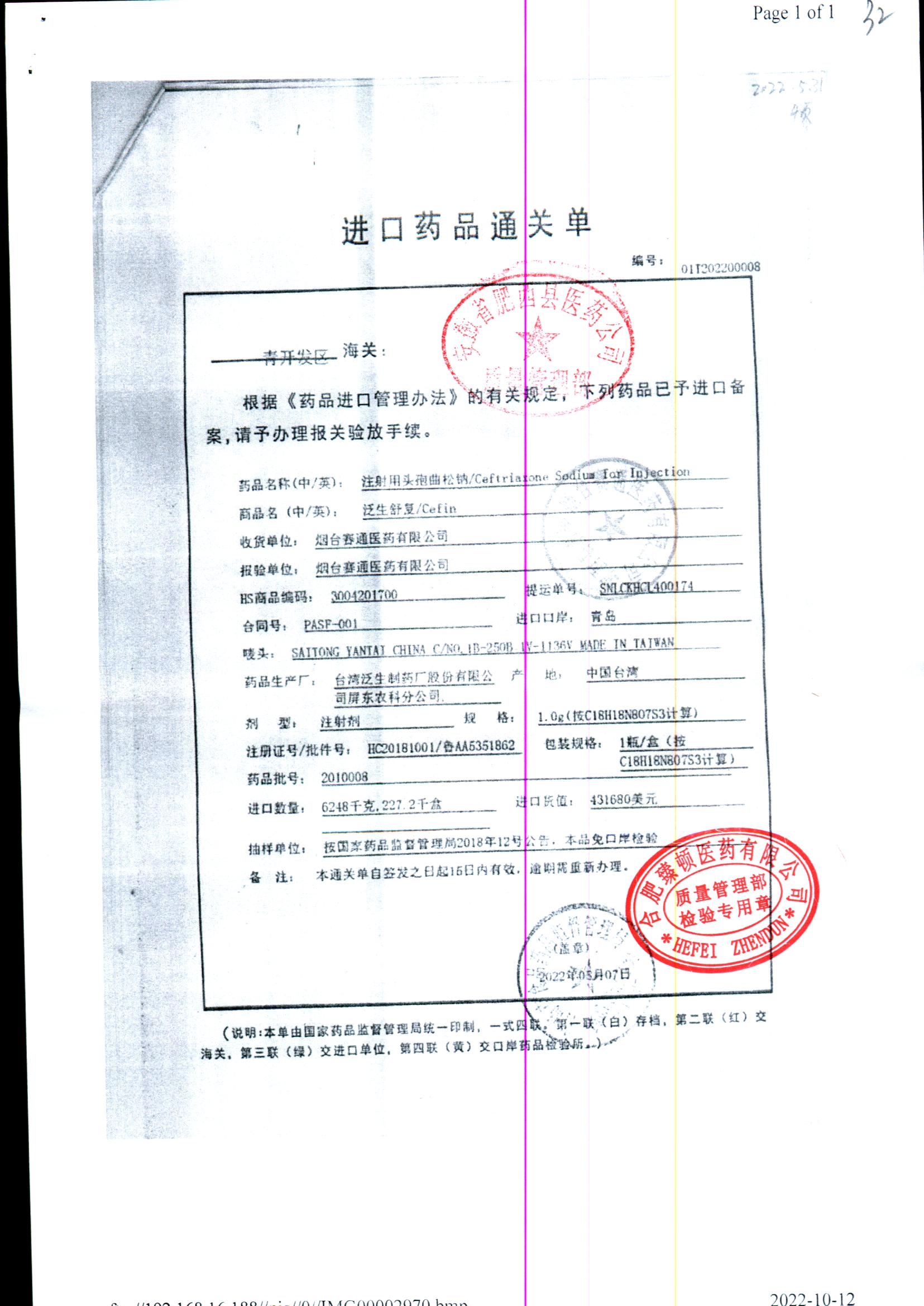 | 注射用頭孢曲松鈉 | 2.0g | 2010001(2/4) | 查看詳情 |