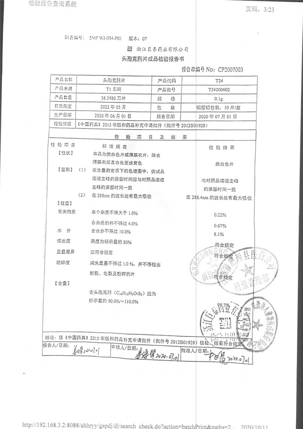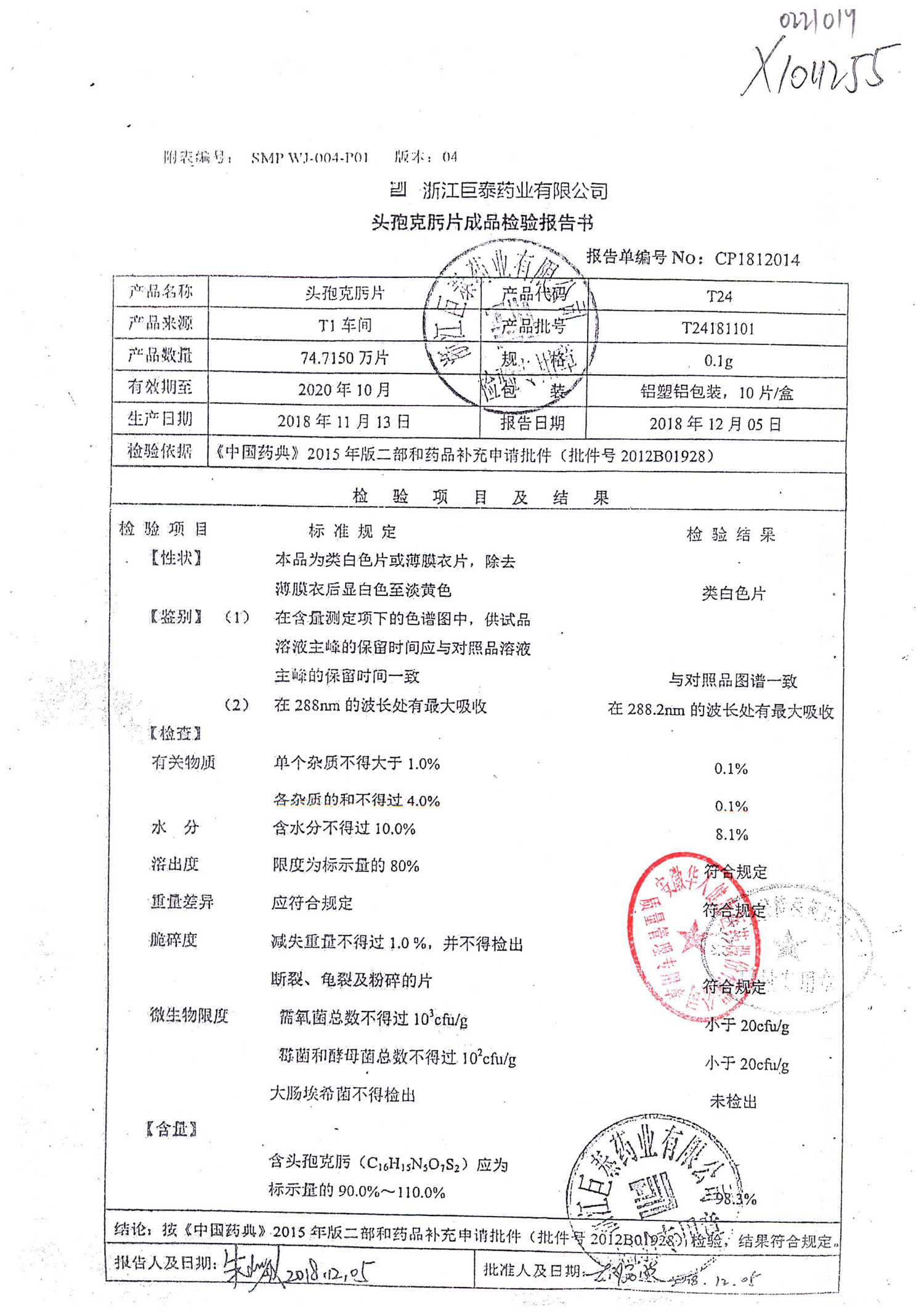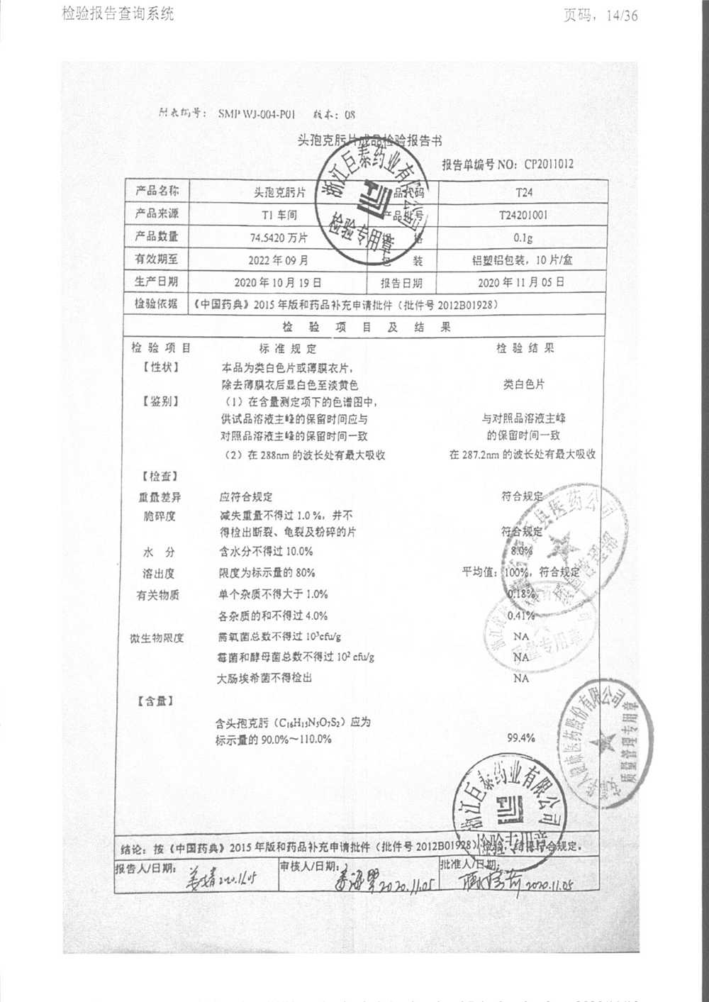 | 頭孢克肟片 | 0.1g*10s | T24181101 | 查看詳情 |