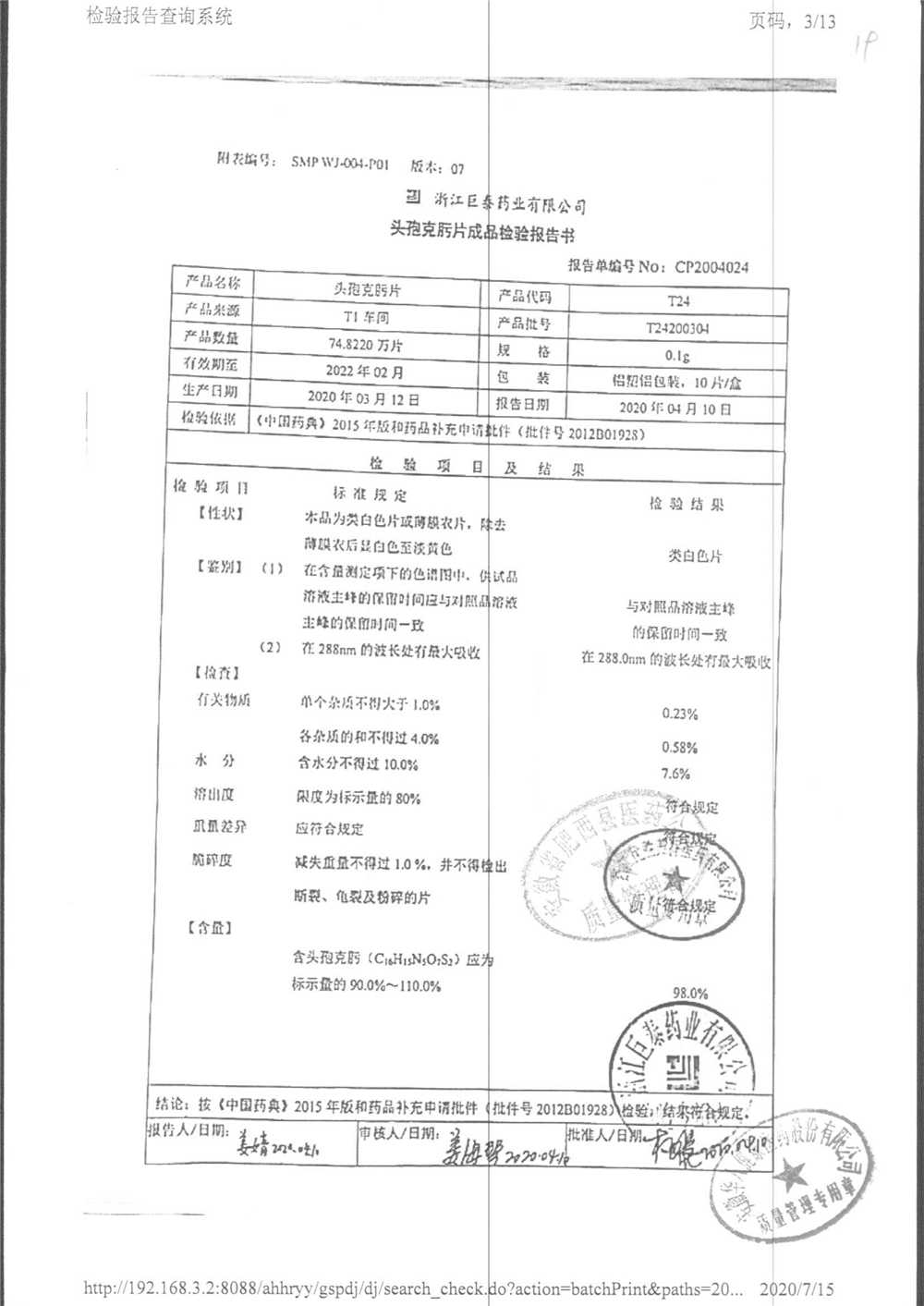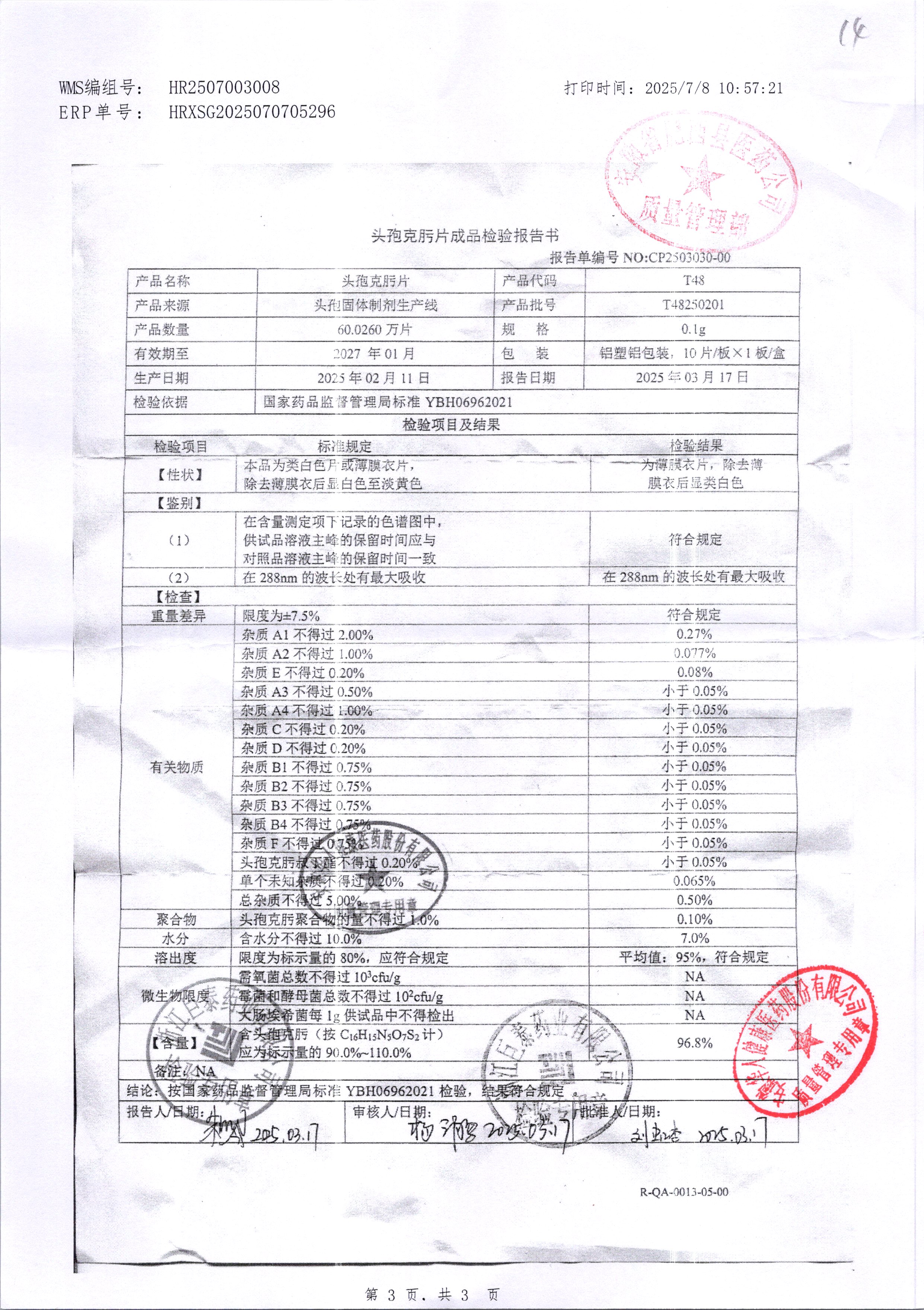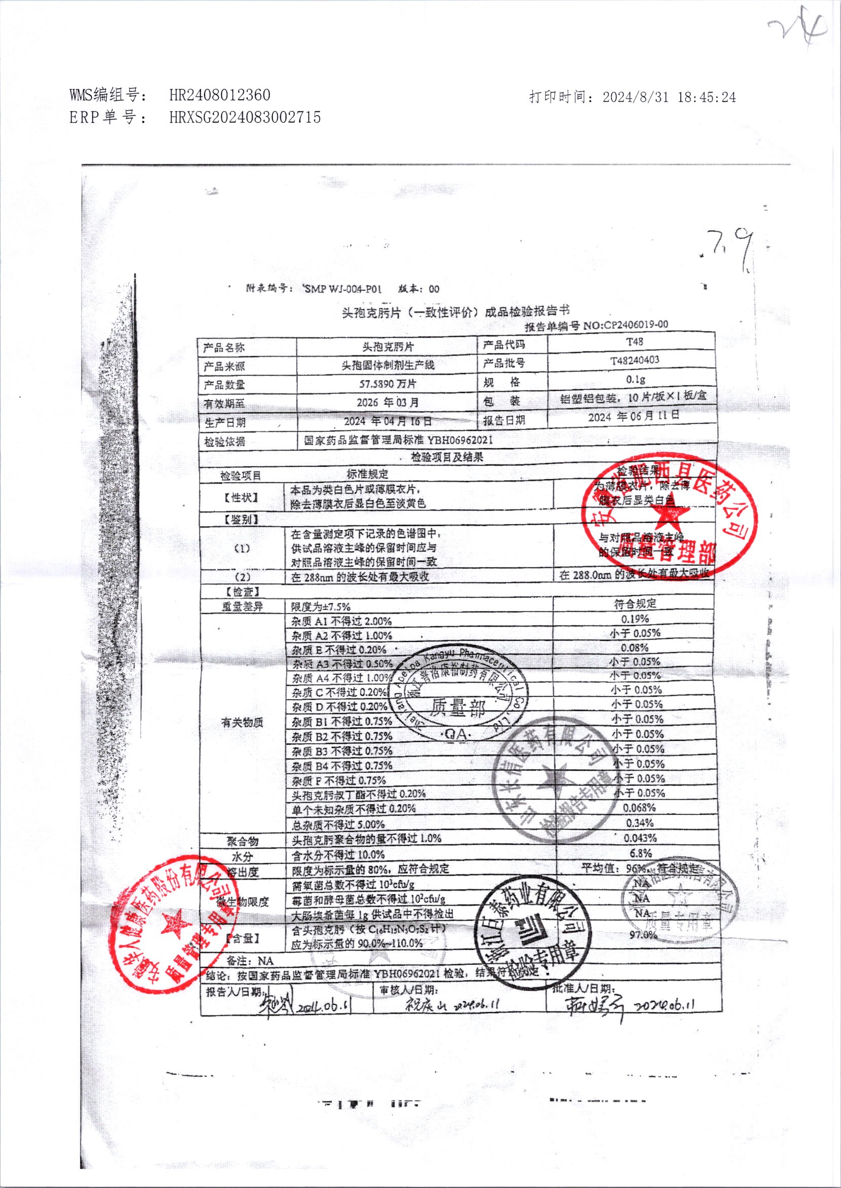 | 頭孢克肟片 | 0.1g*10s | T24200201 | 查看詳情 |
