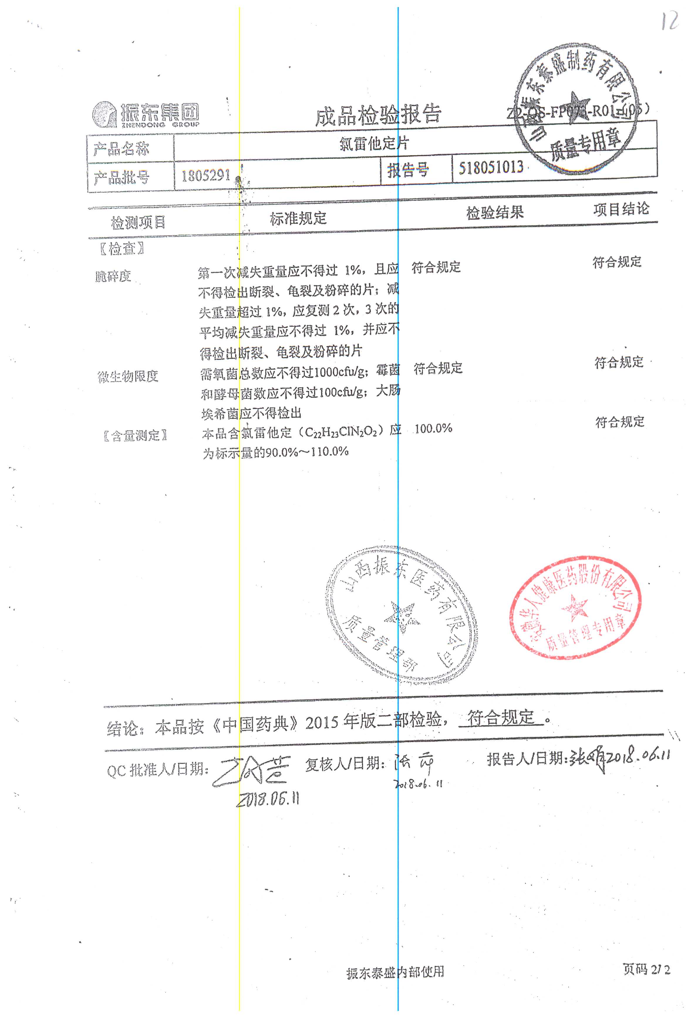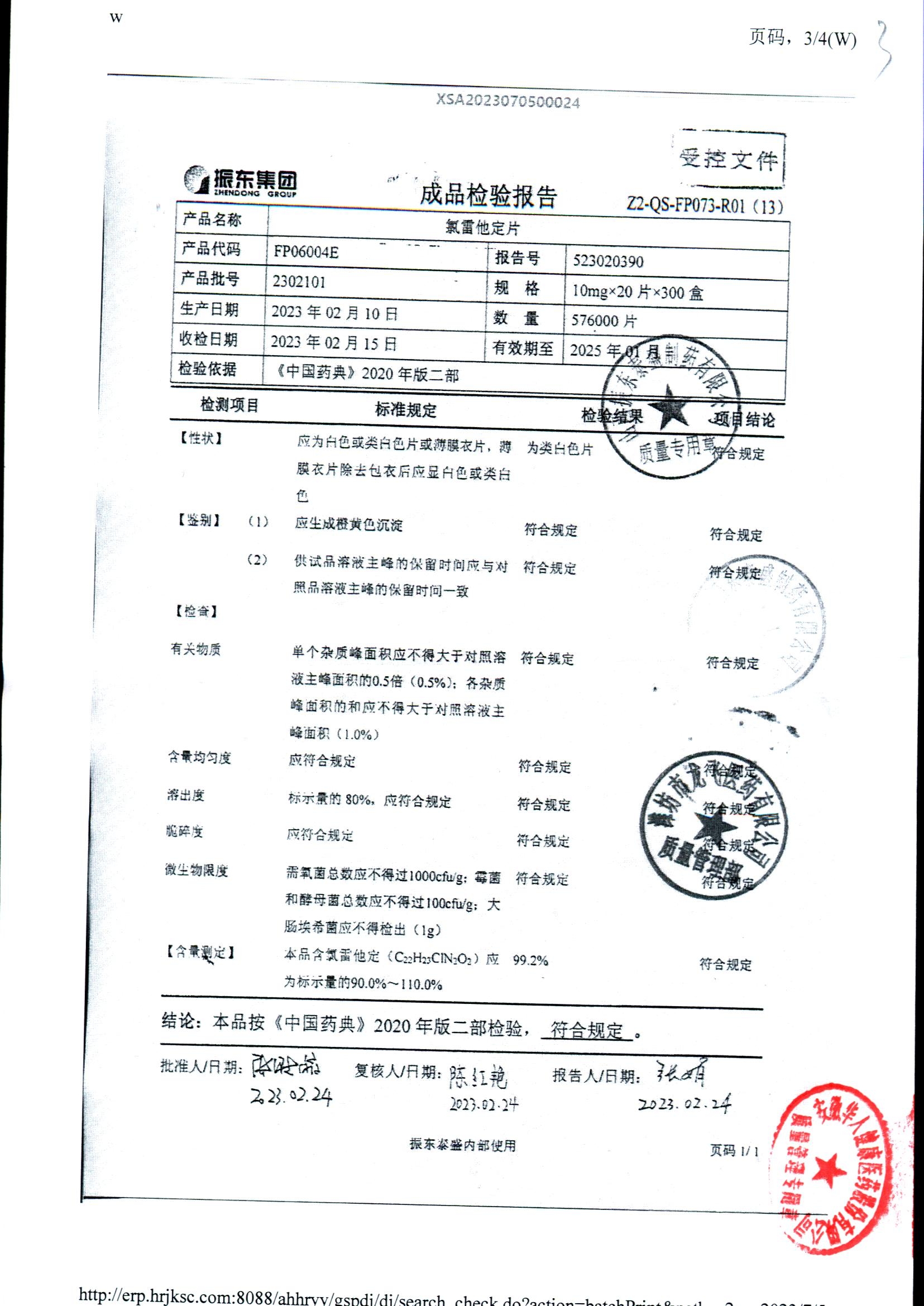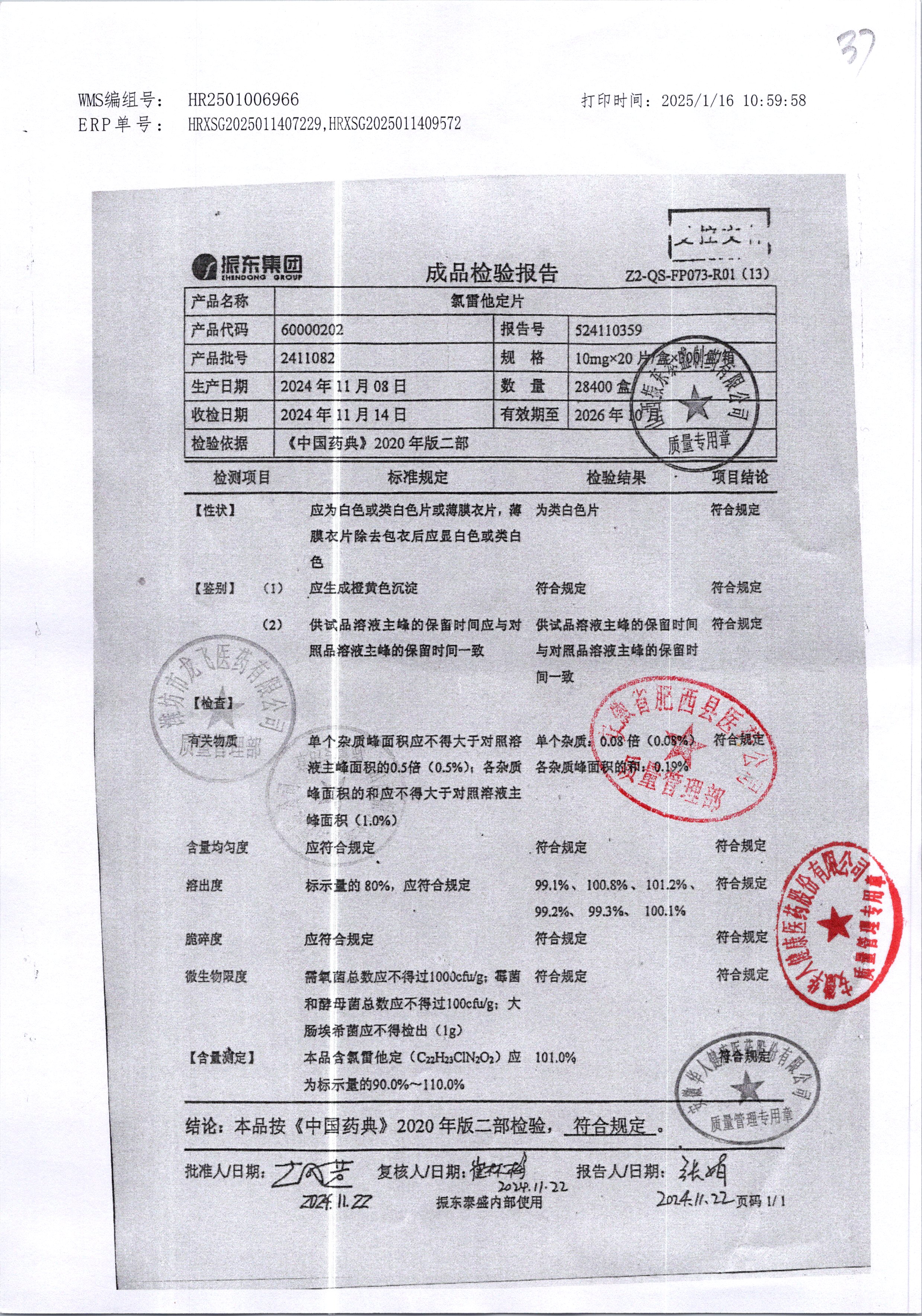 | 氯雷他定片 | 10mg*20s | 1809111(2/2) | 查看詳情 |