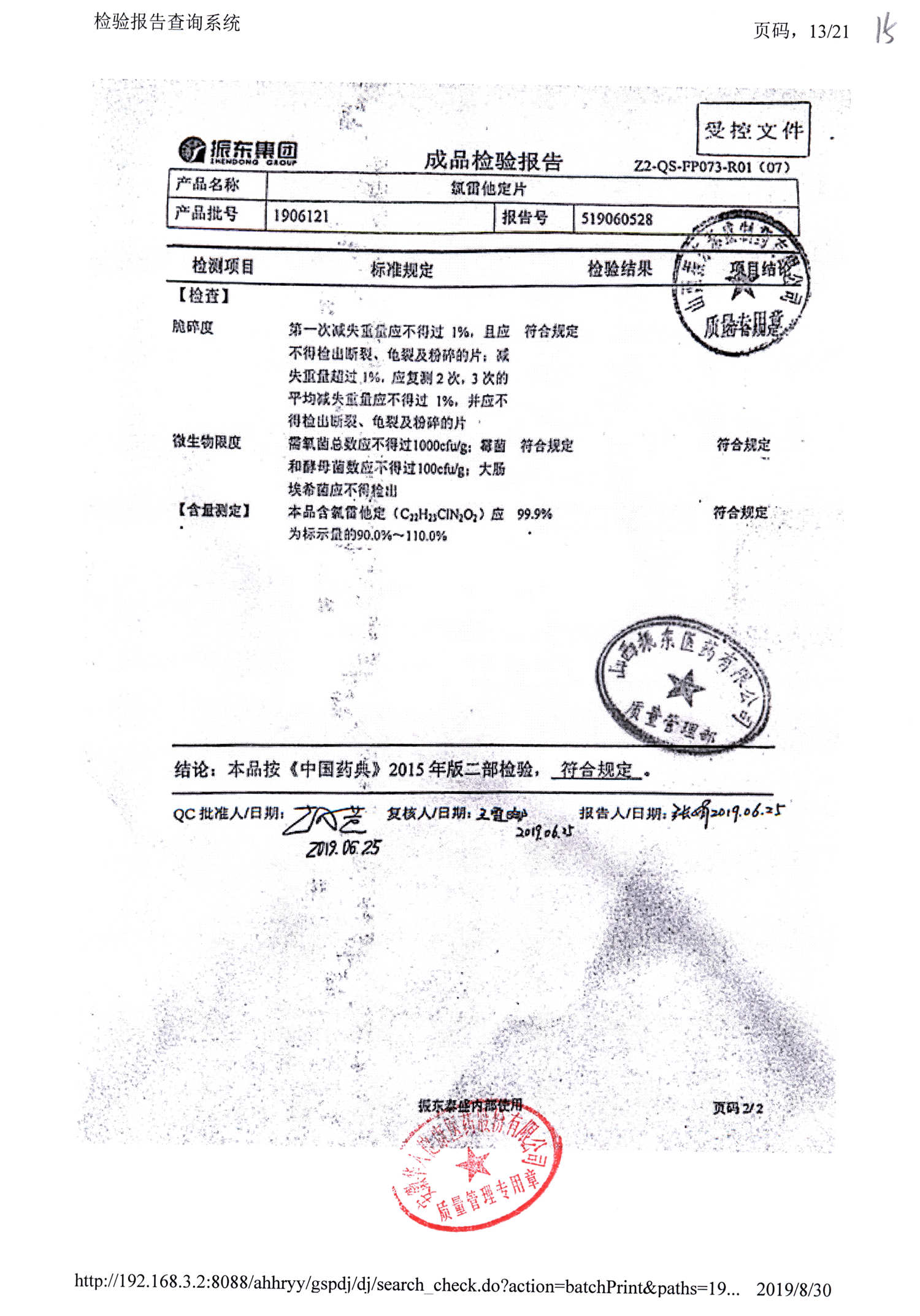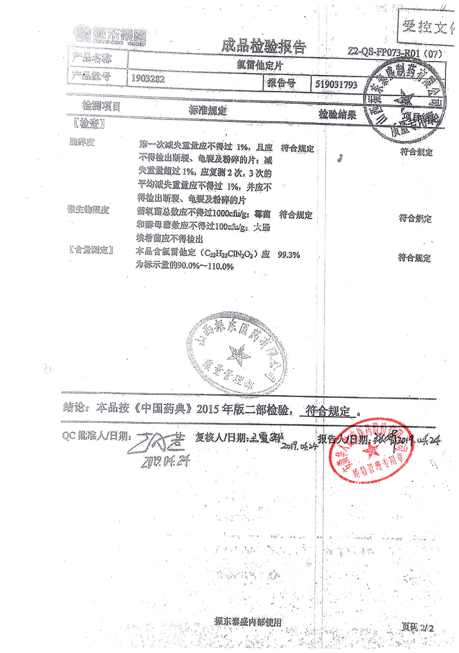 | 氯雷他定片 | 10mg*20s | 1906121(2/2) | 查看詳情 |