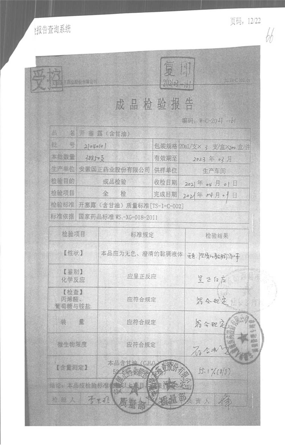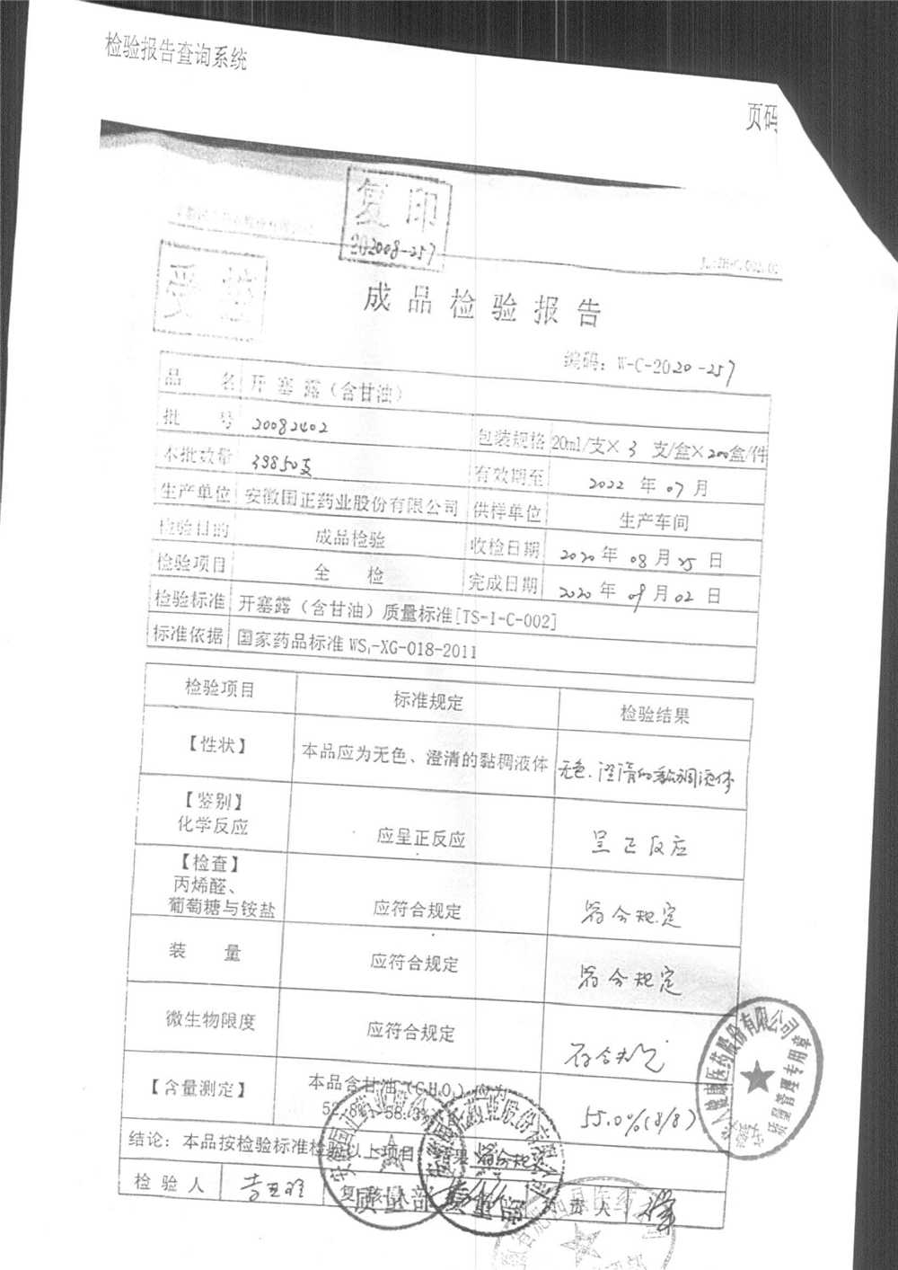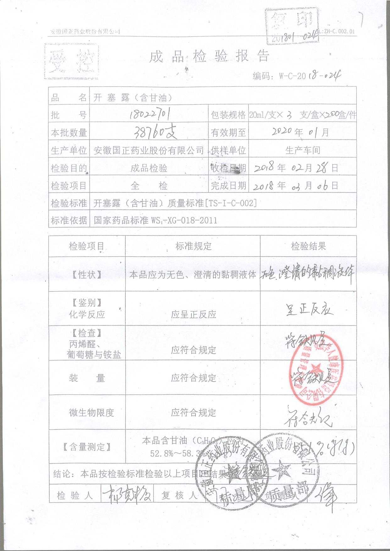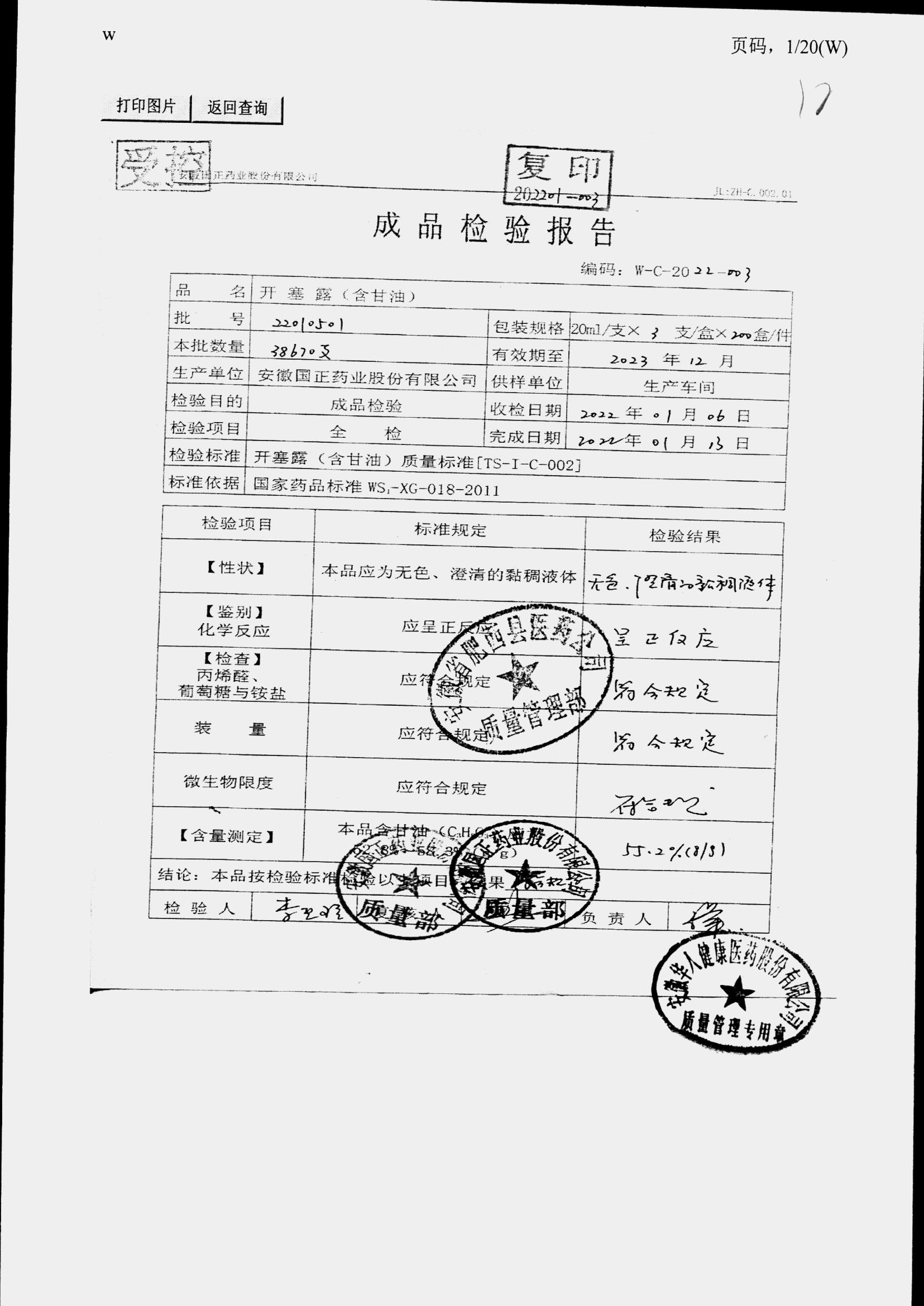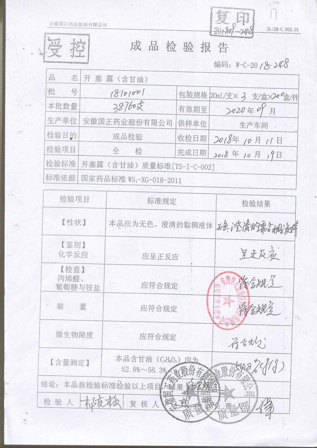 | 名稱 | 規(guī)格 | 批號(hào) | 藥檢報(bào)告 |