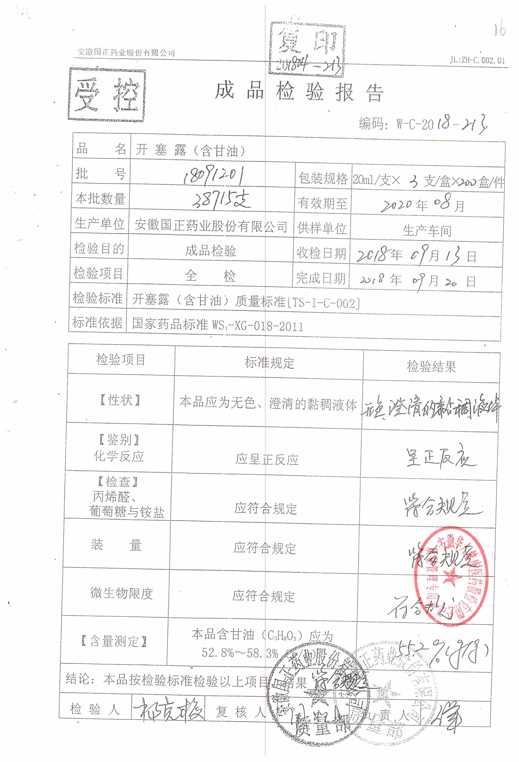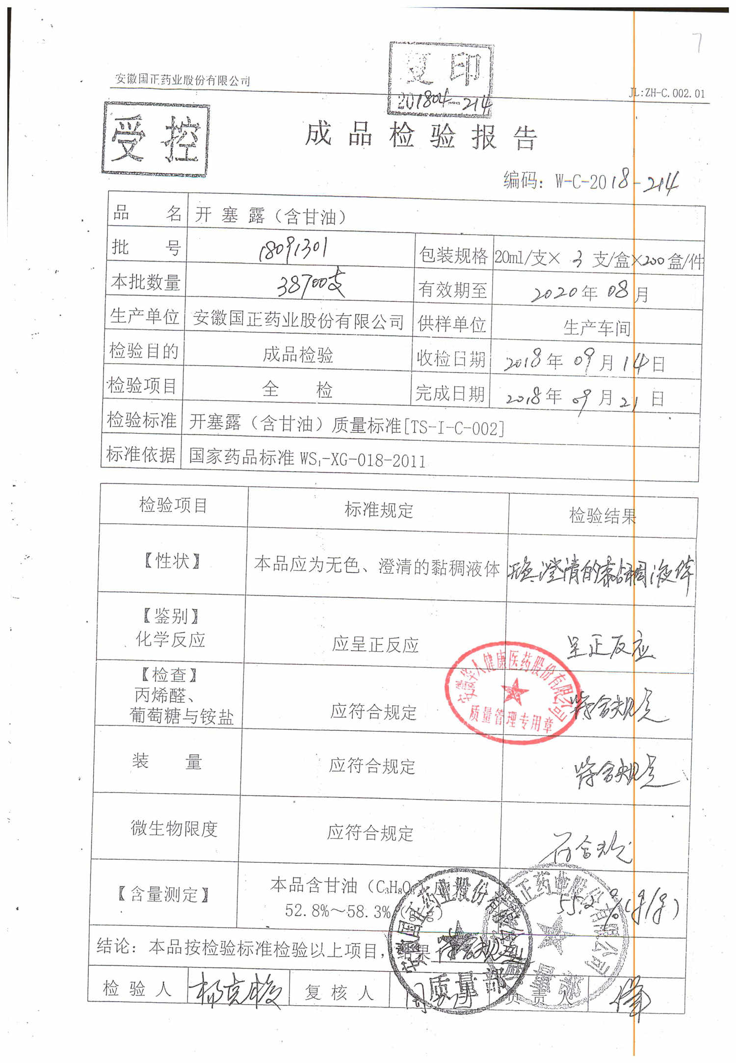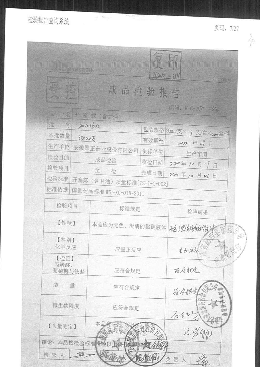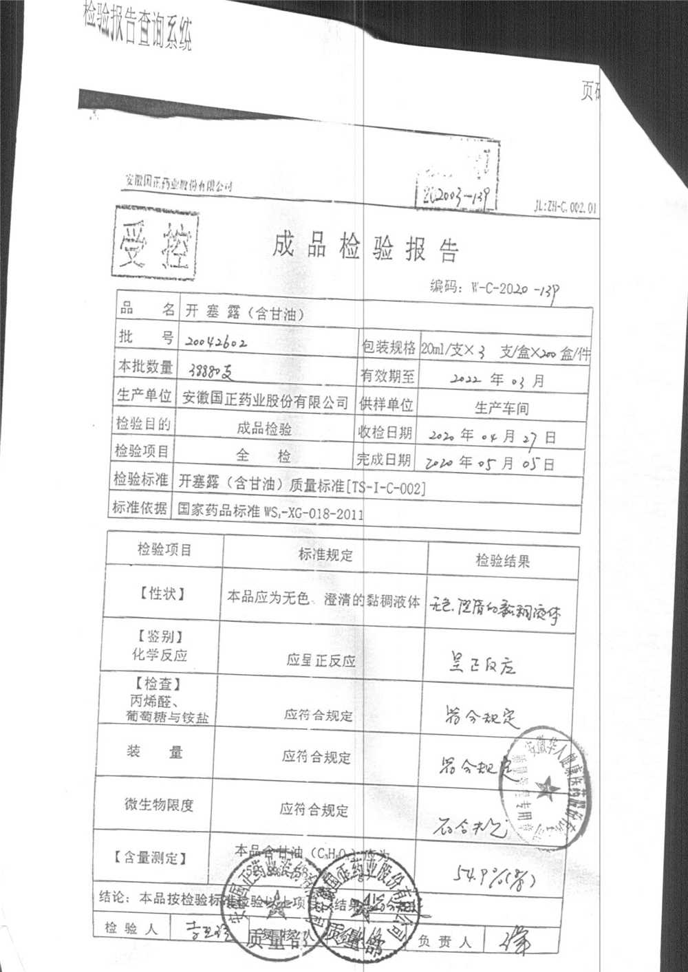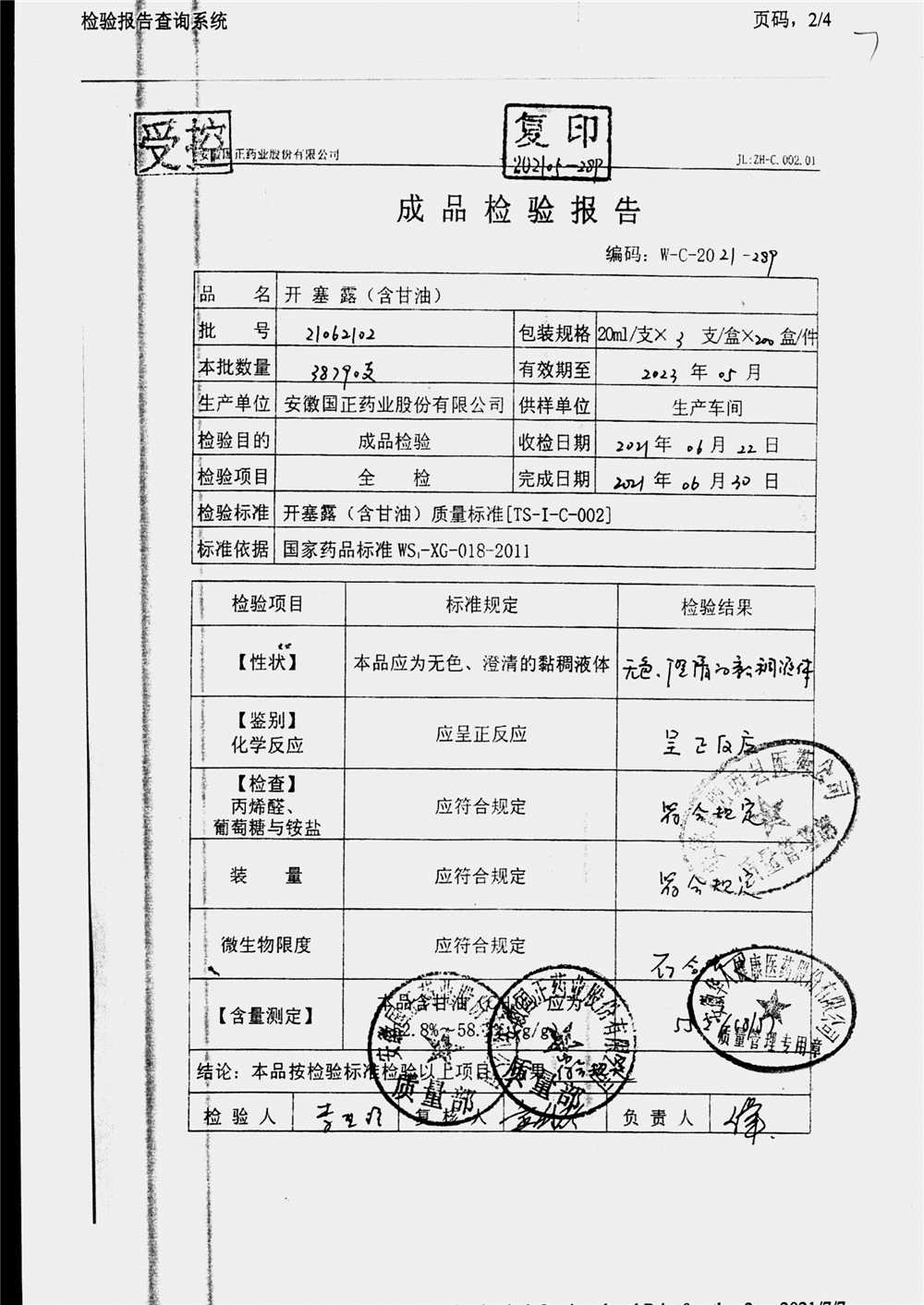 | 名稱 | 規(guī)格 | 批號(hào) | 藥檢報(bào)告 |