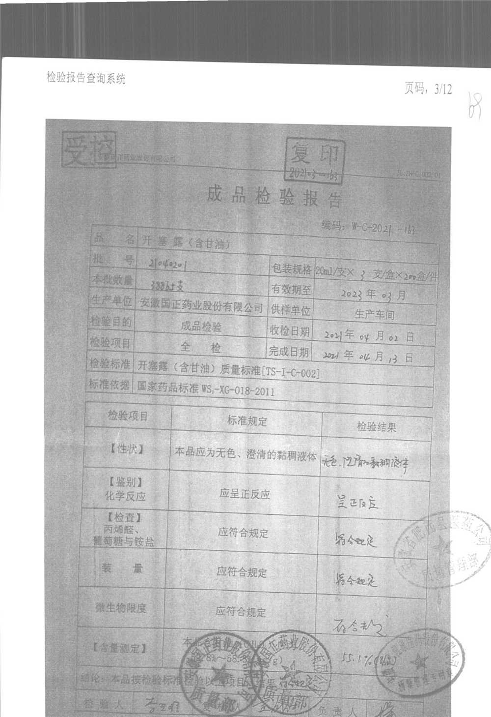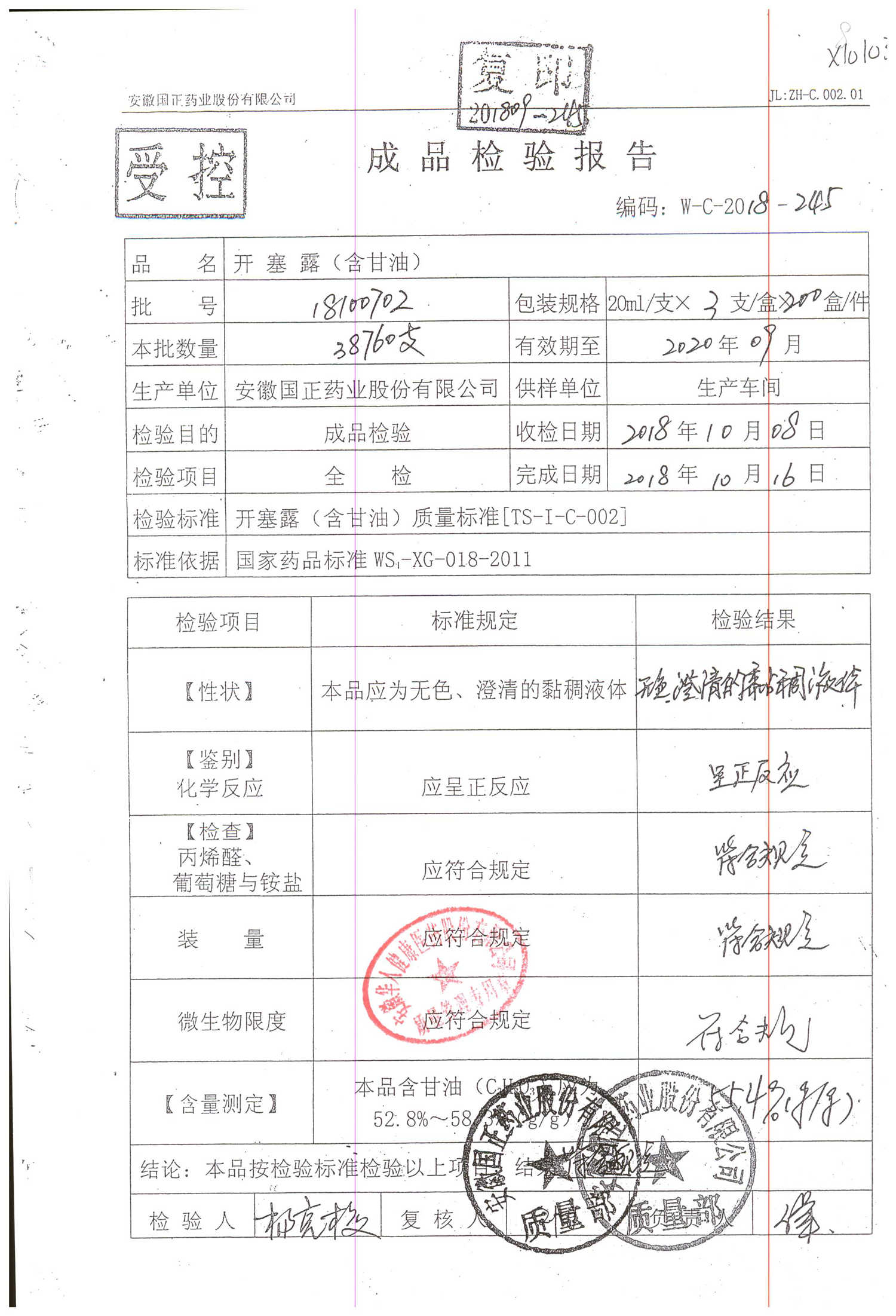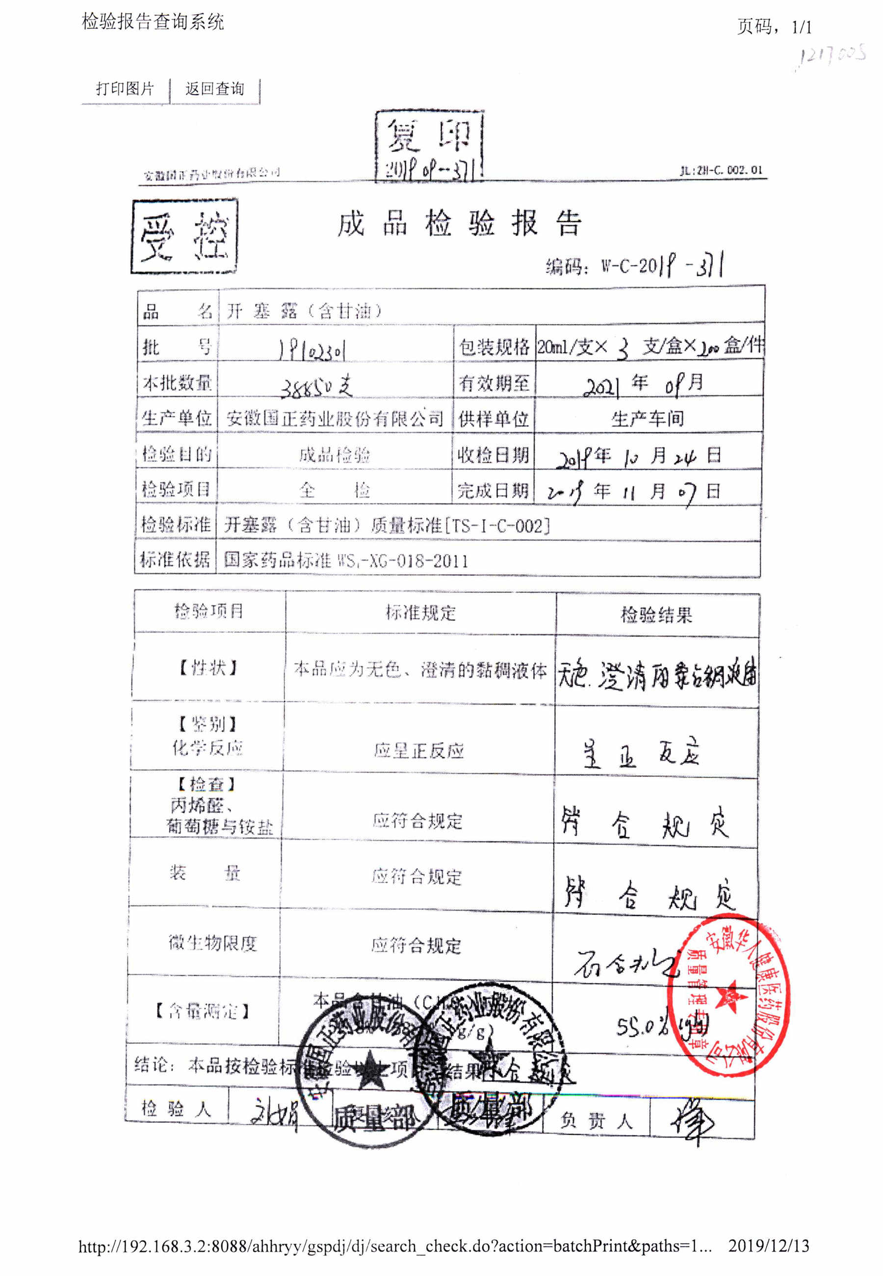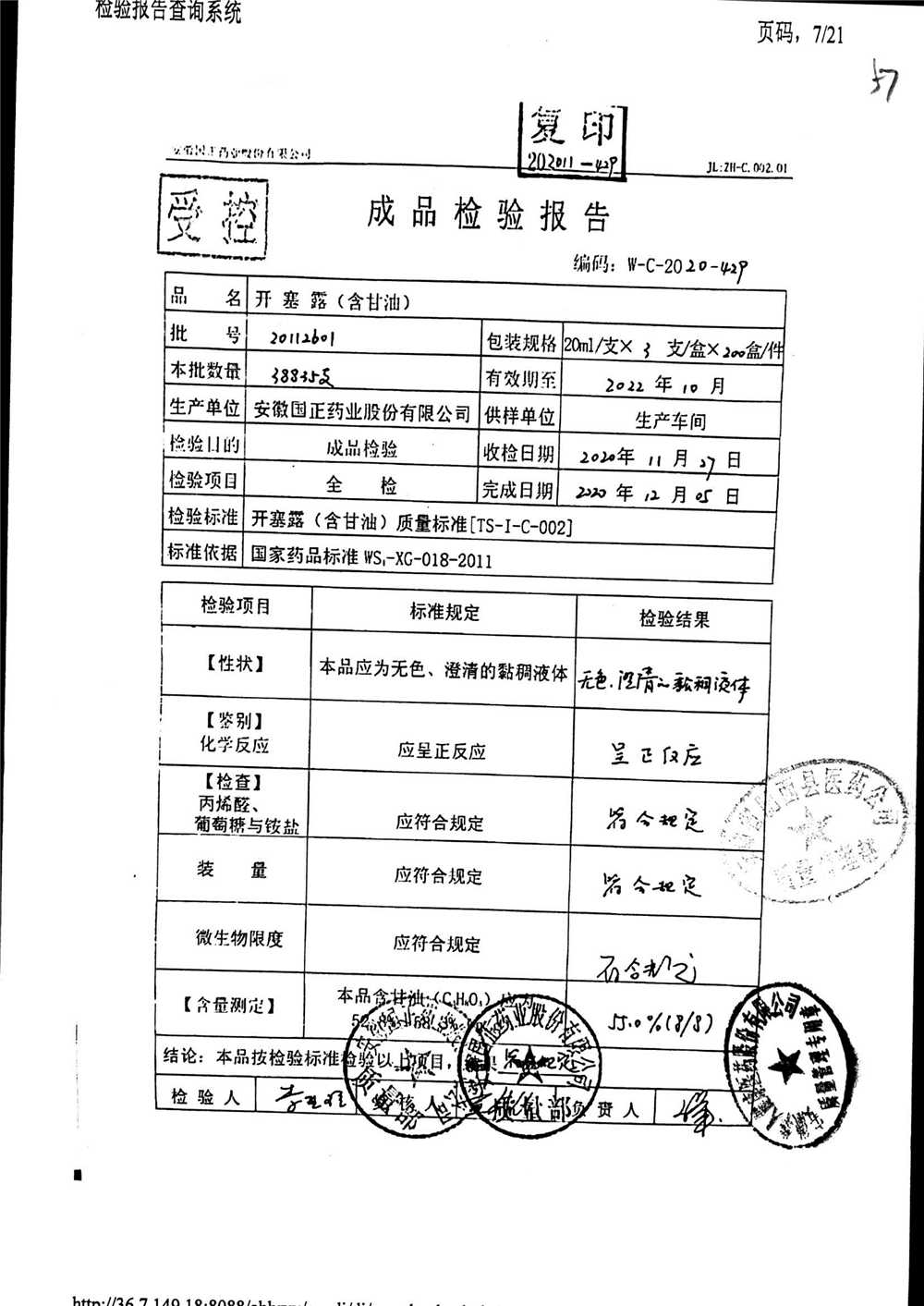 | 名稱 | 規(guī)格 | 批號(hào) | 藥檢報(bào)告 |