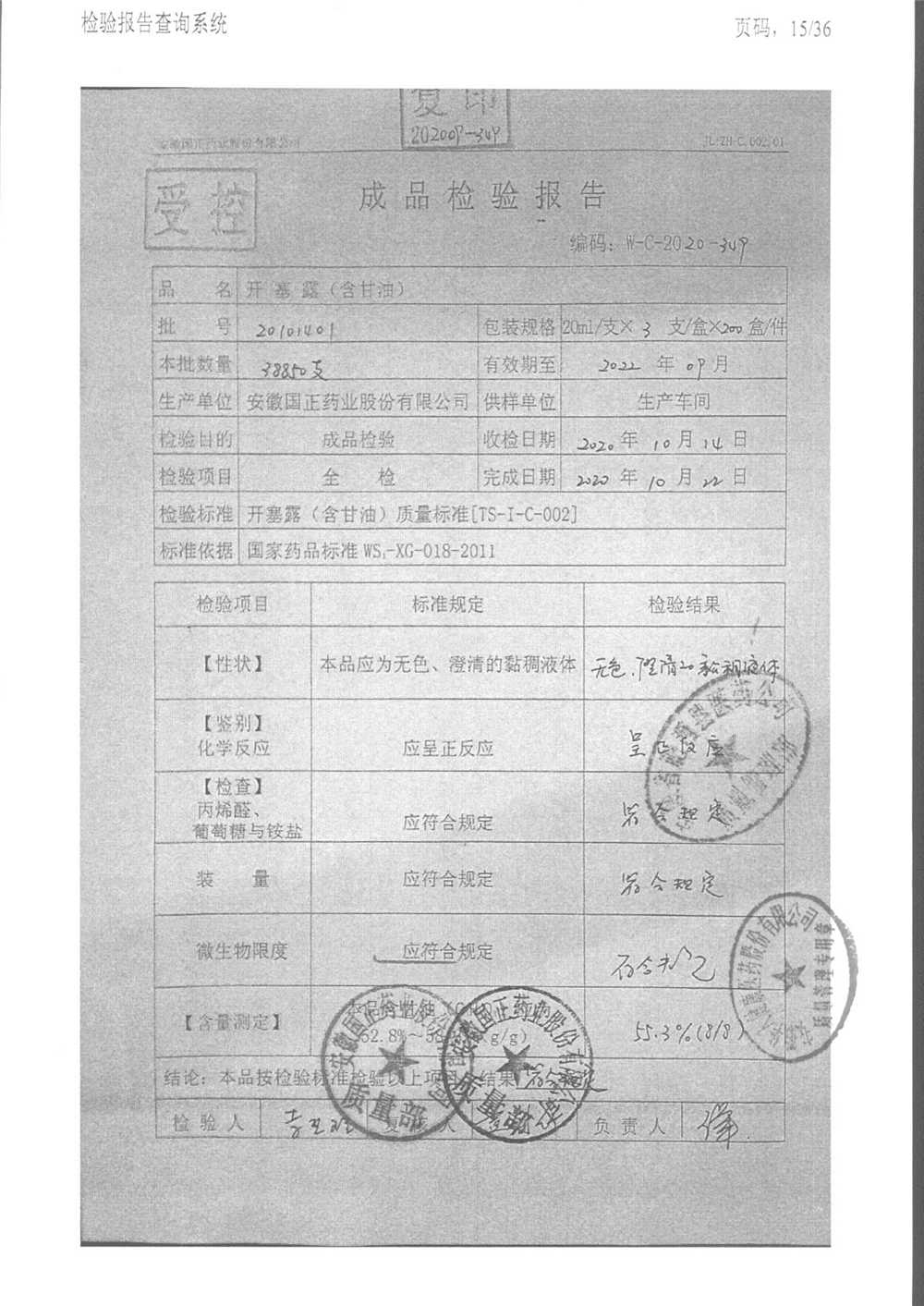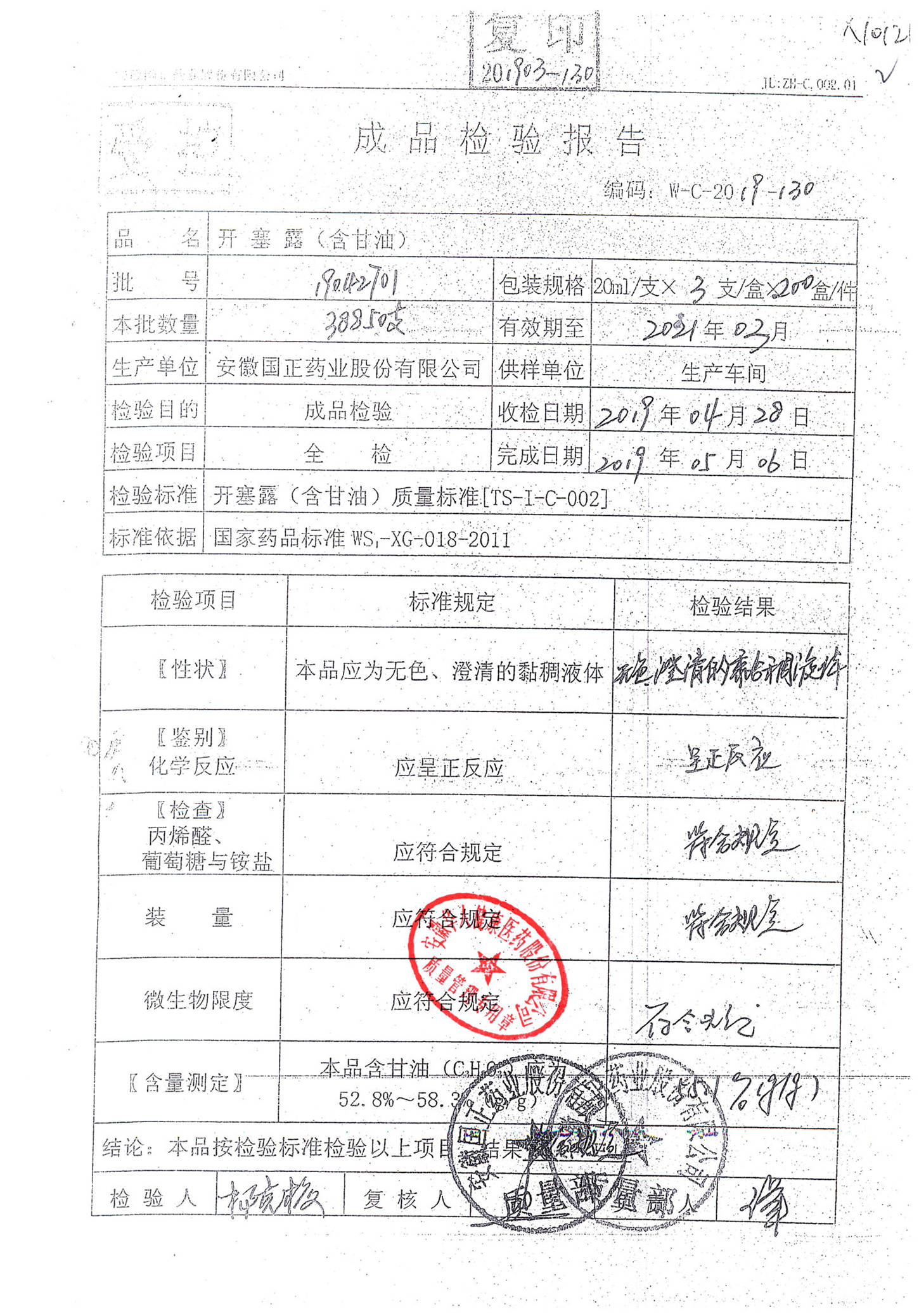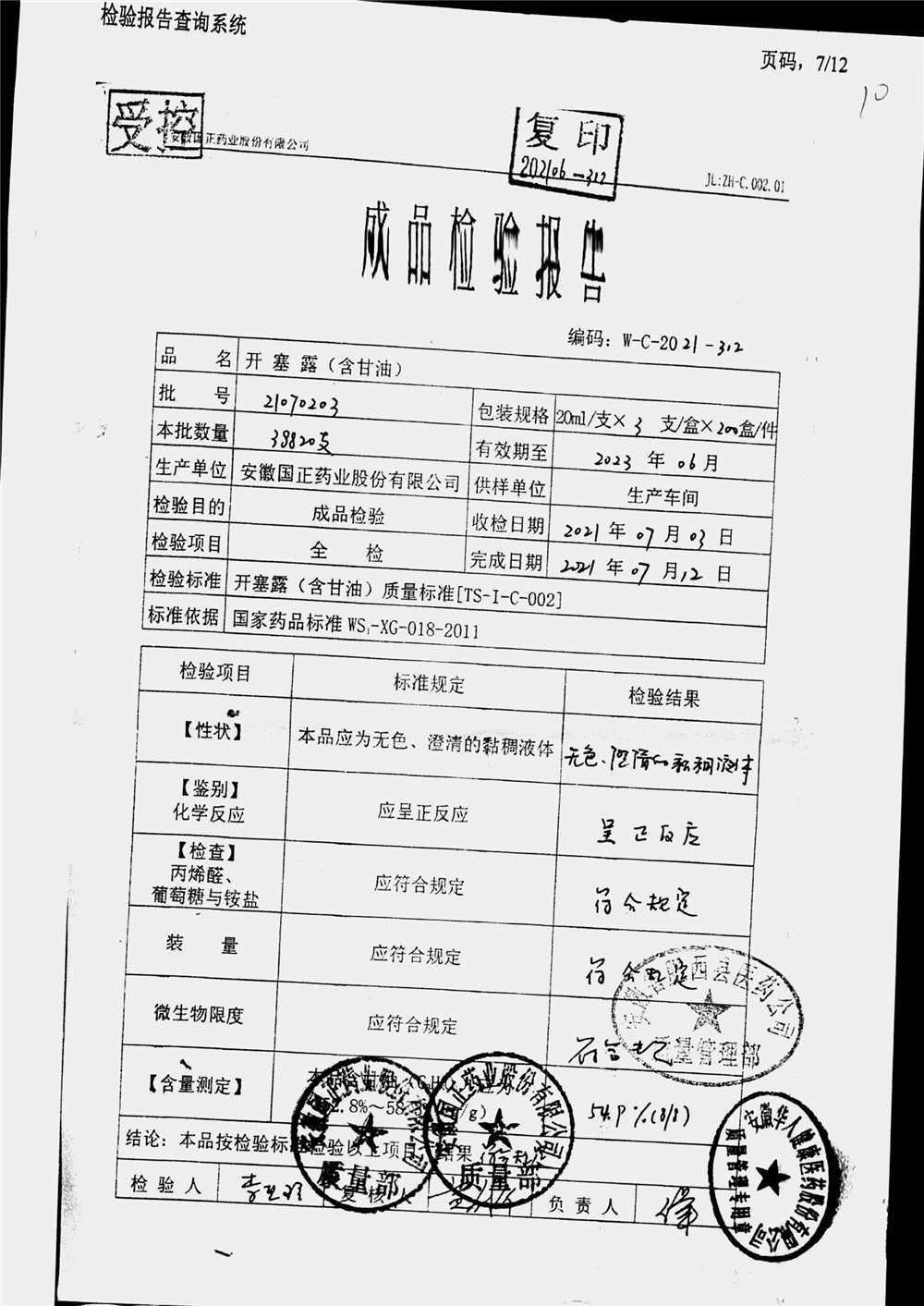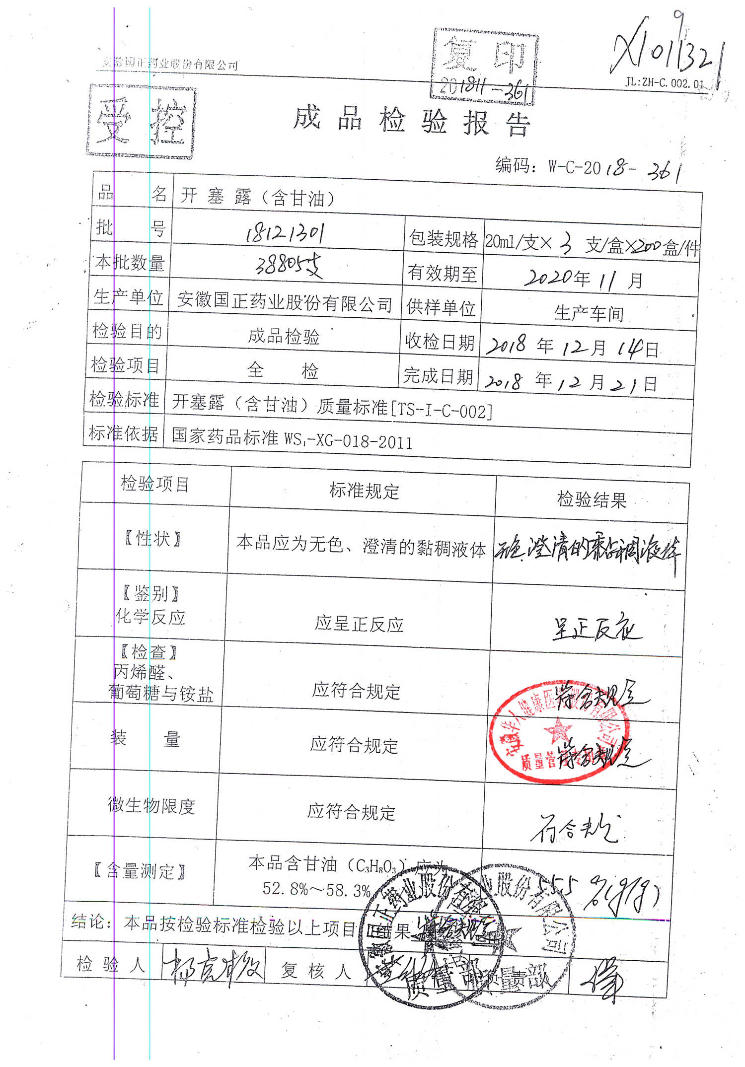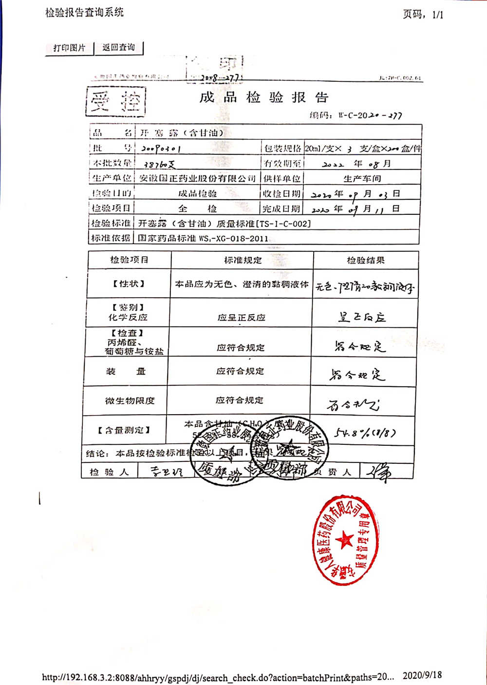 | 名稱 | 規(guī)格 | 批號(hào) | 藥檢報(bào)告 |