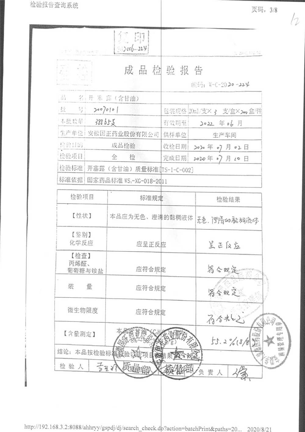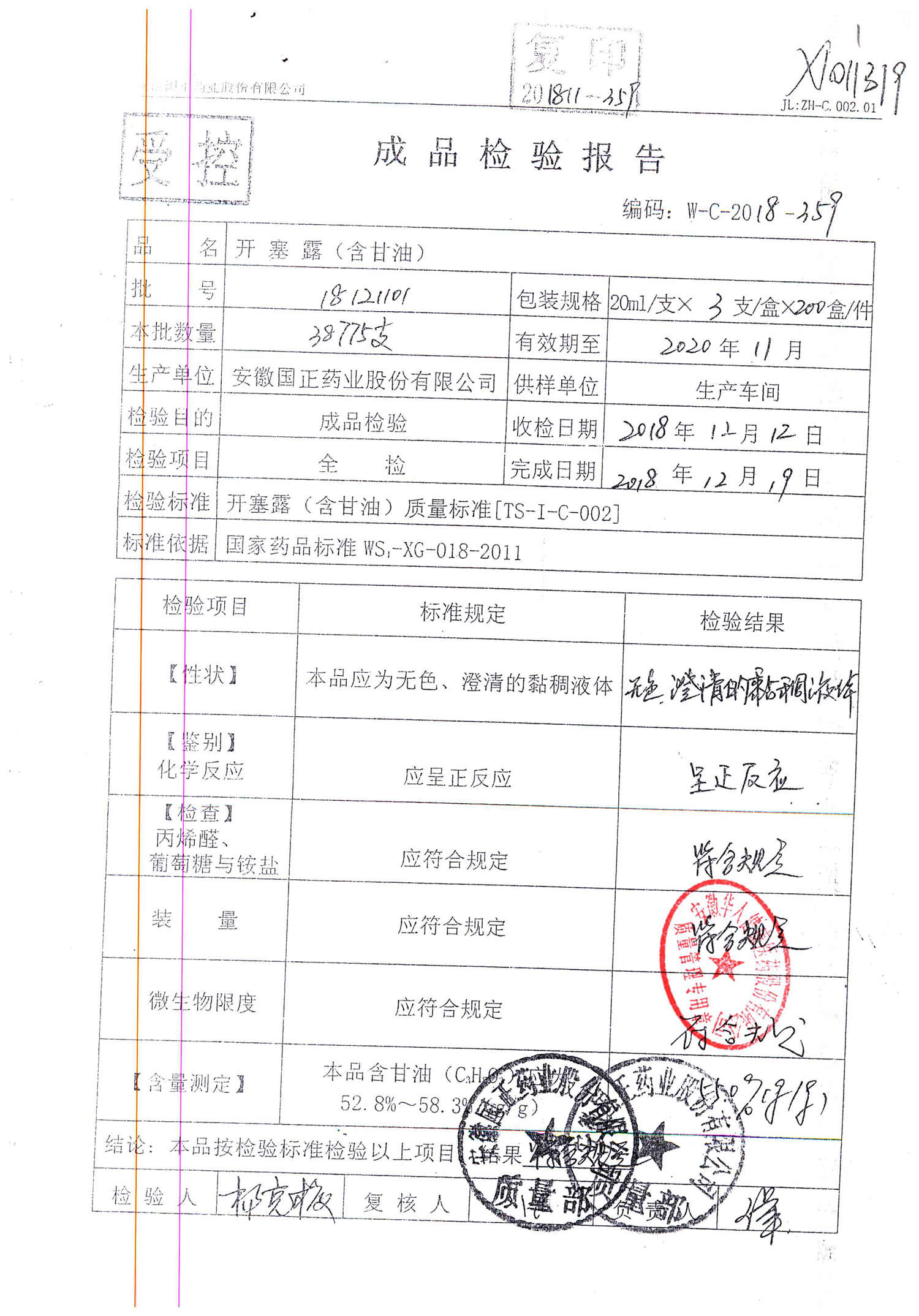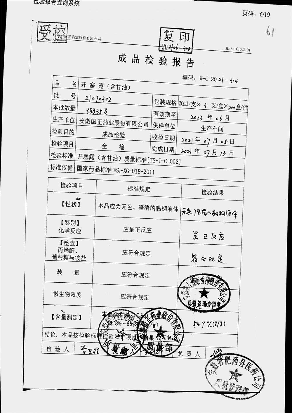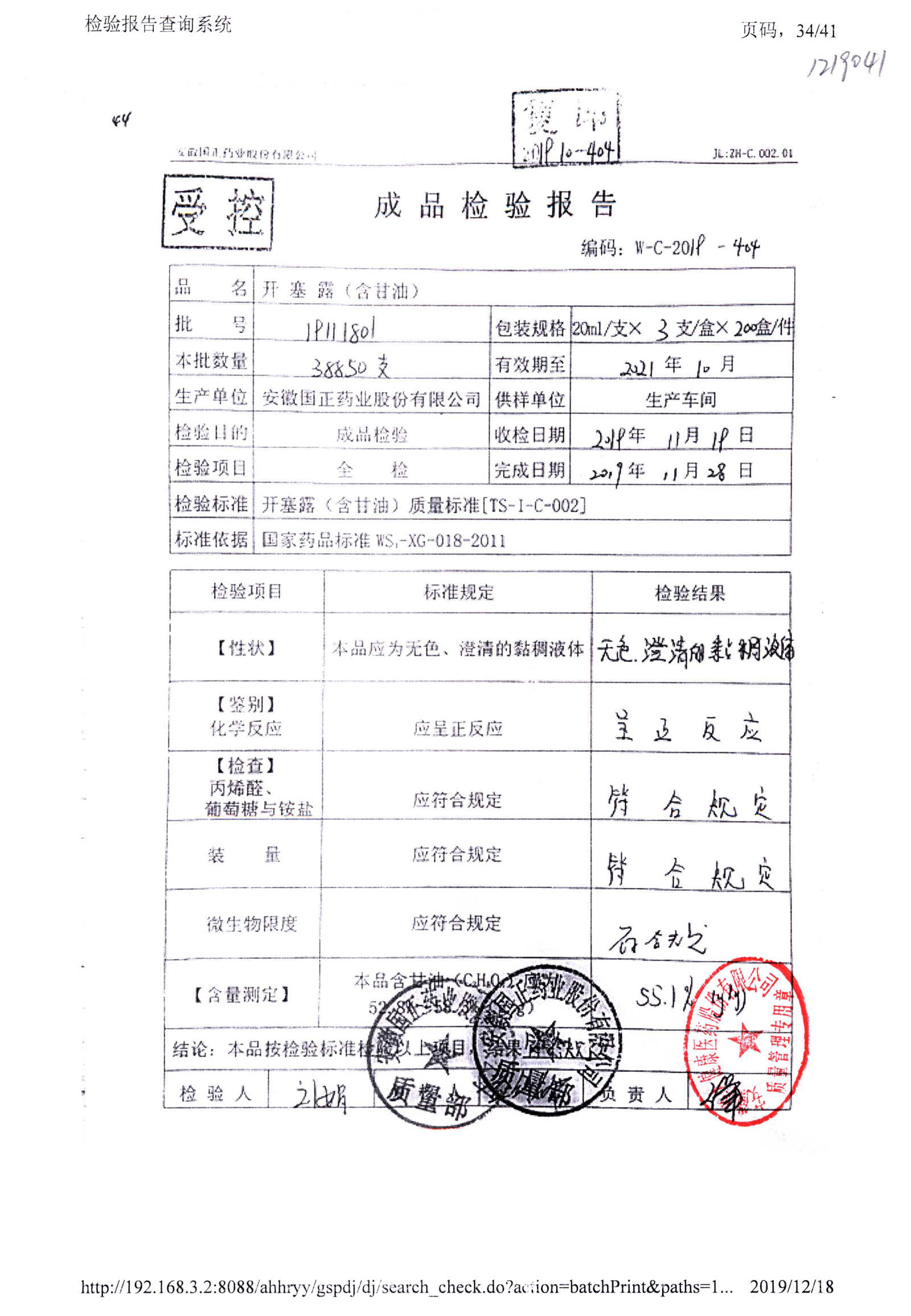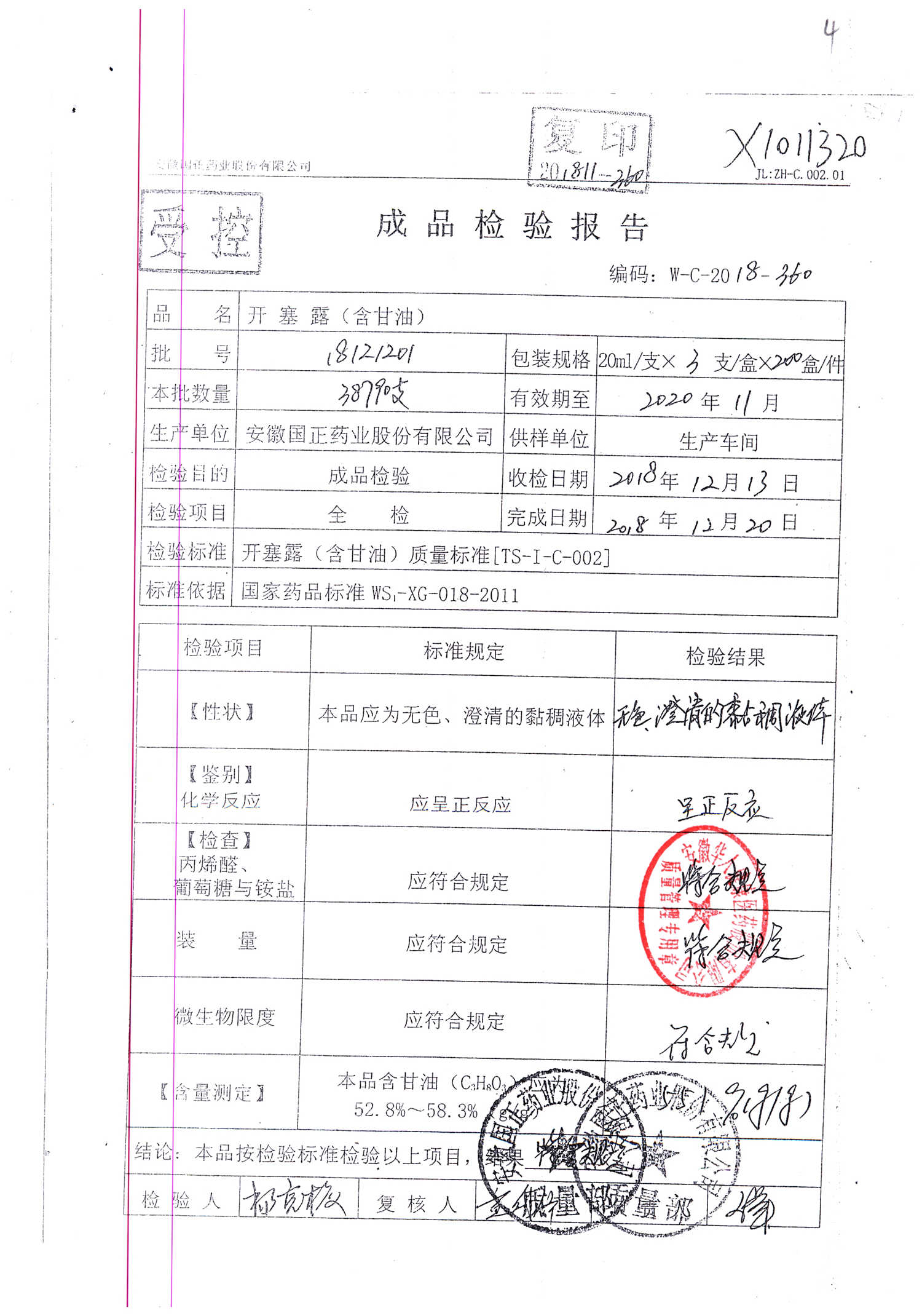 | 名稱 | 規(guī)格 | 批號(hào) | 藥檢報(bào)告 |
