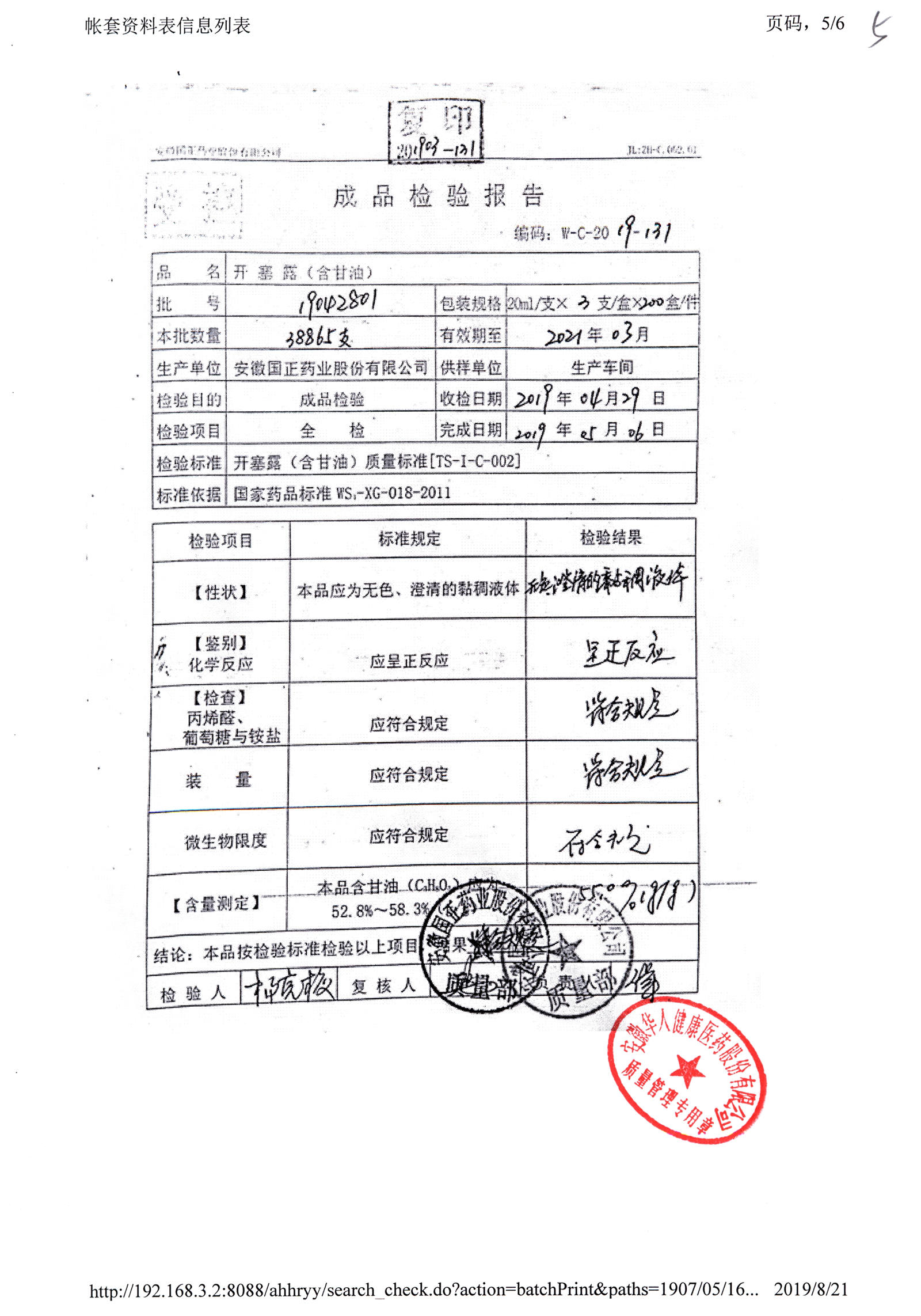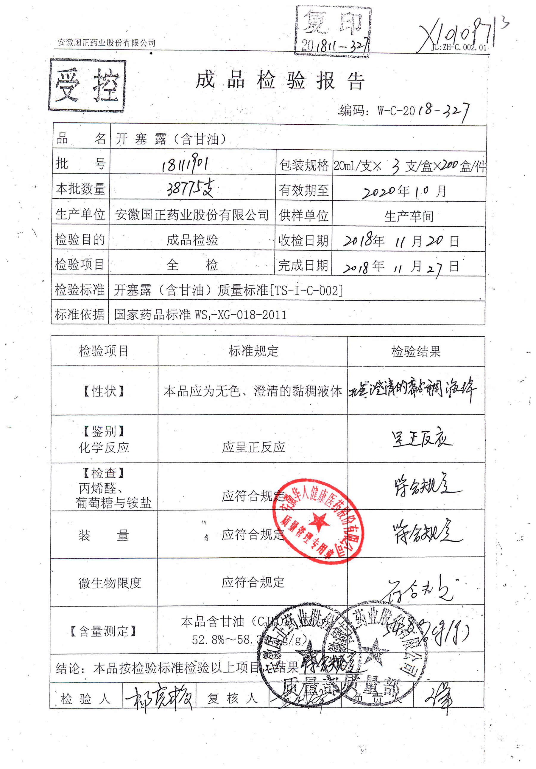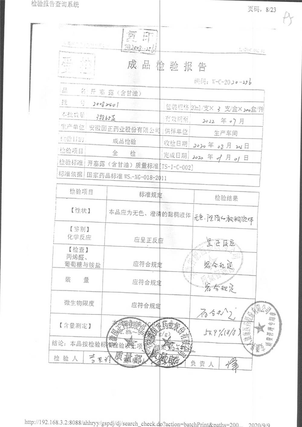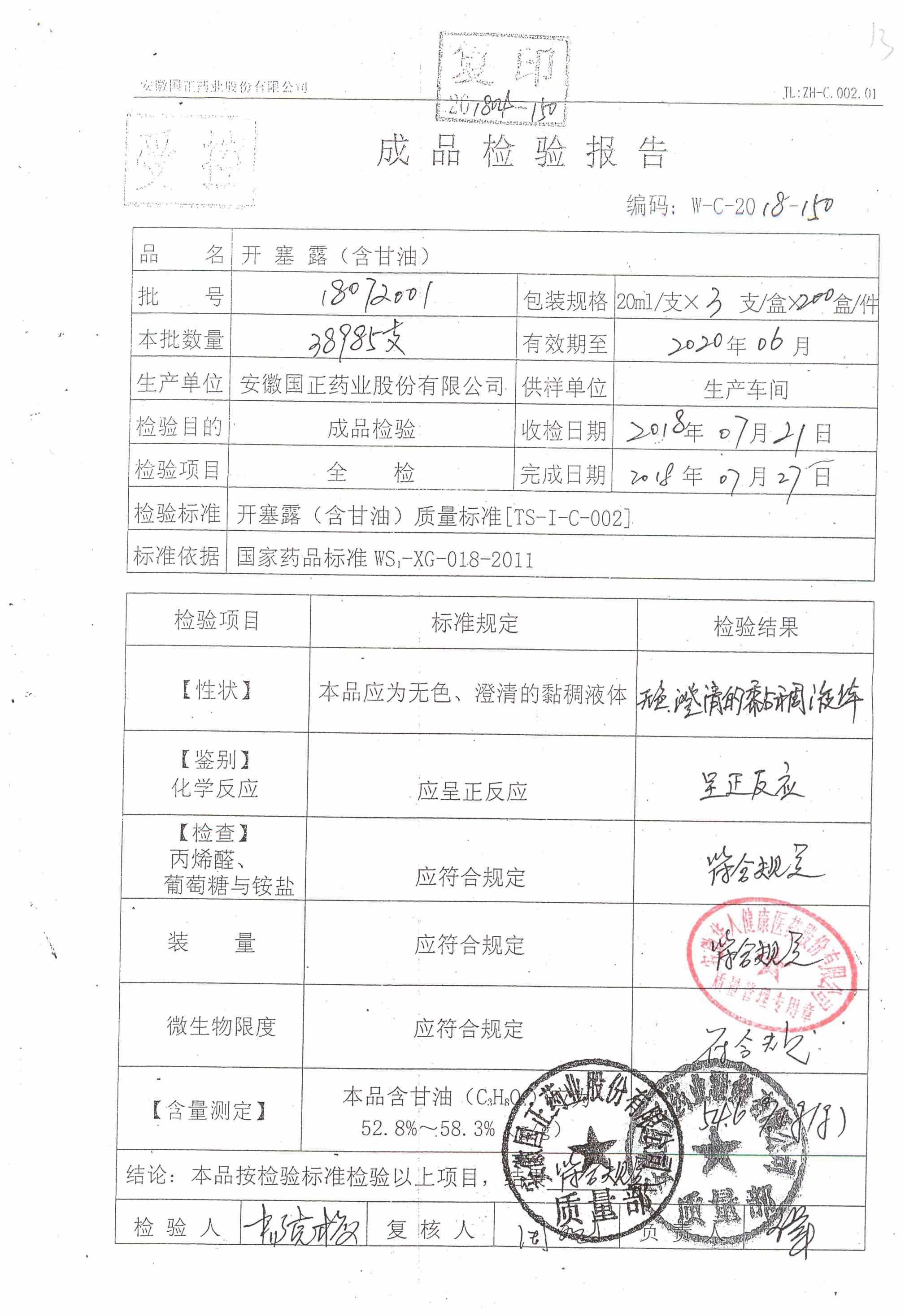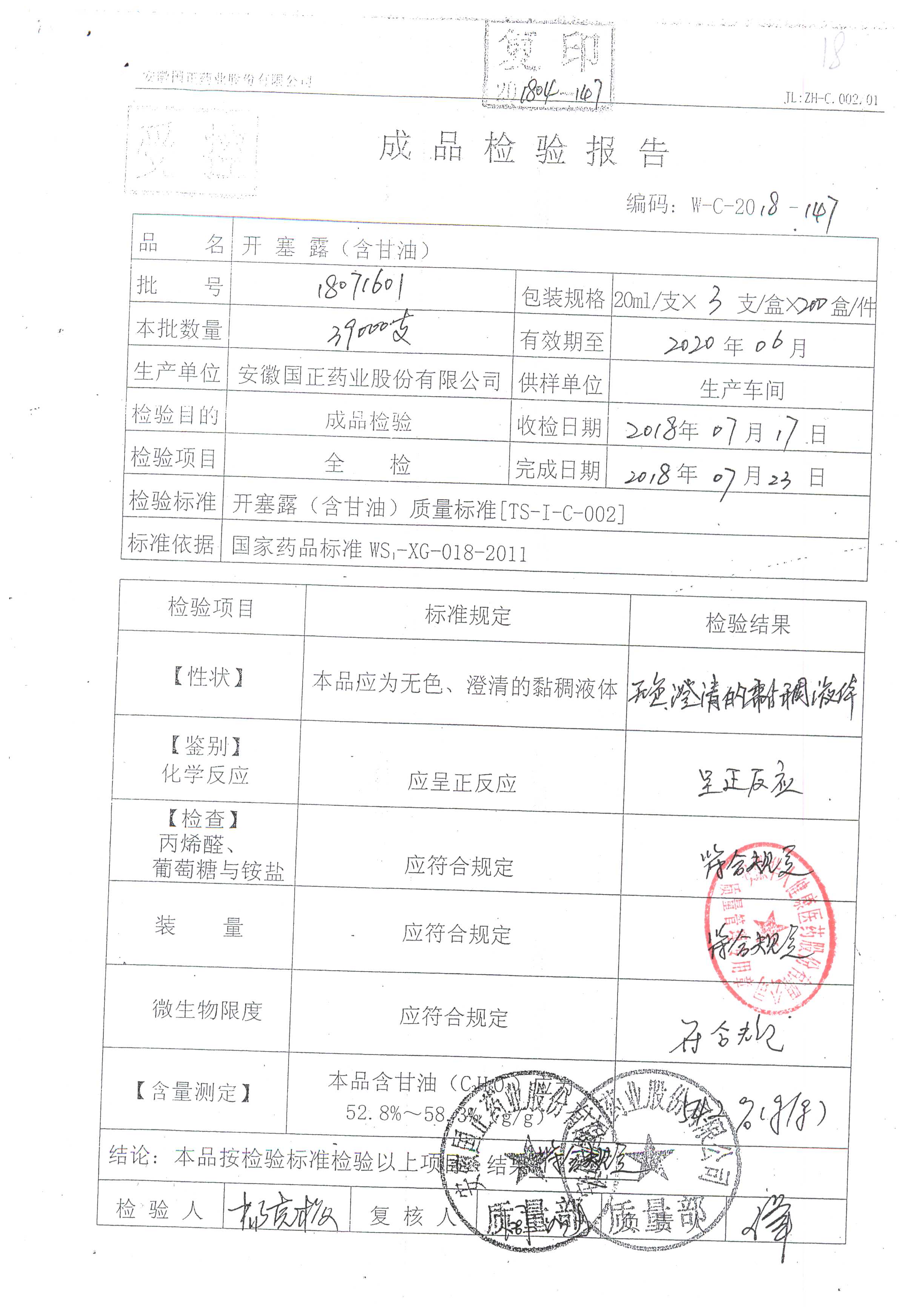 | 名稱 | 規(guī)格 | 批號(hào) | 藥檢報(bào)告 |