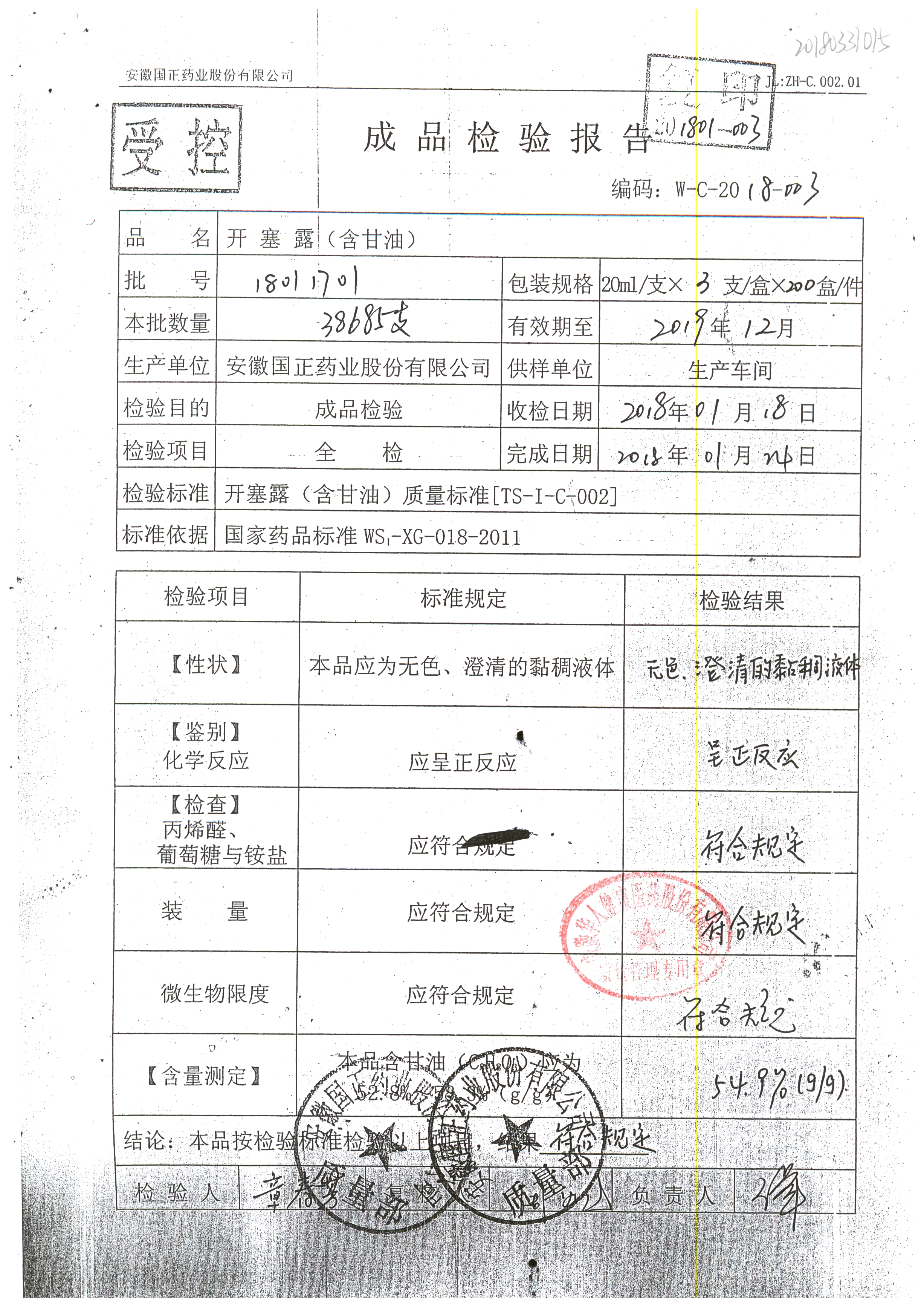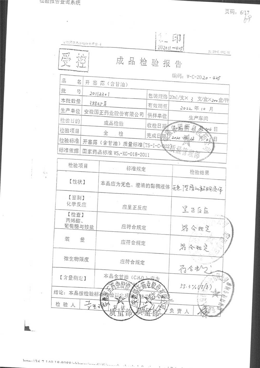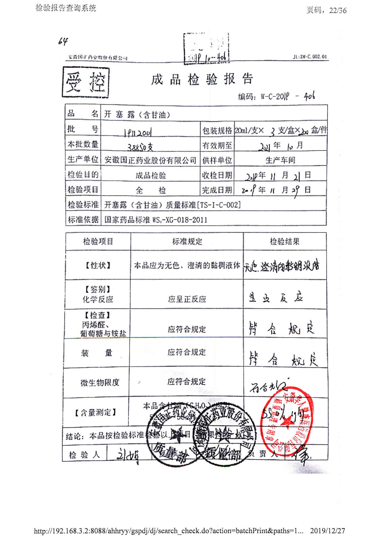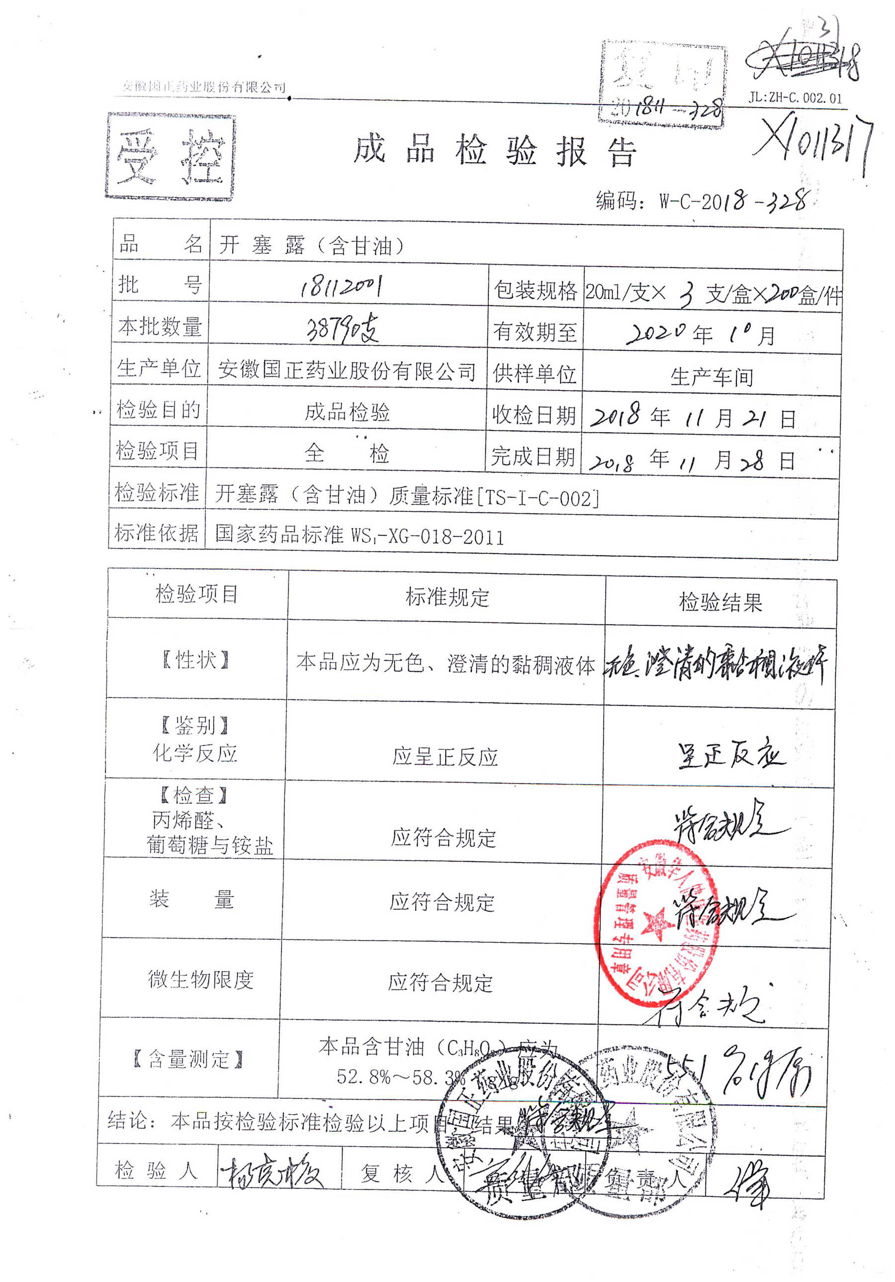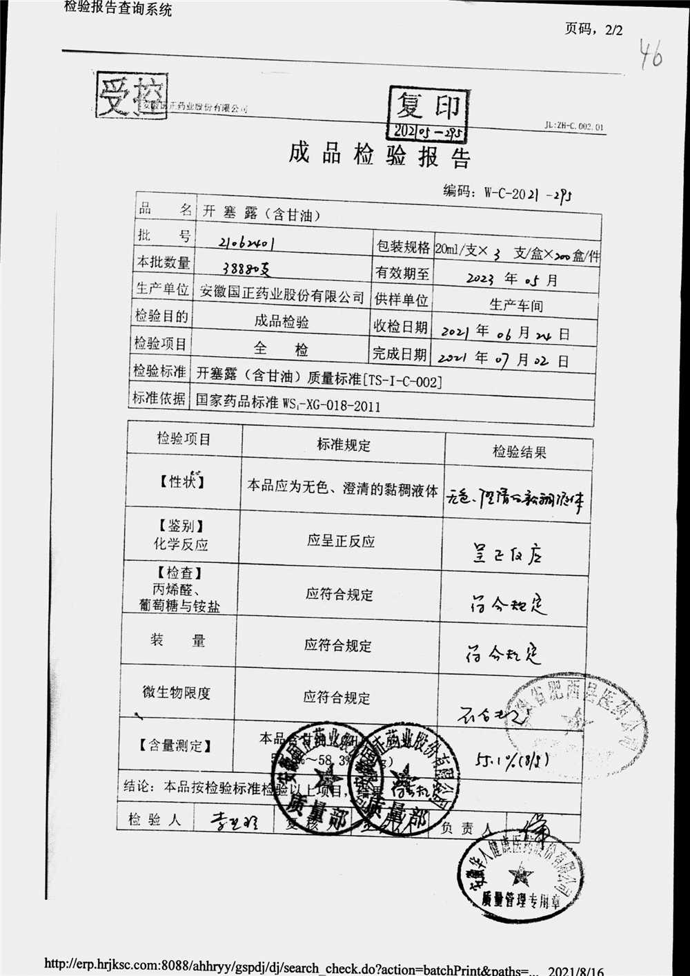 | 名稱 | 規(guī)格 | 批號(hào) | 藥檢報(bào)告 |