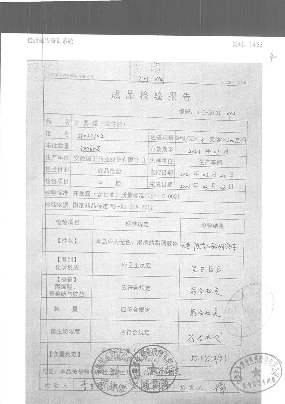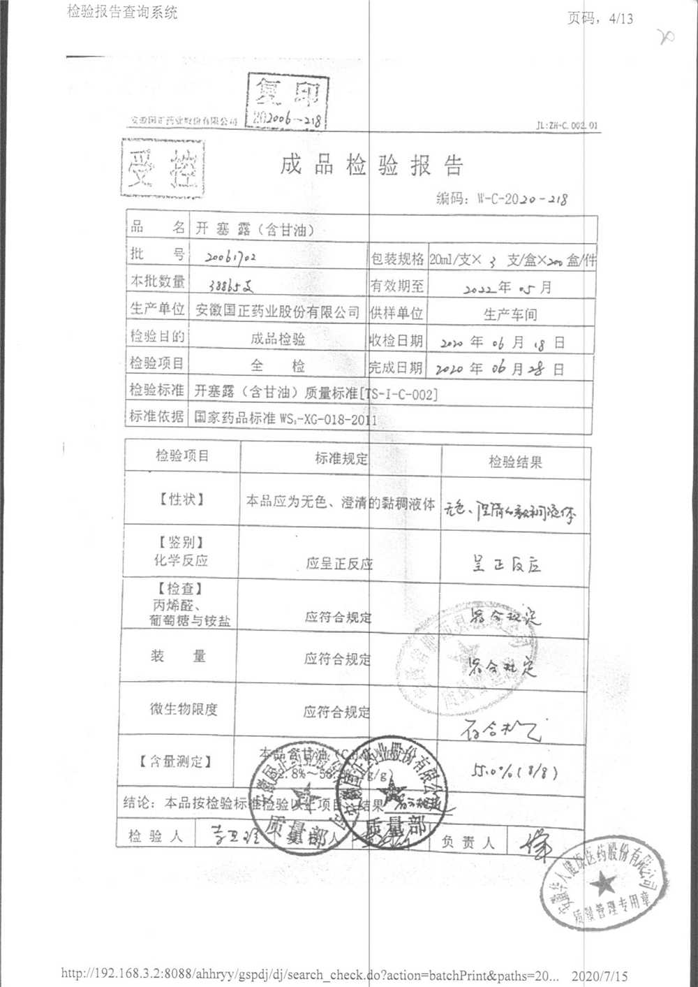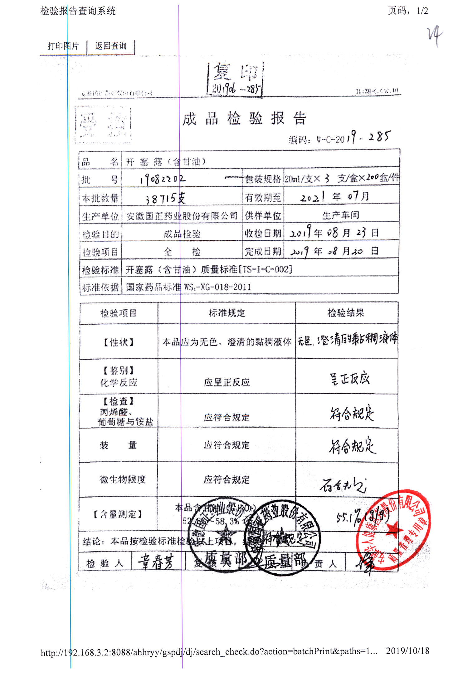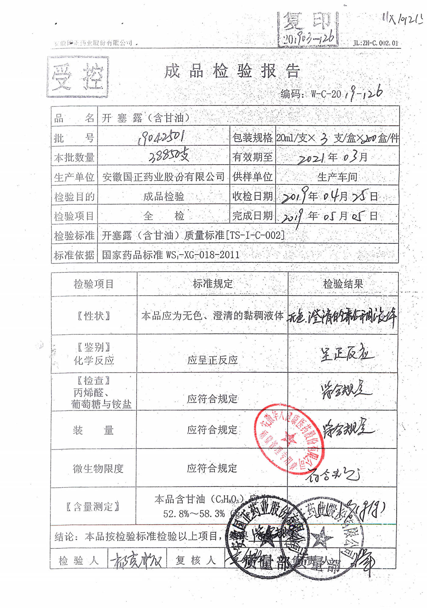 | 名稱 | 規(guī)格 | 批號(hào) | 藥檢報(bào)告 |