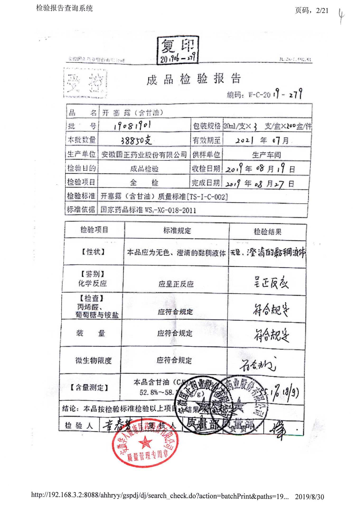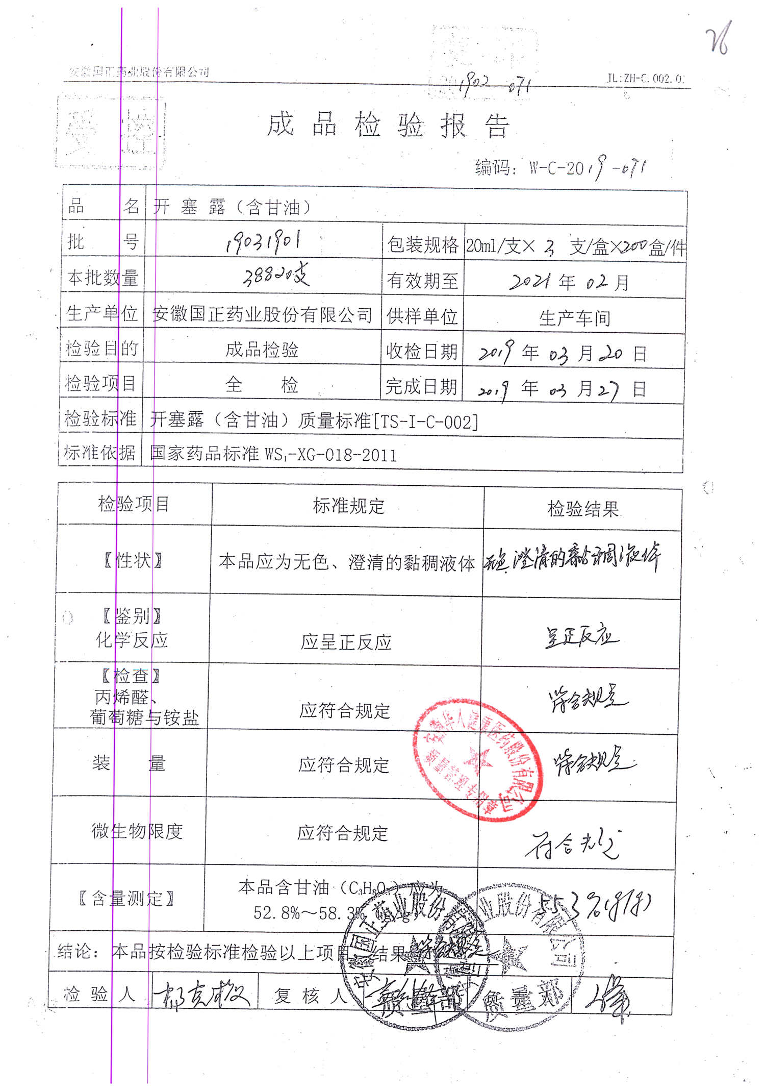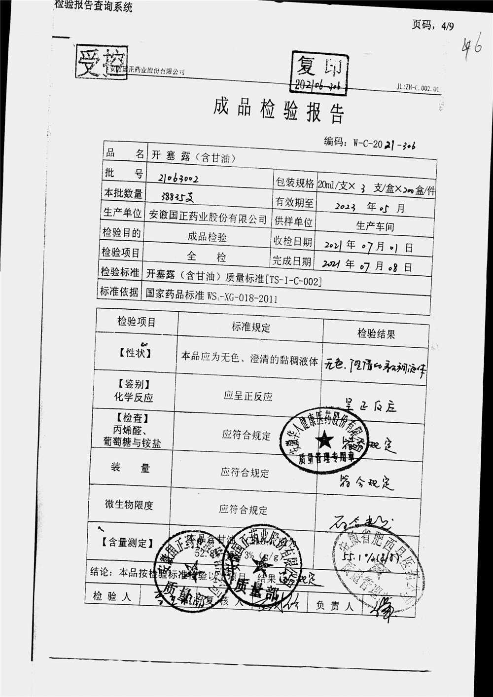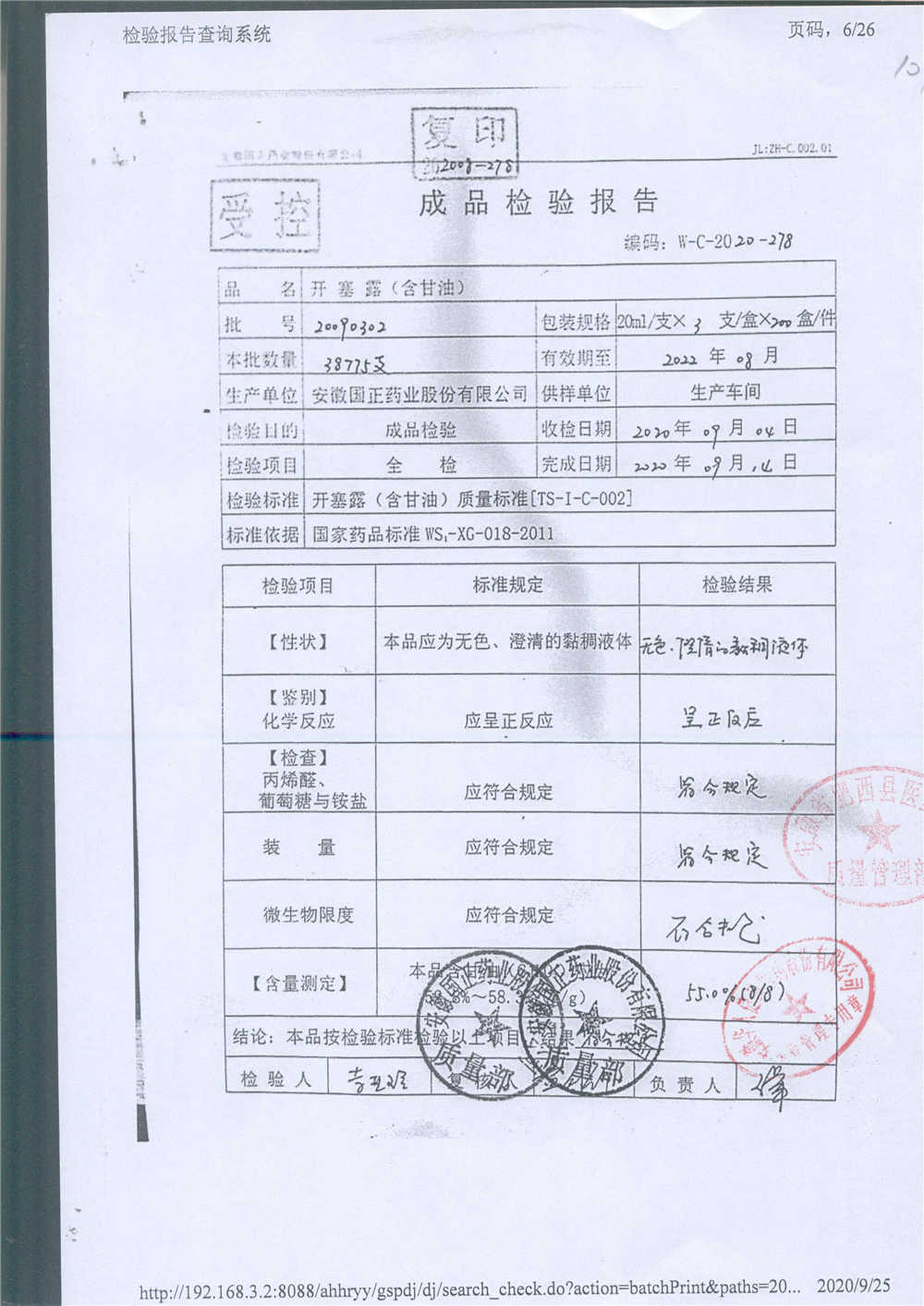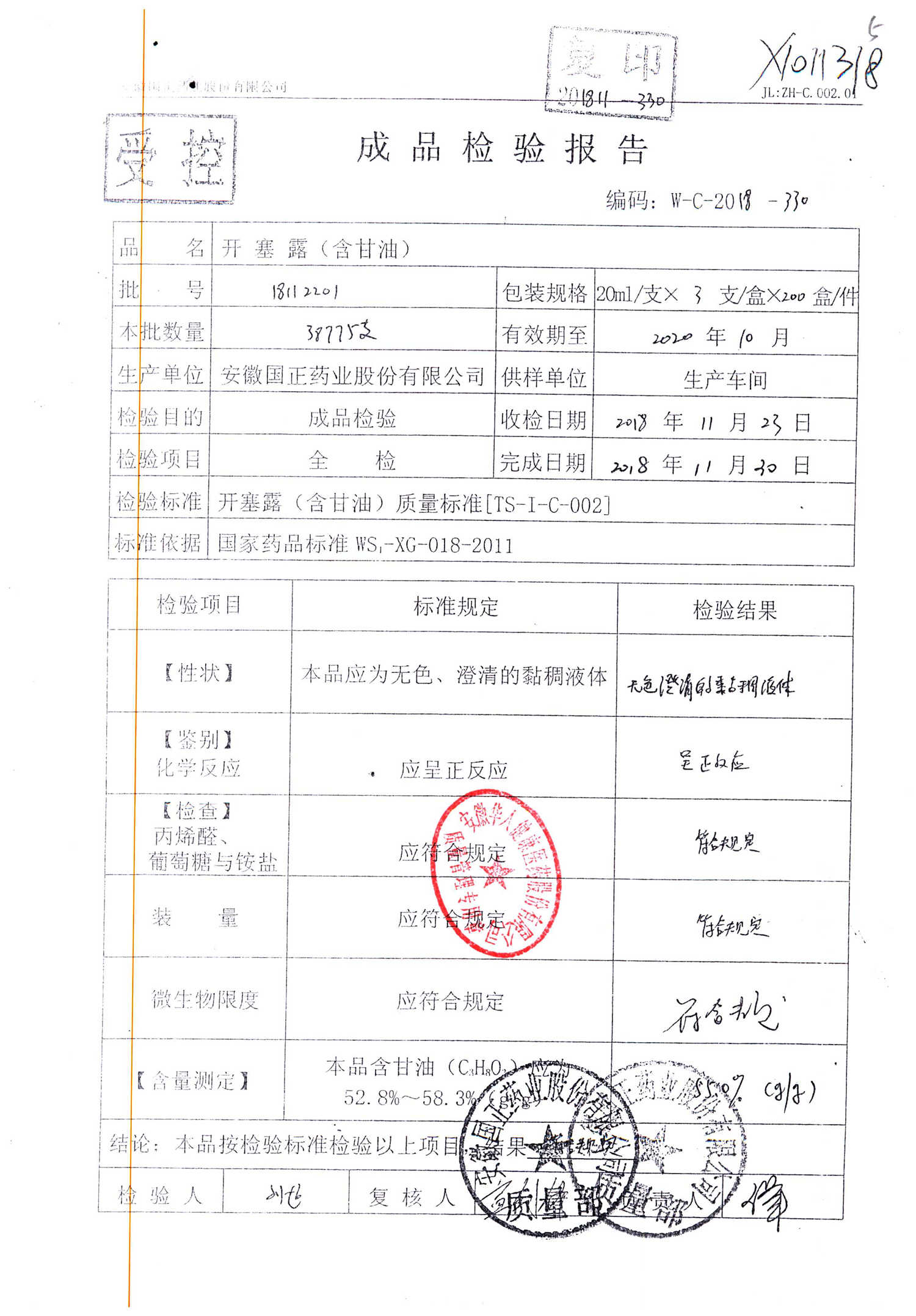 | 名稱 | 規(guī)格 | 批號(hào) | 藥檢報(bào)告 |