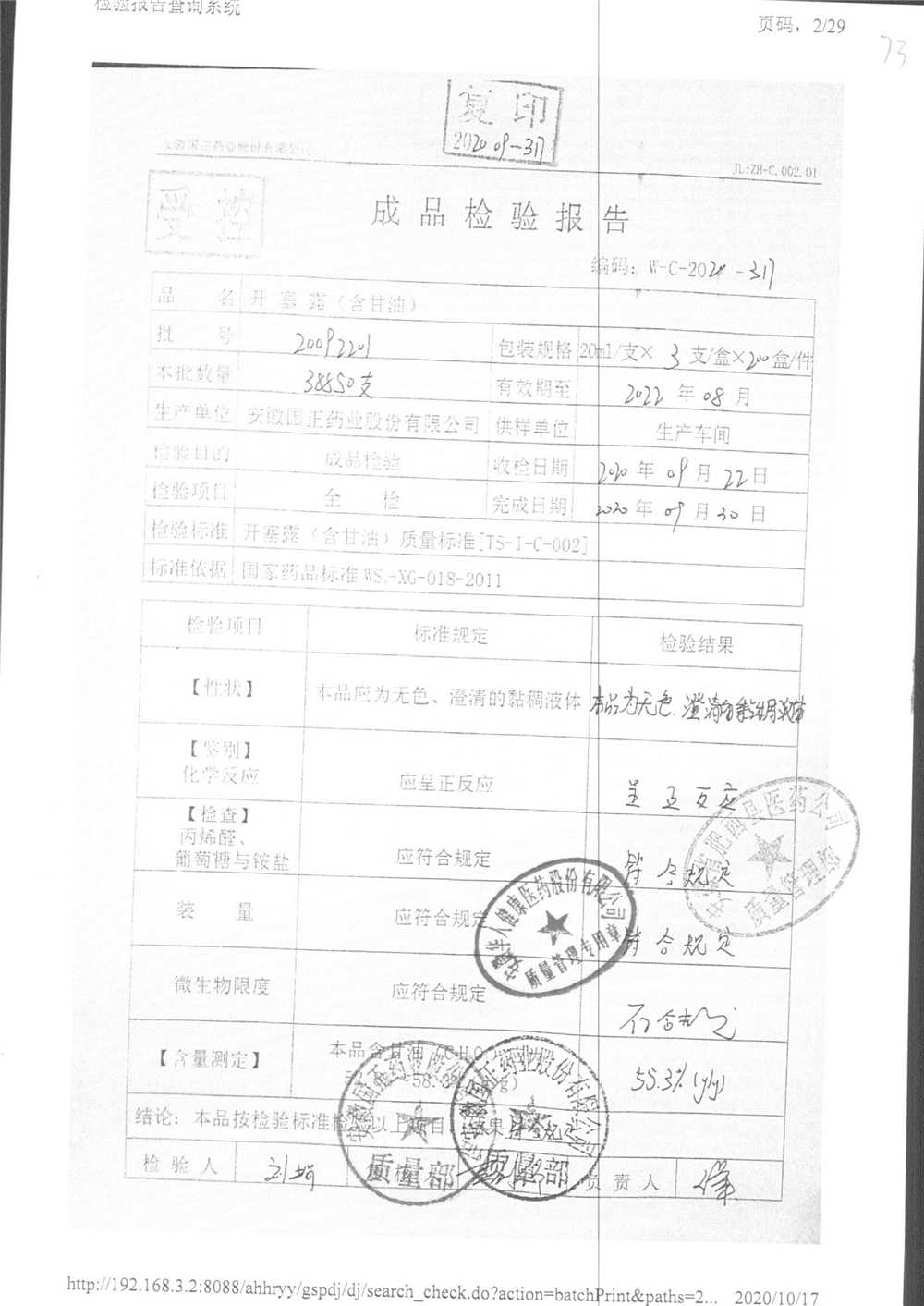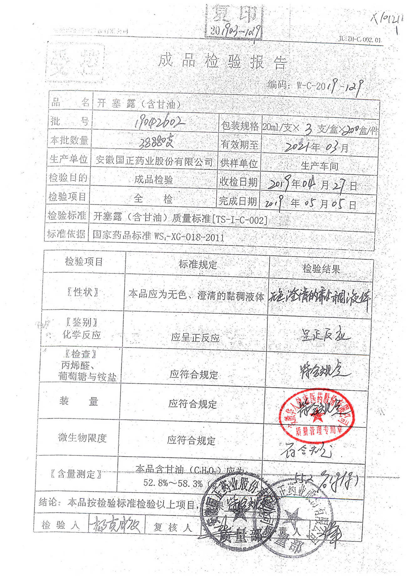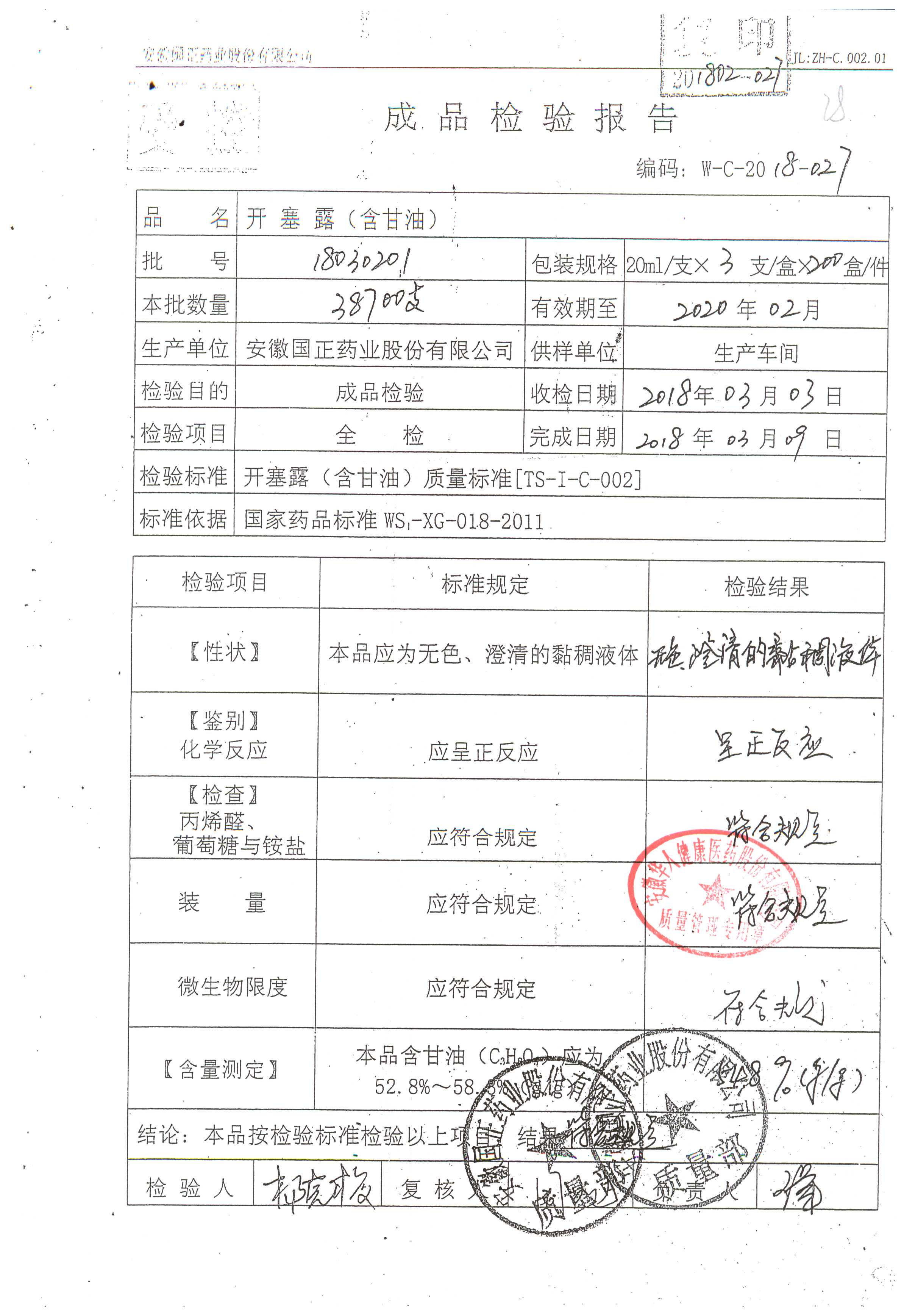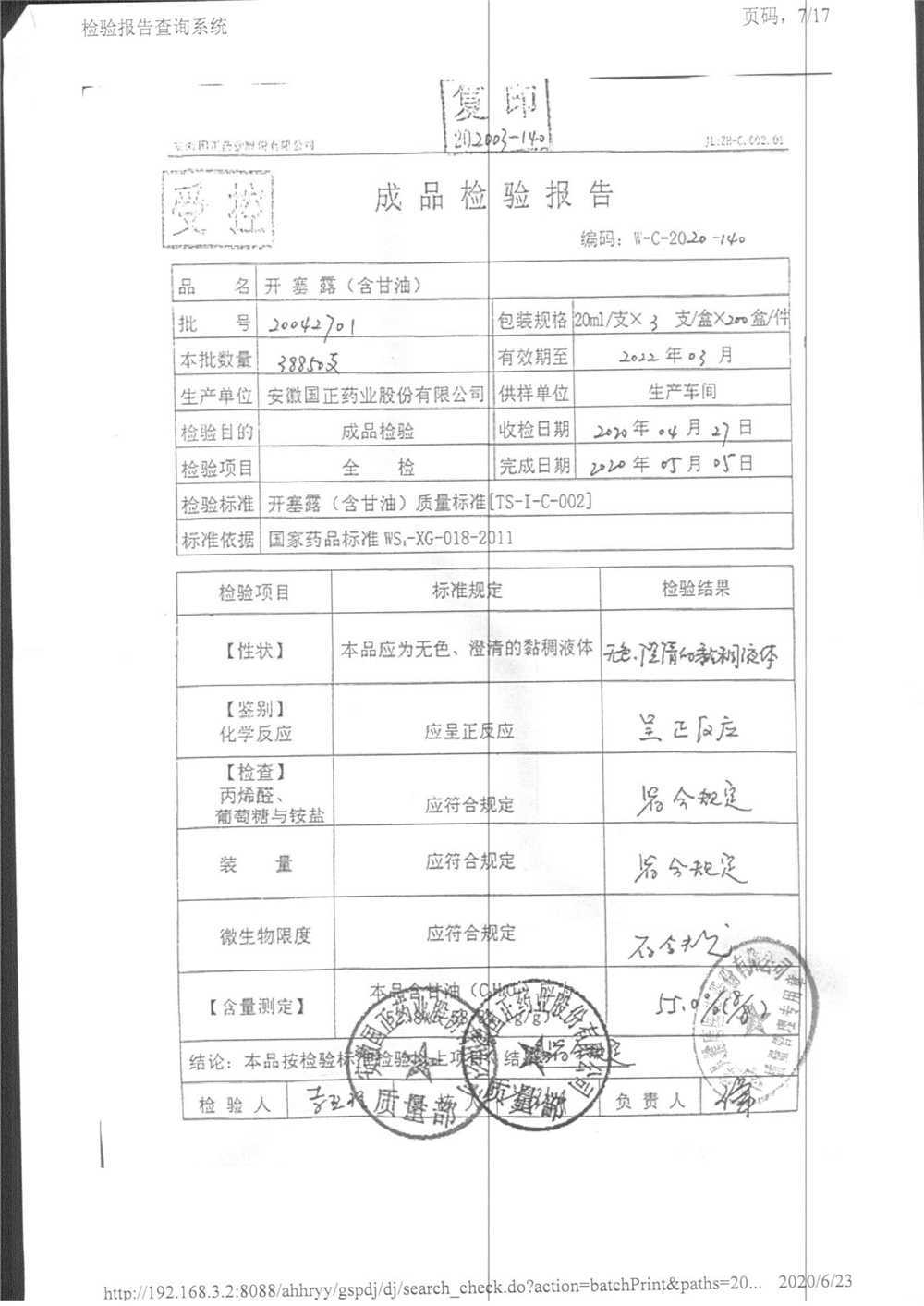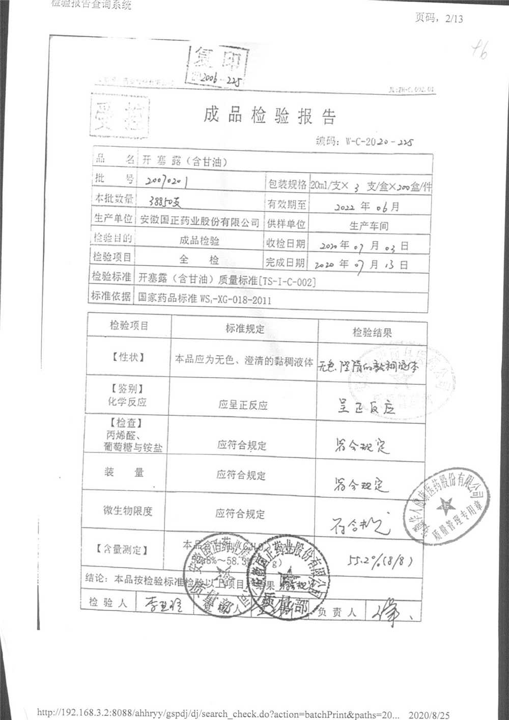 | 名稱 | 規(guī)格 | 批號(hào) | 藥檢報(bào)告 |