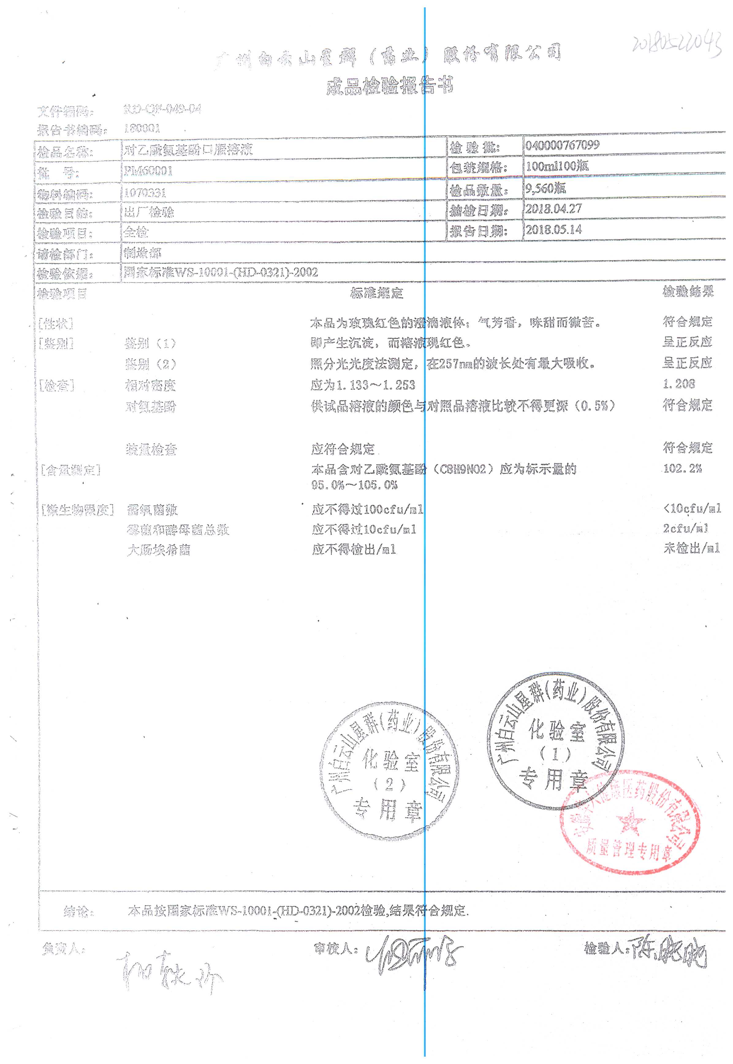 對(duì)乙醯氨基酚口服溶液 100ml OM60003 查看詳情