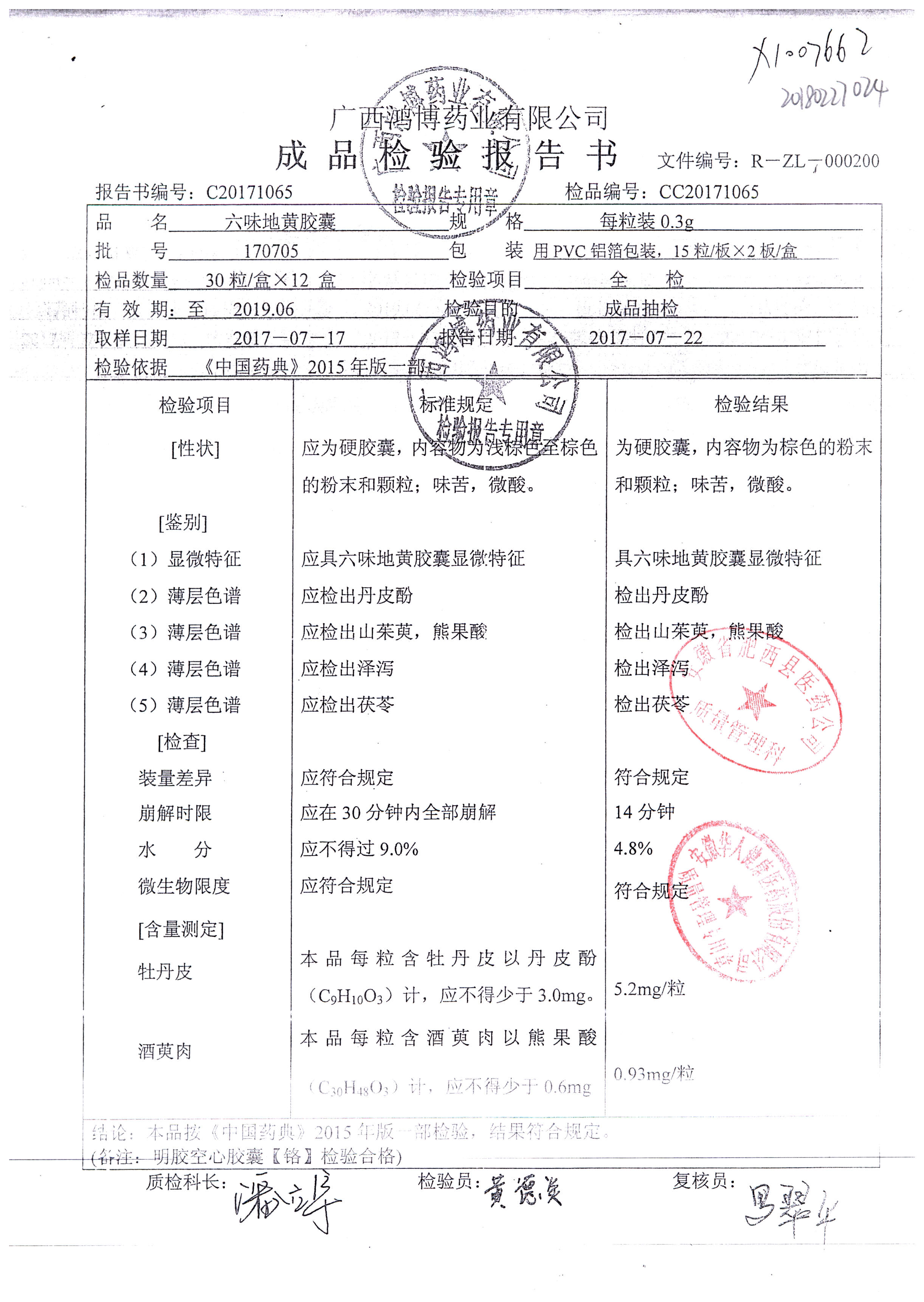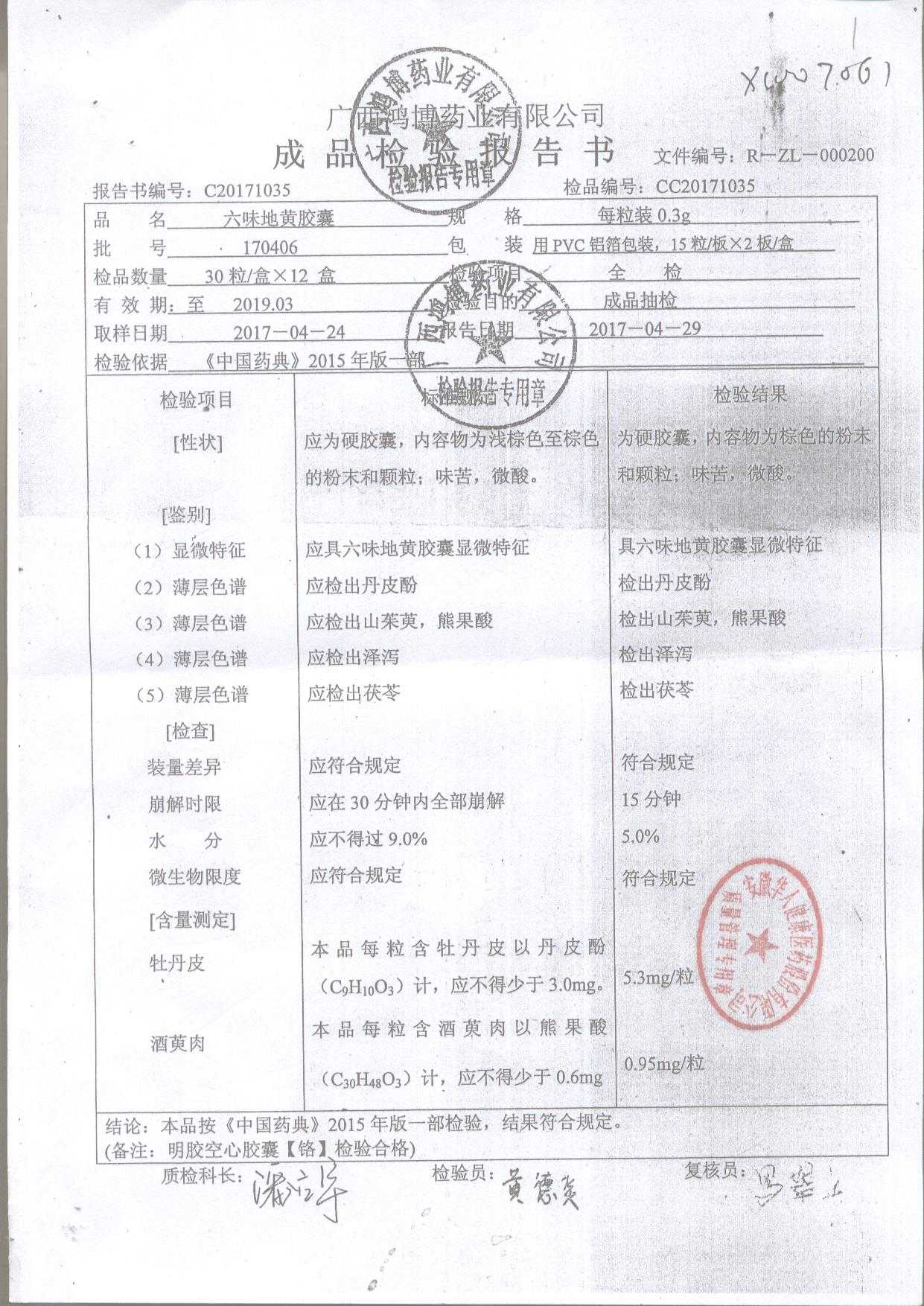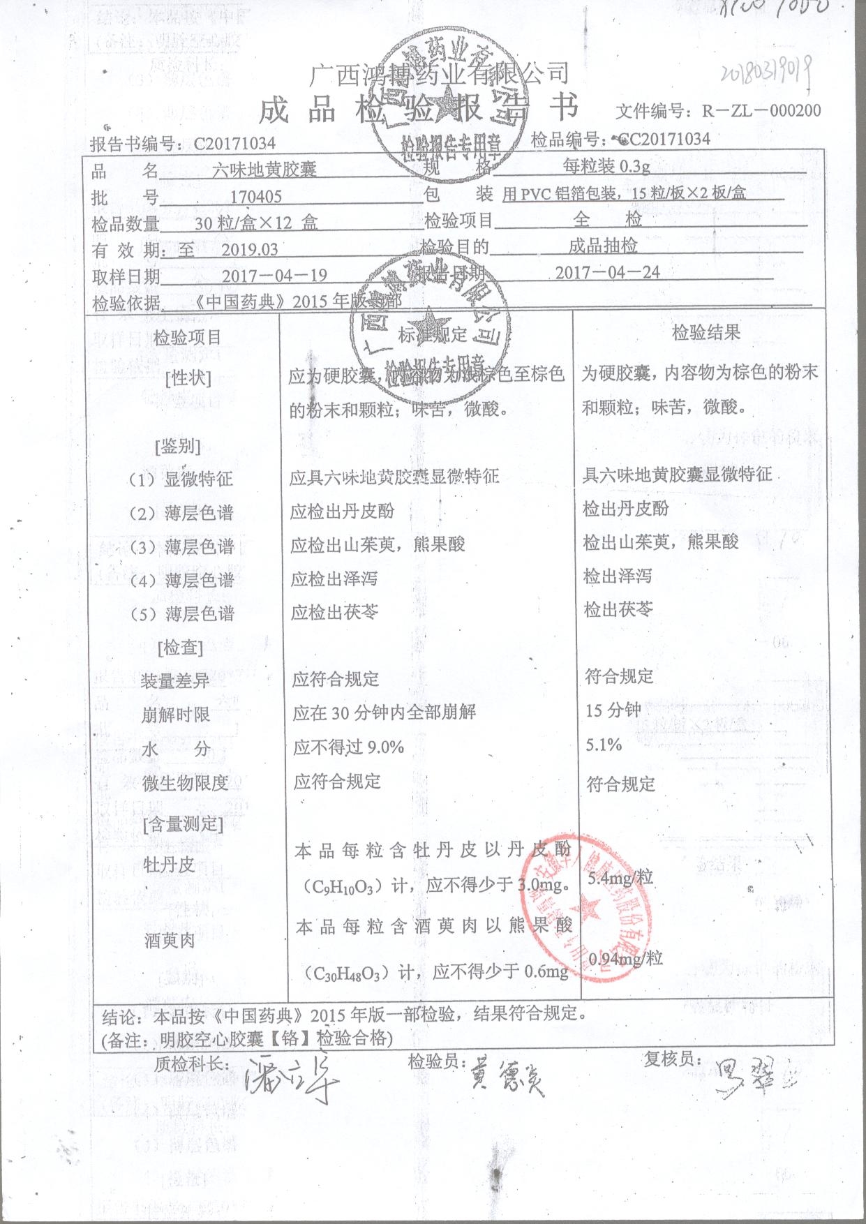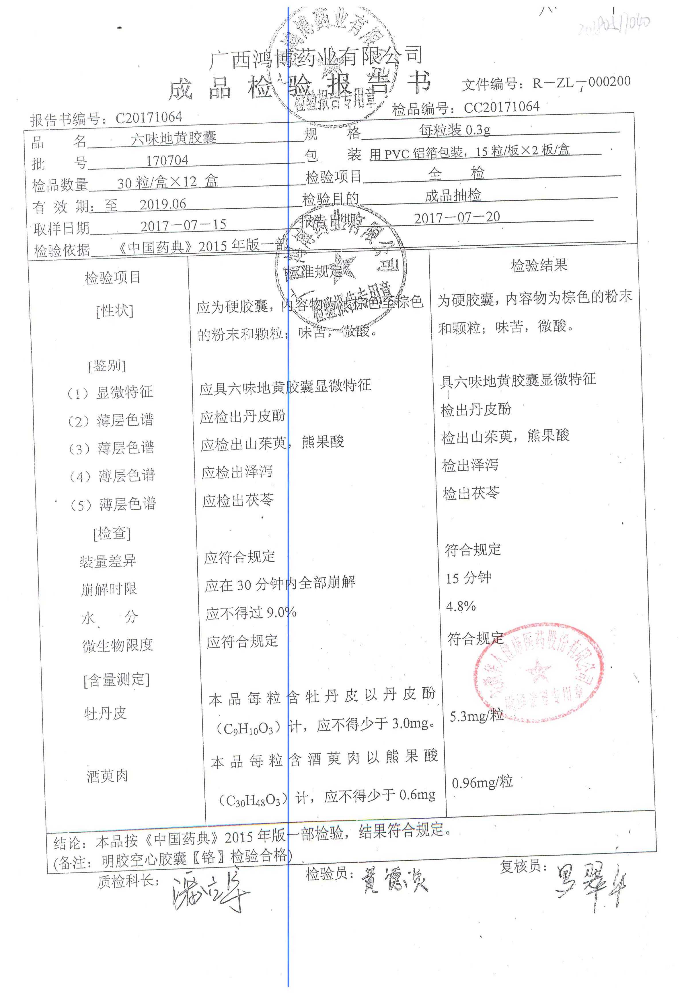 名稱 規(guī)格 批號 藥檢報告